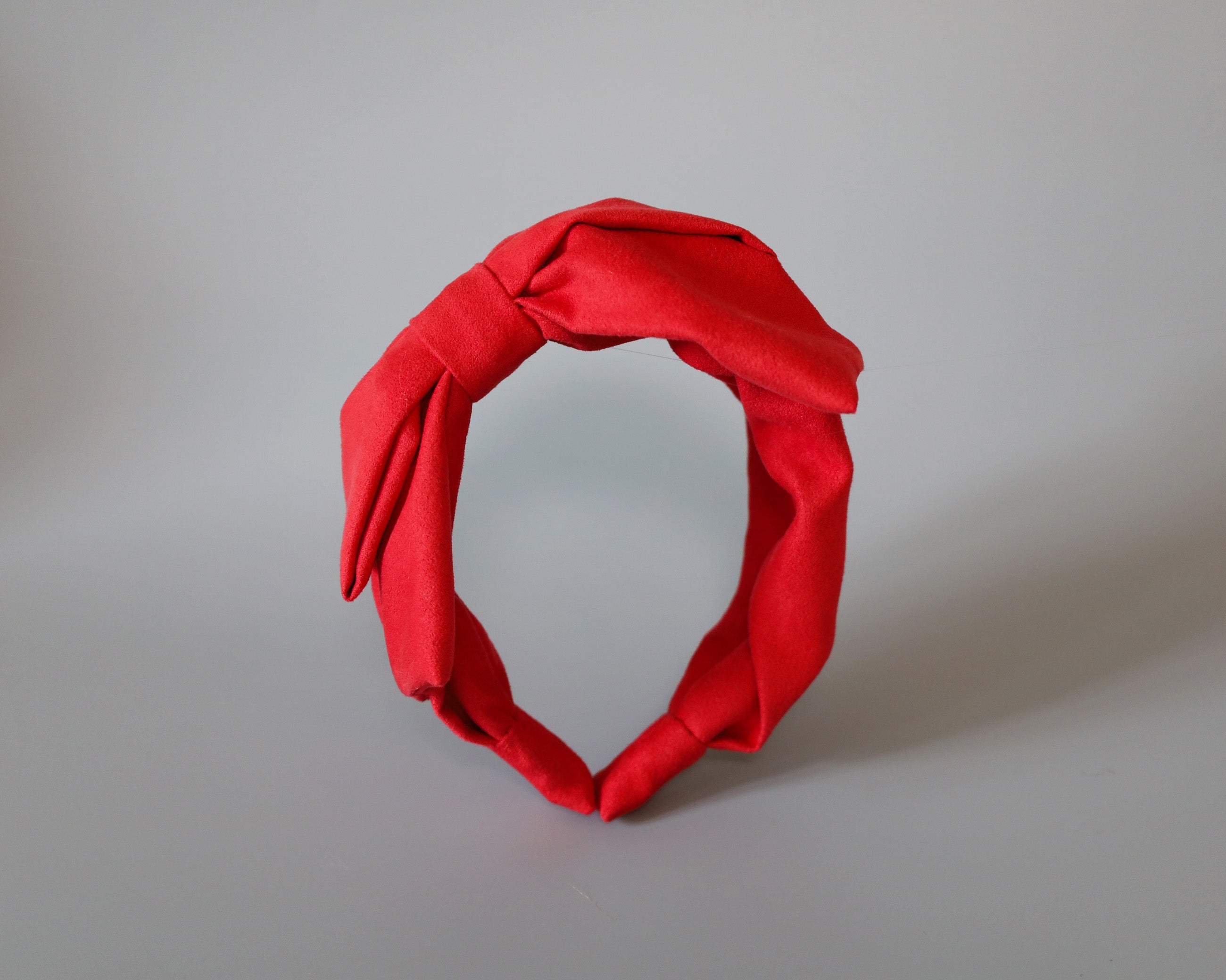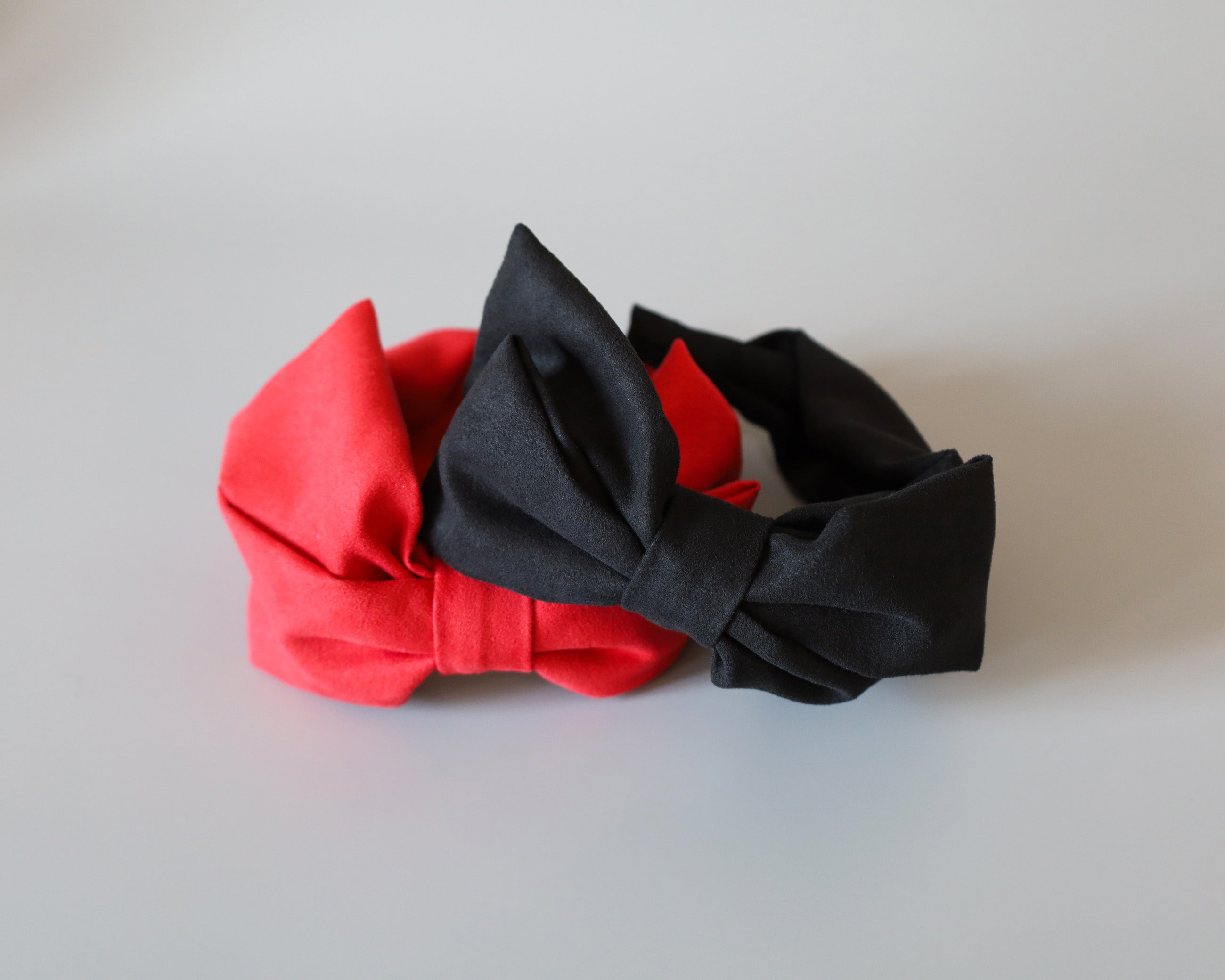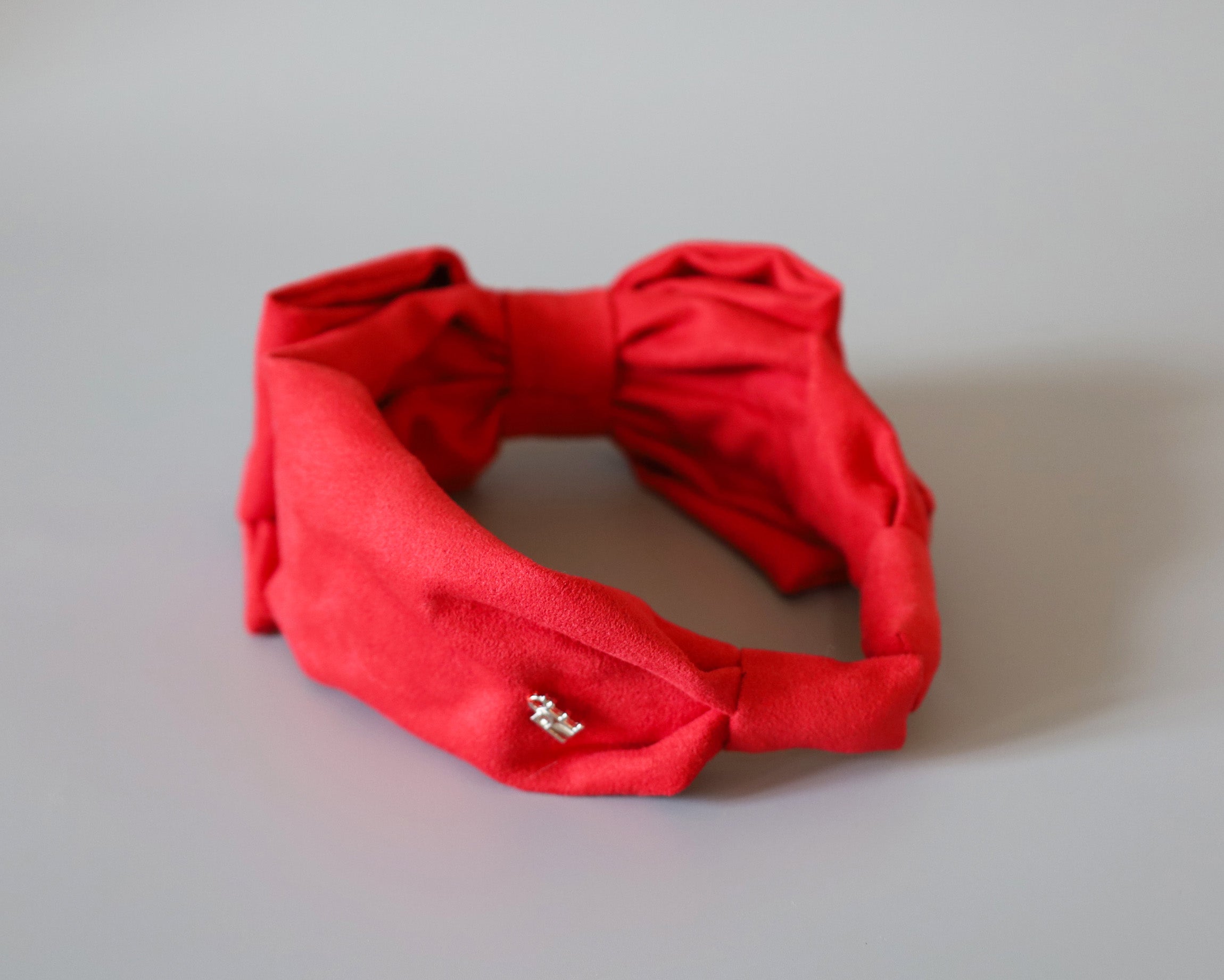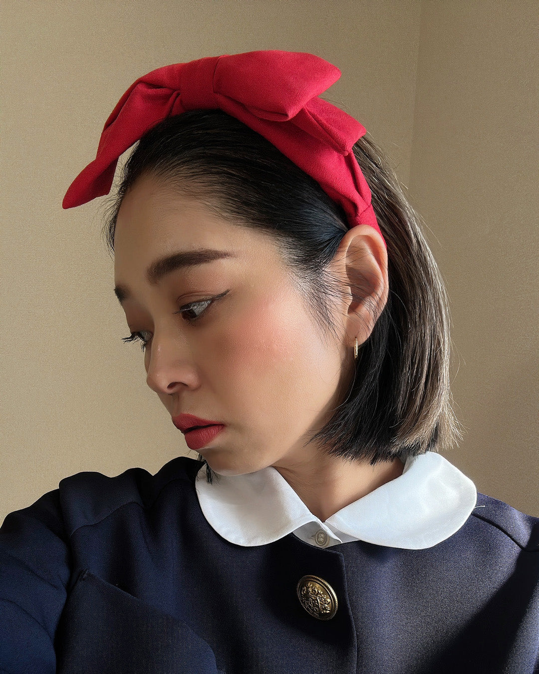 思わず目を引く真っ赤なリボンはコーデのアクセントにぴったり。