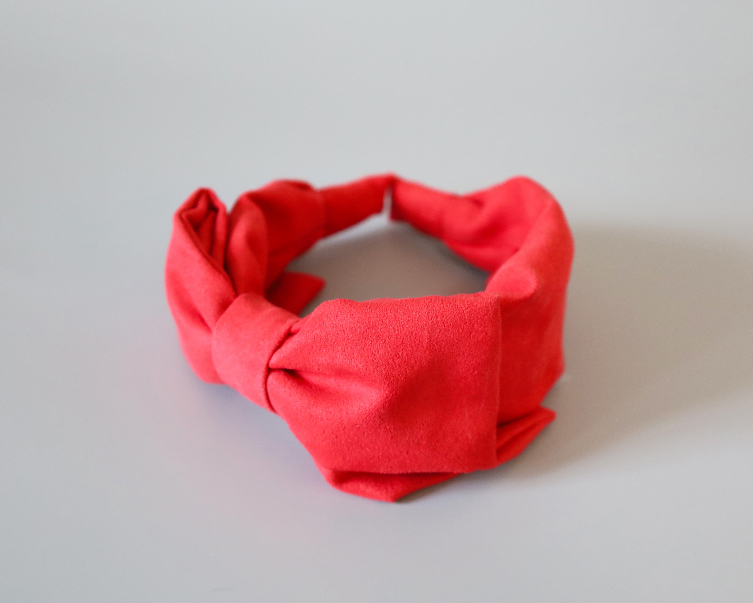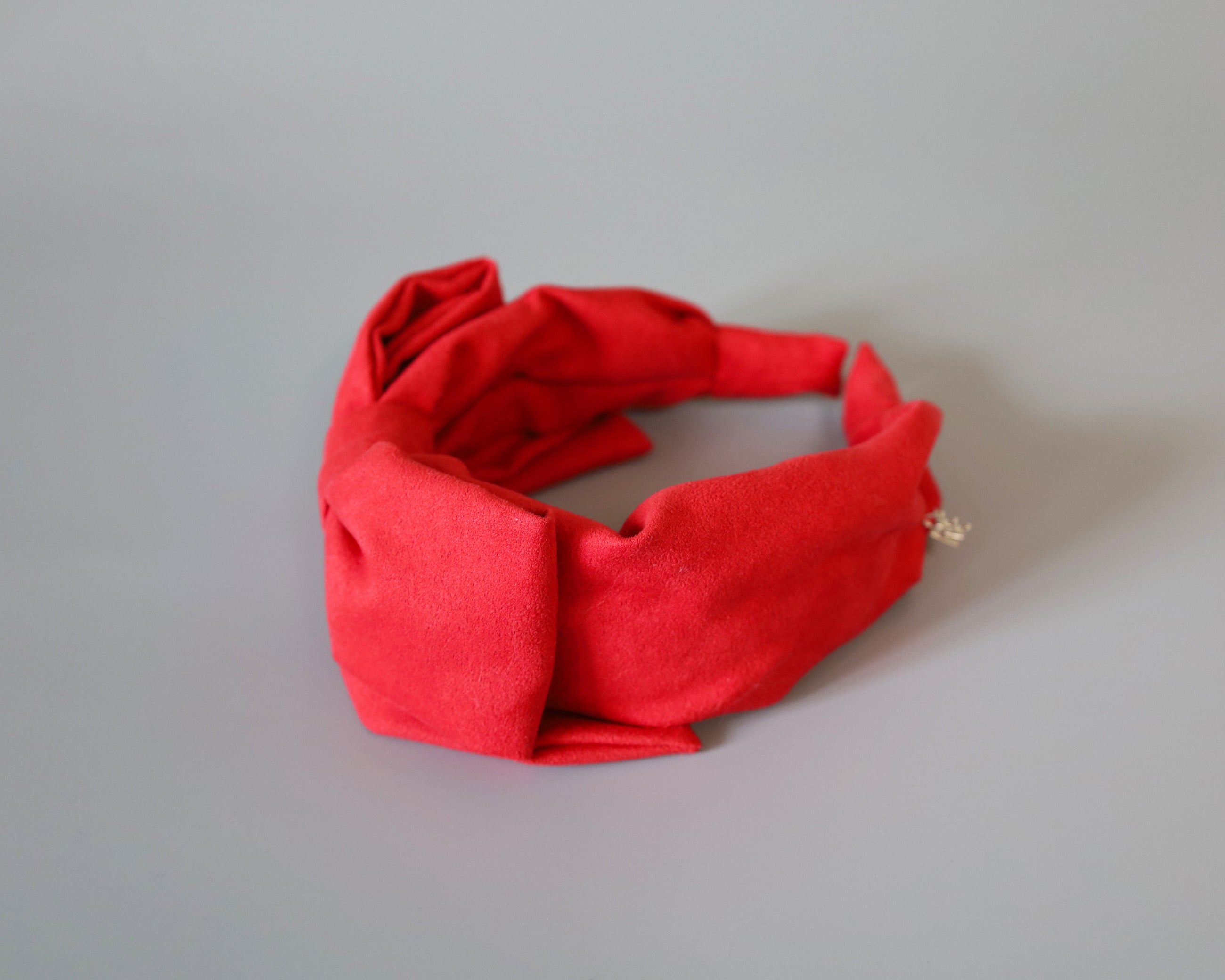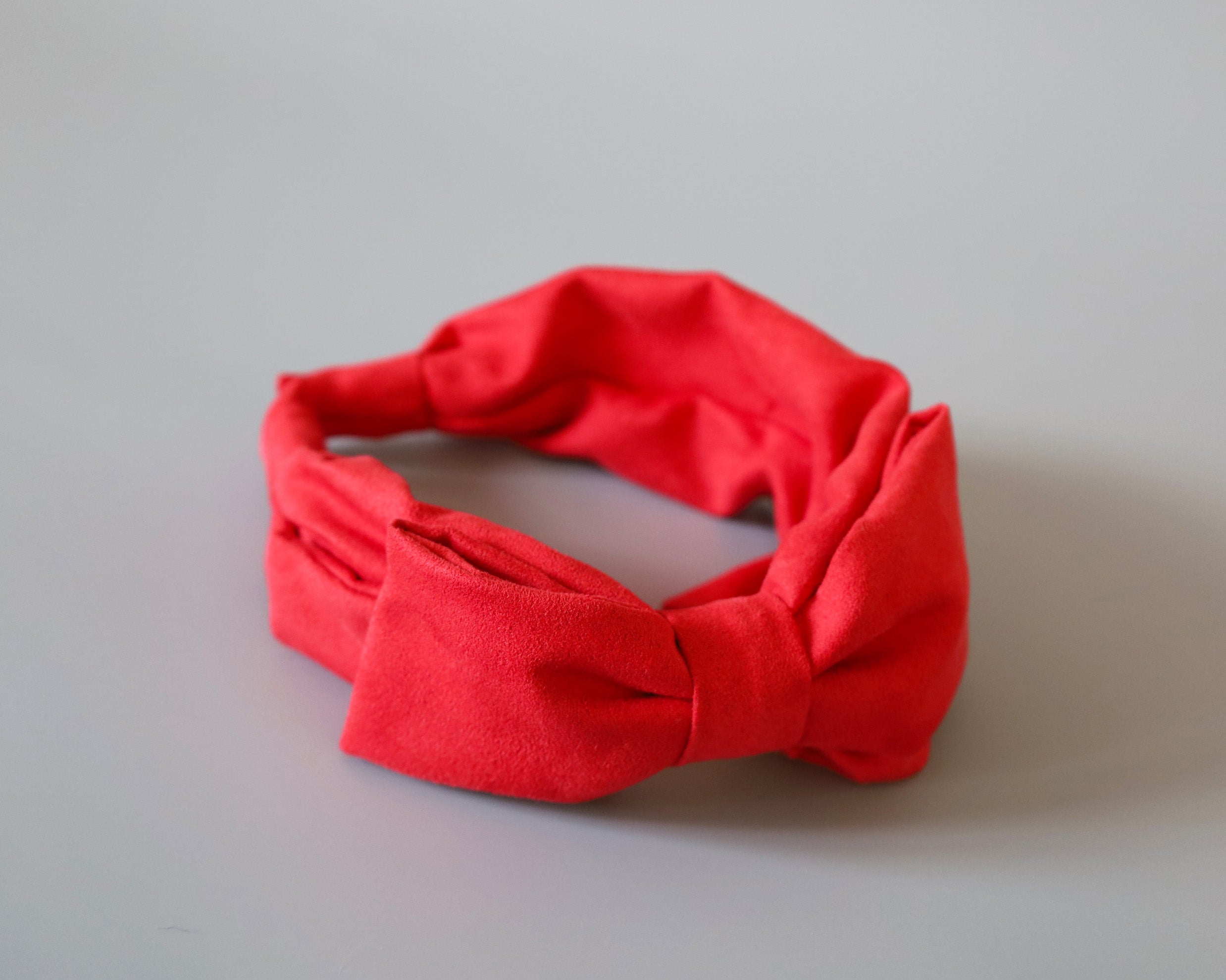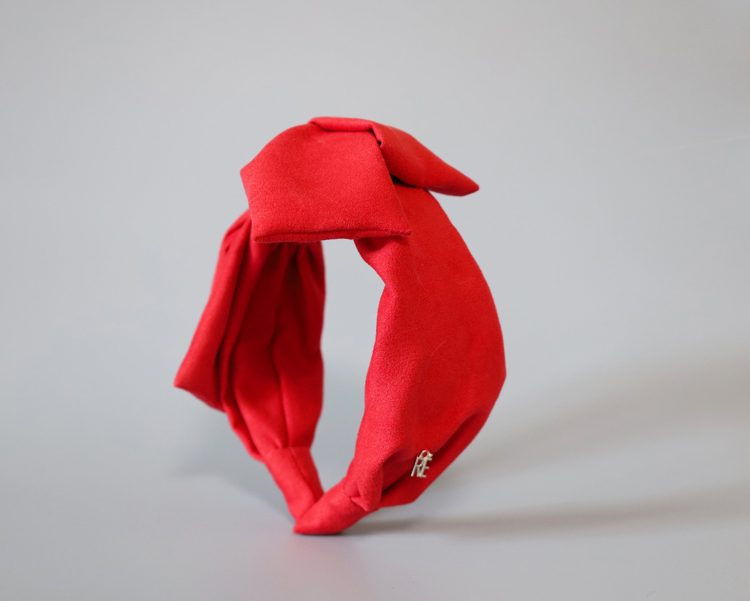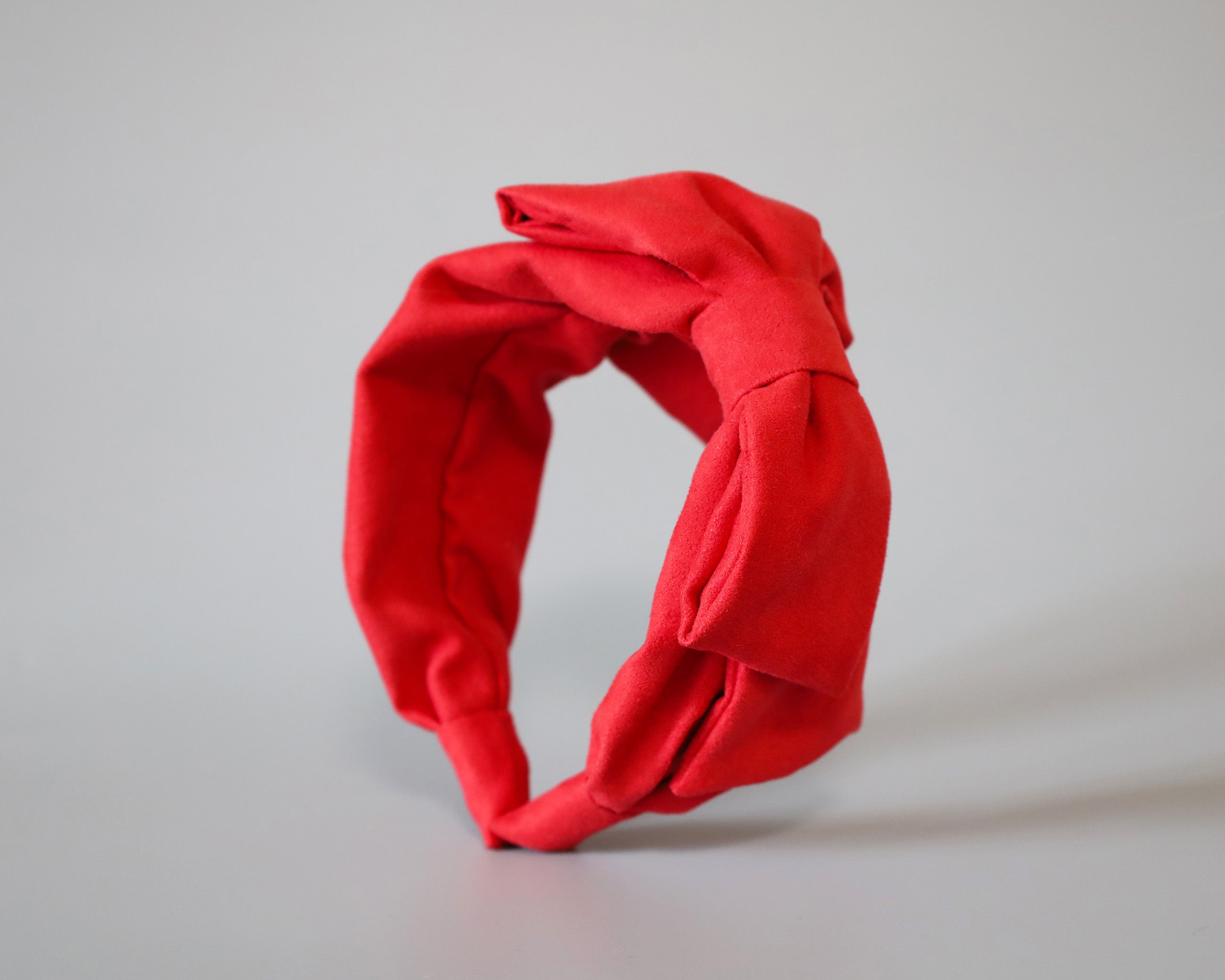 思わず目を引く真っ赤なリボンはコーデのアクセントにぴったり。