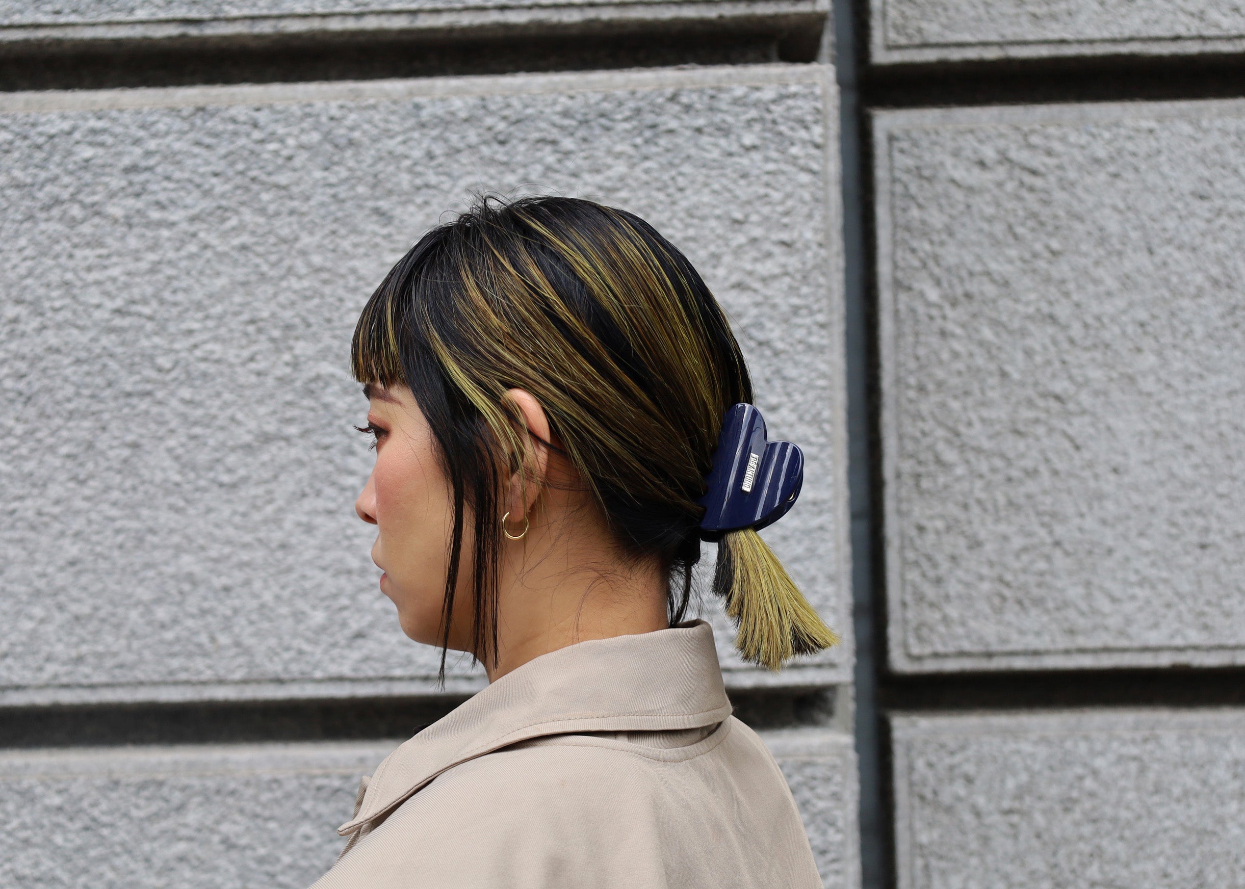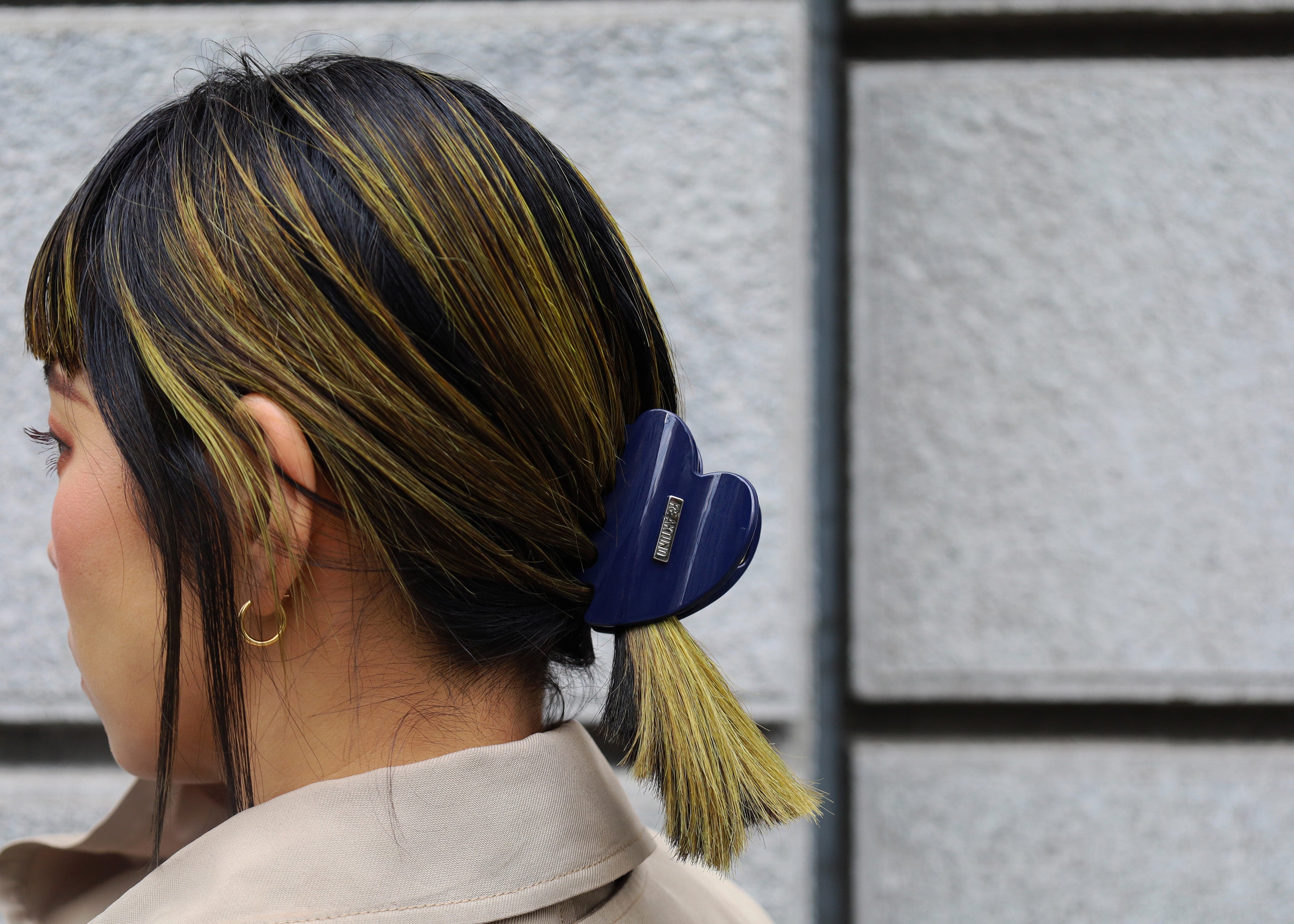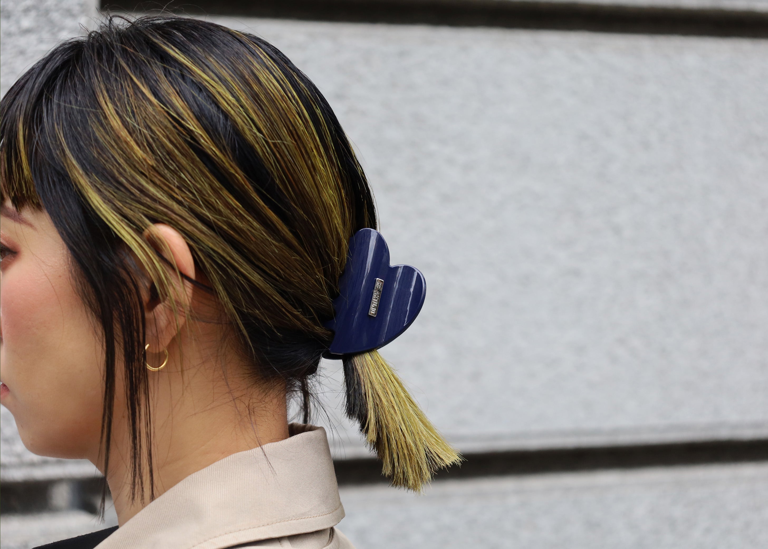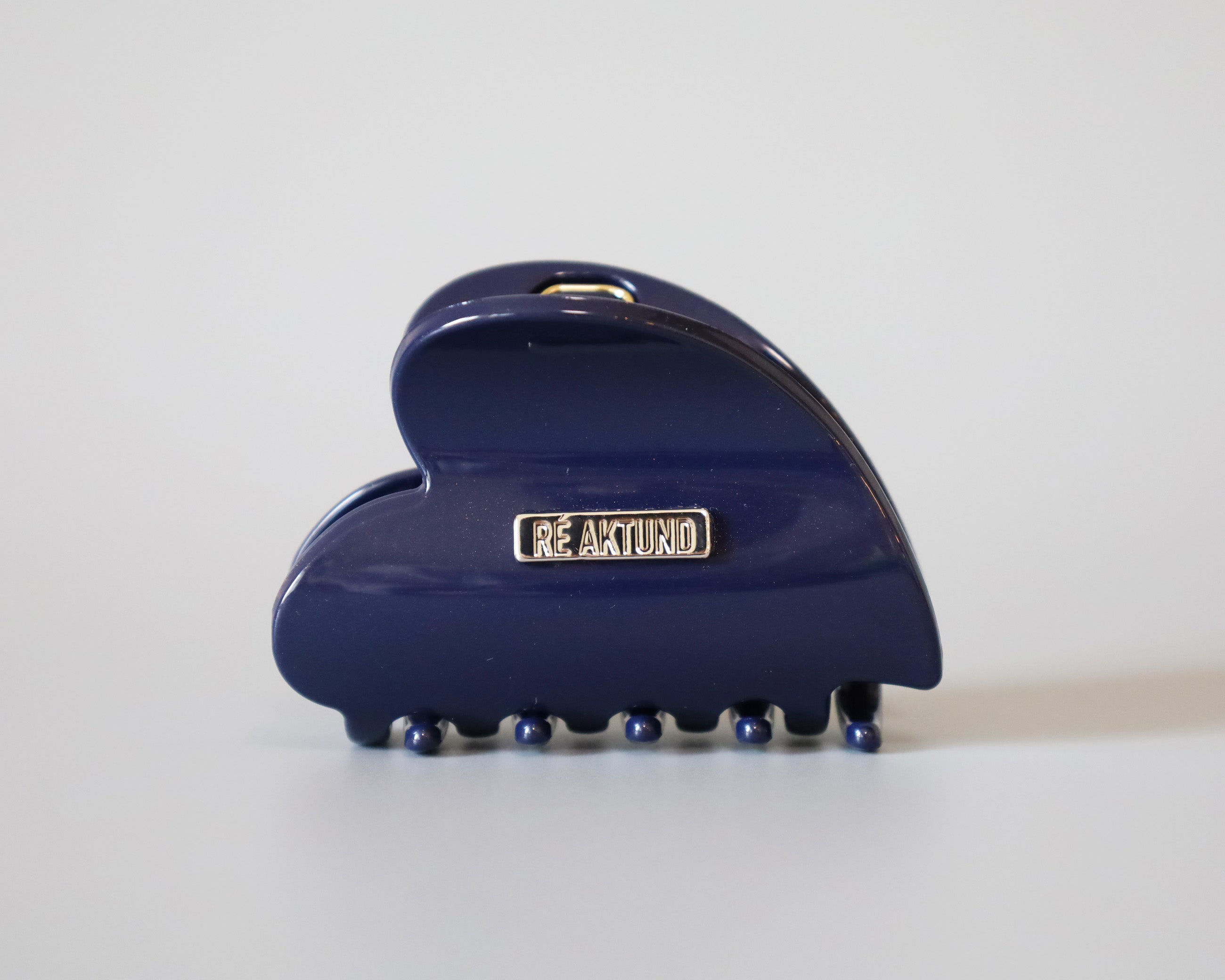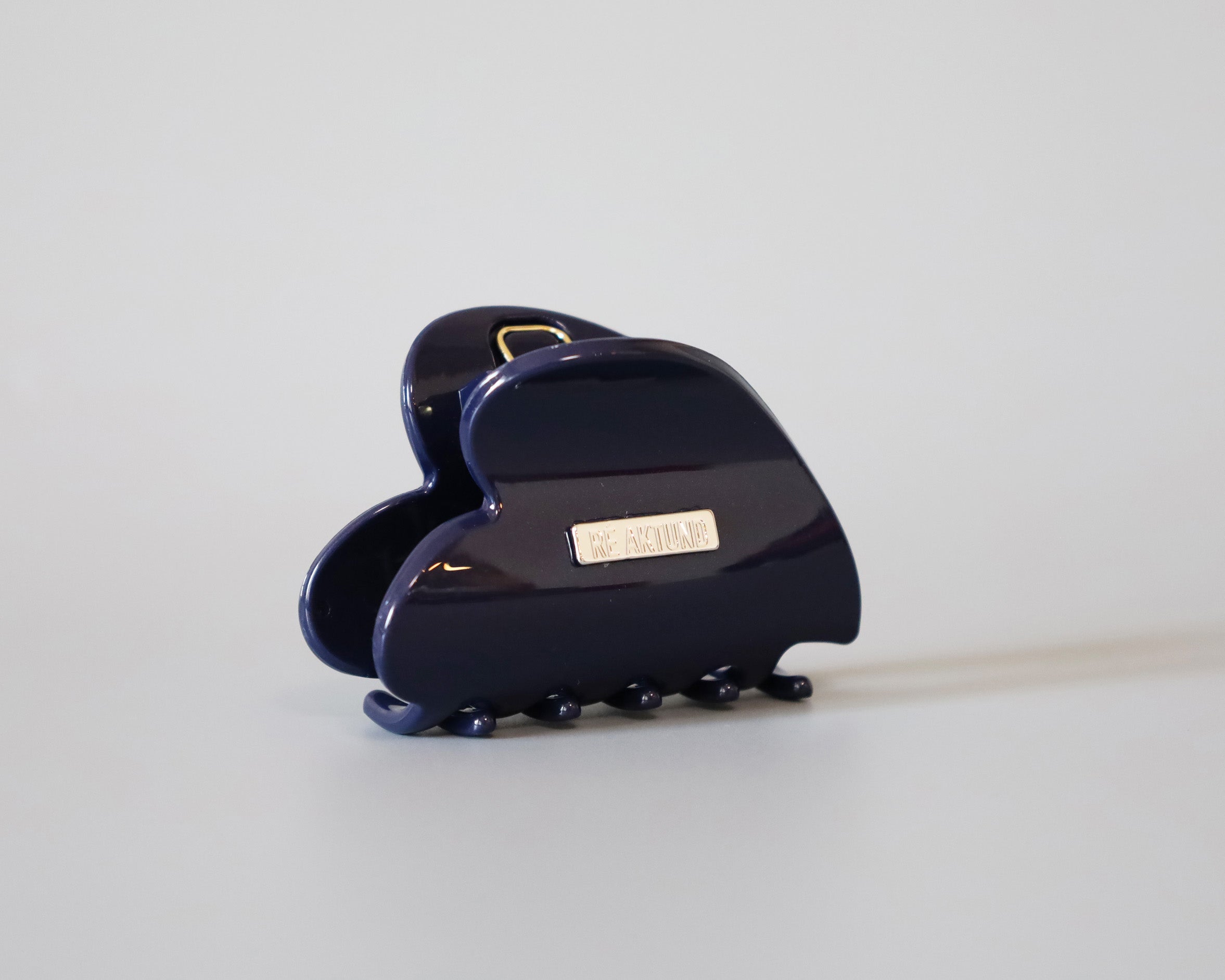 お利口さんな雰囲気ときれいめな雰囲気を兼ね備えたネイビーカラーのハート型へクリップ。