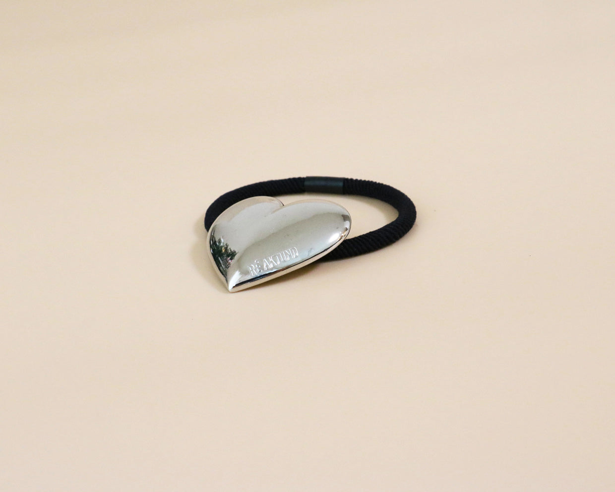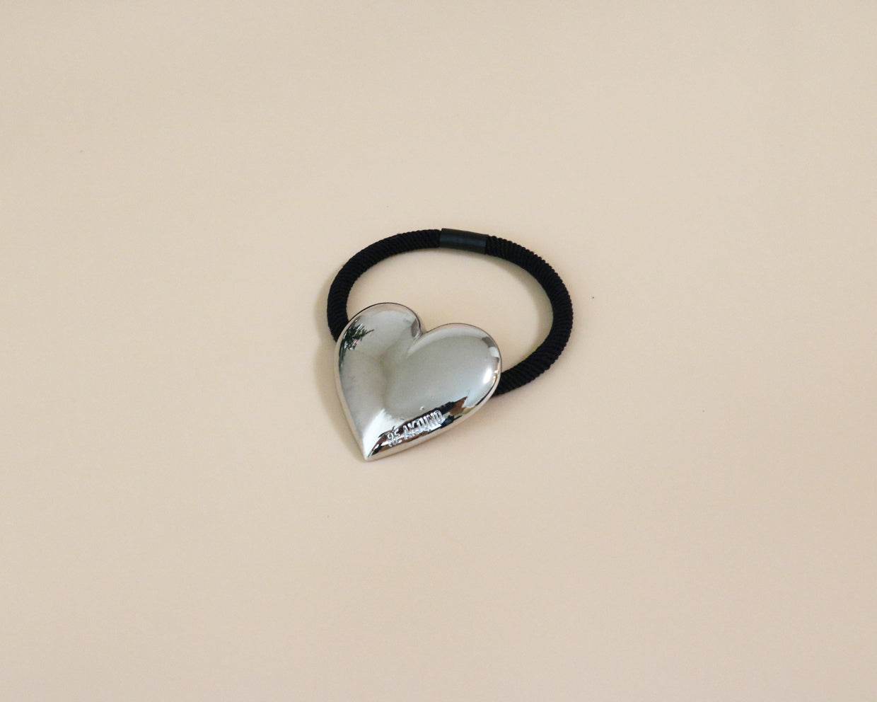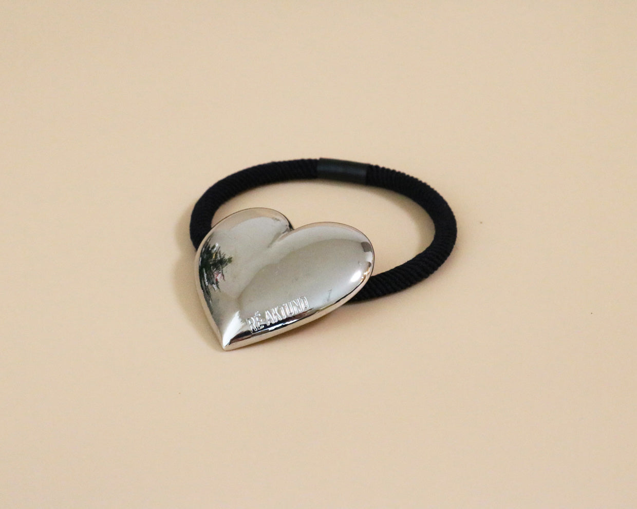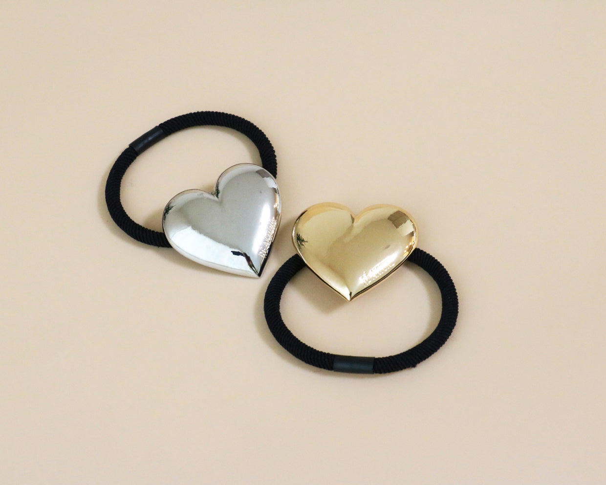 ぷっくりとした大きめハートのメタルパーツがかわいいヘアゴム。