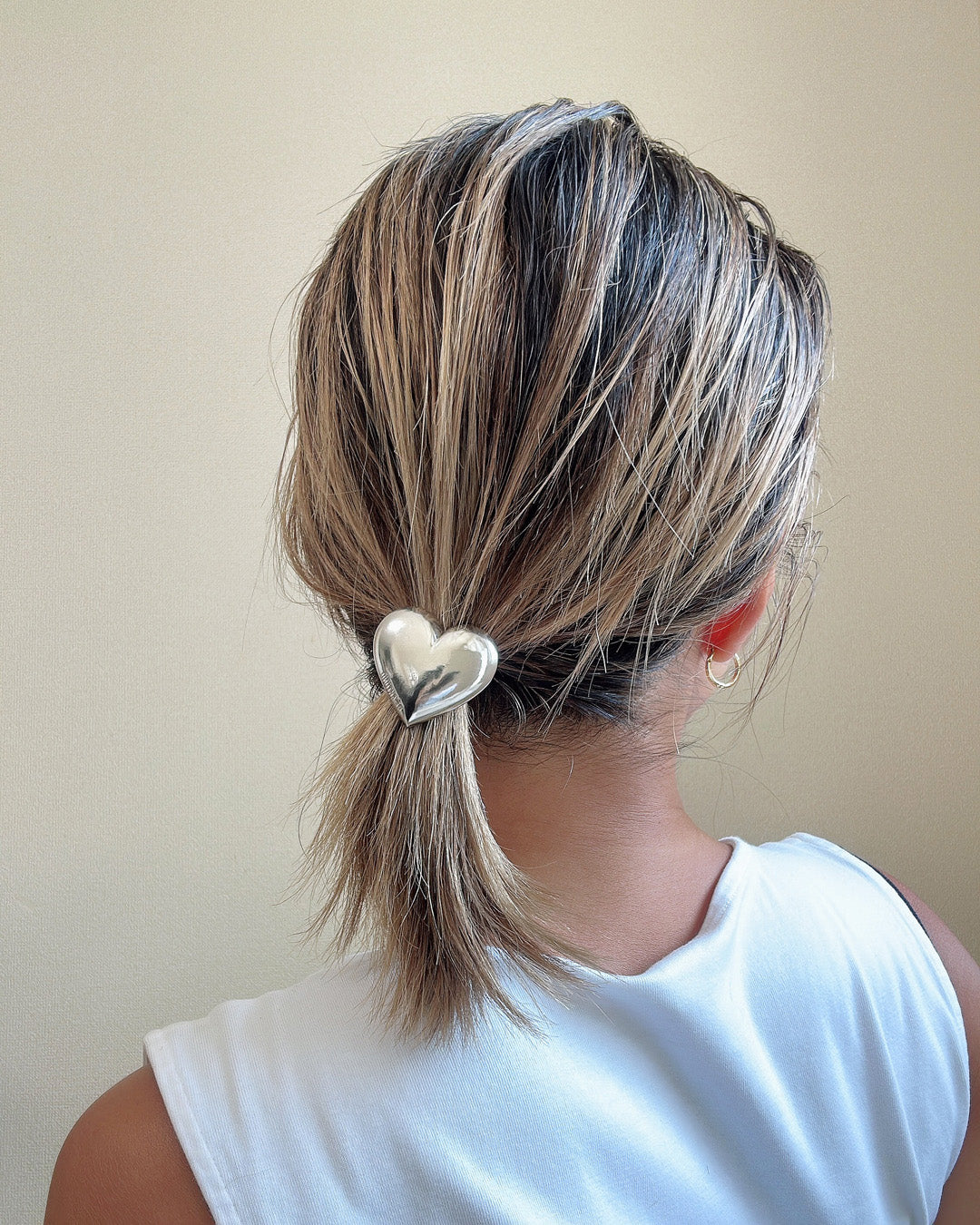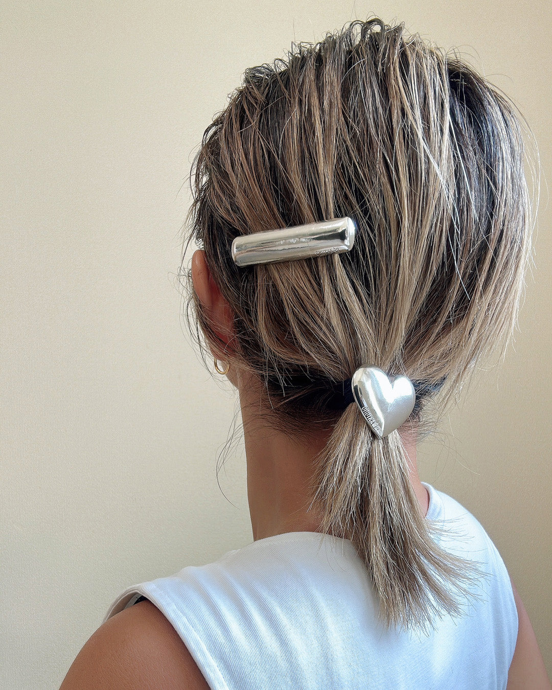 同じメタル素材のバレッタとの組み合わせもおしゃれな仕上がりです。