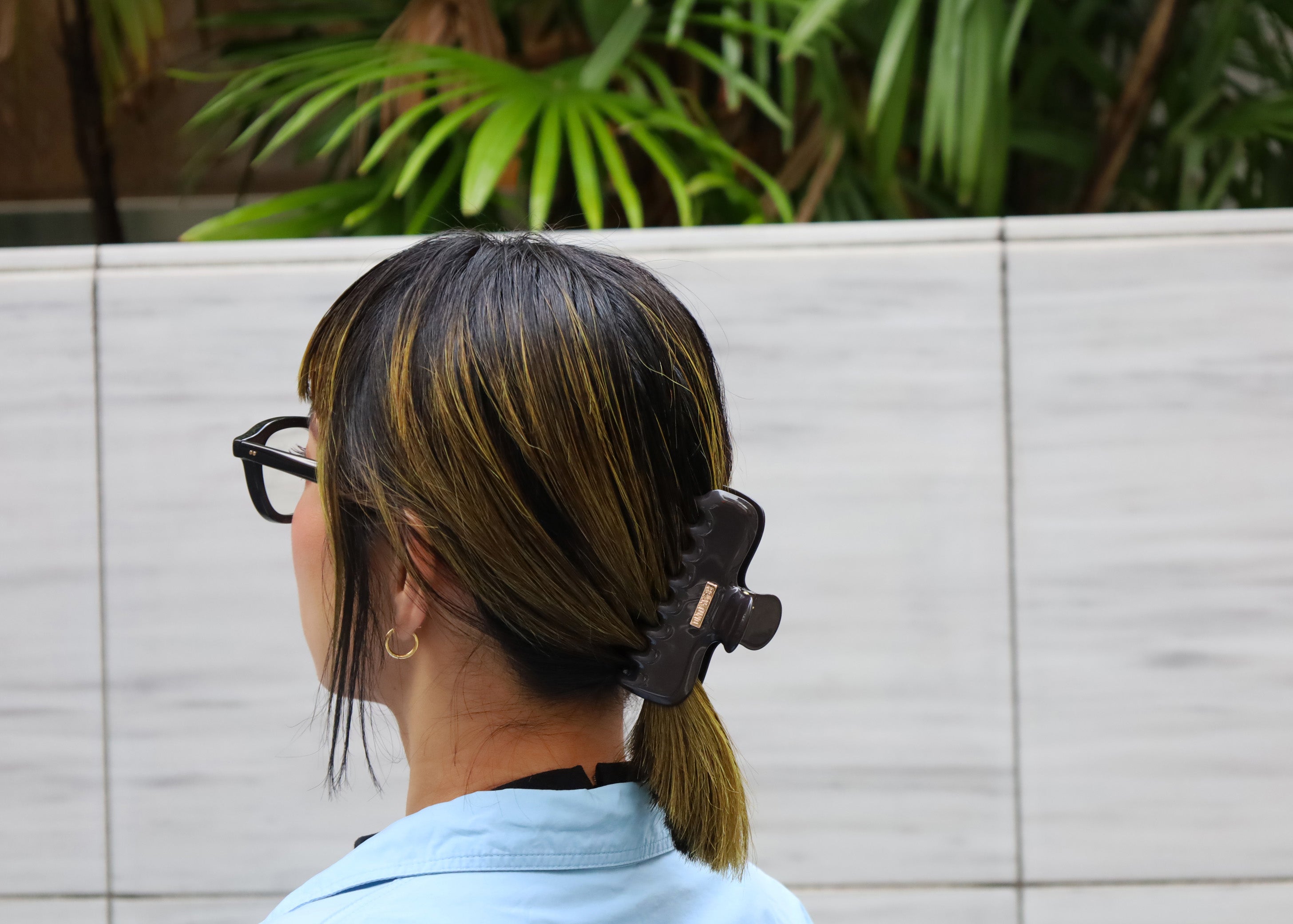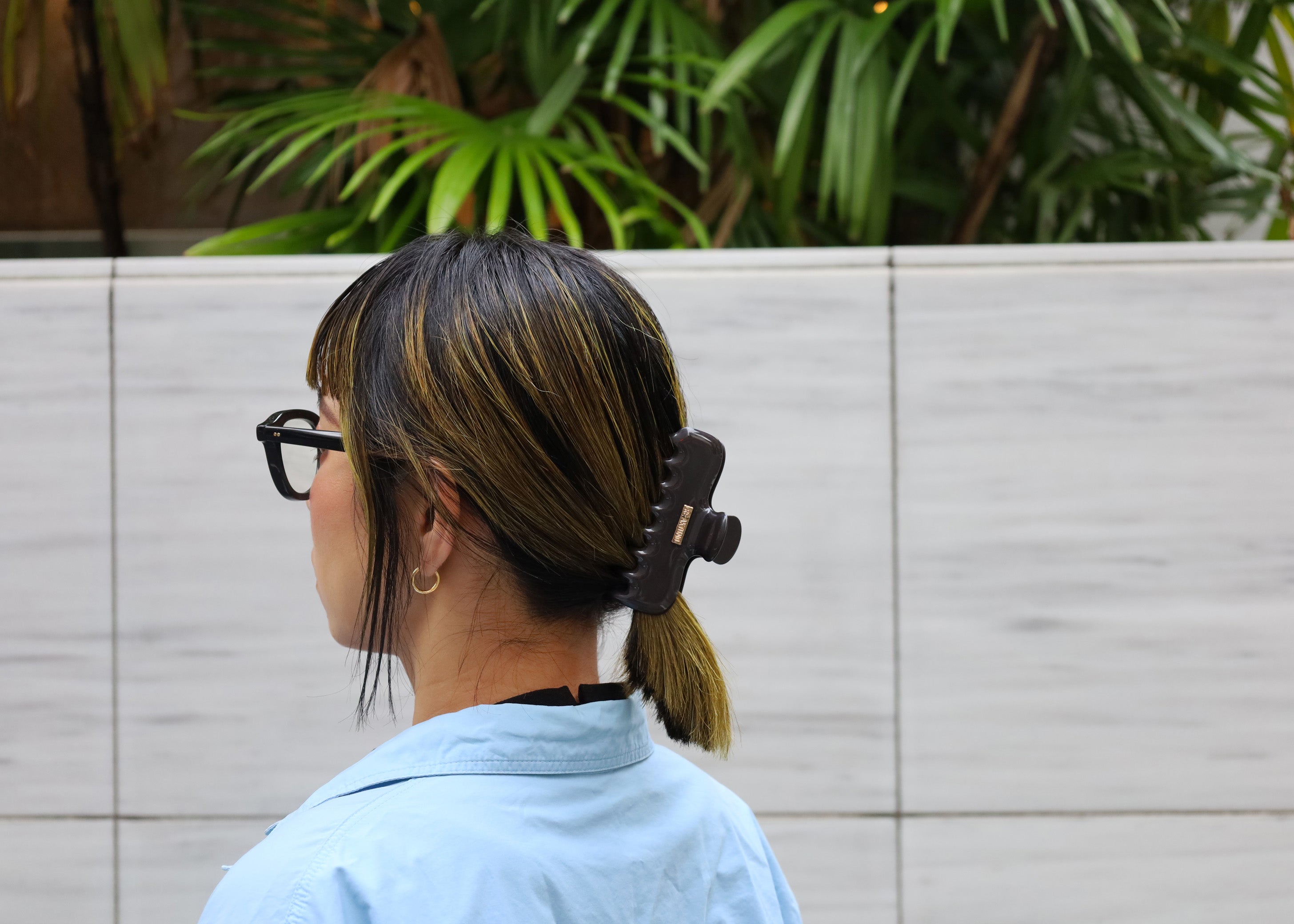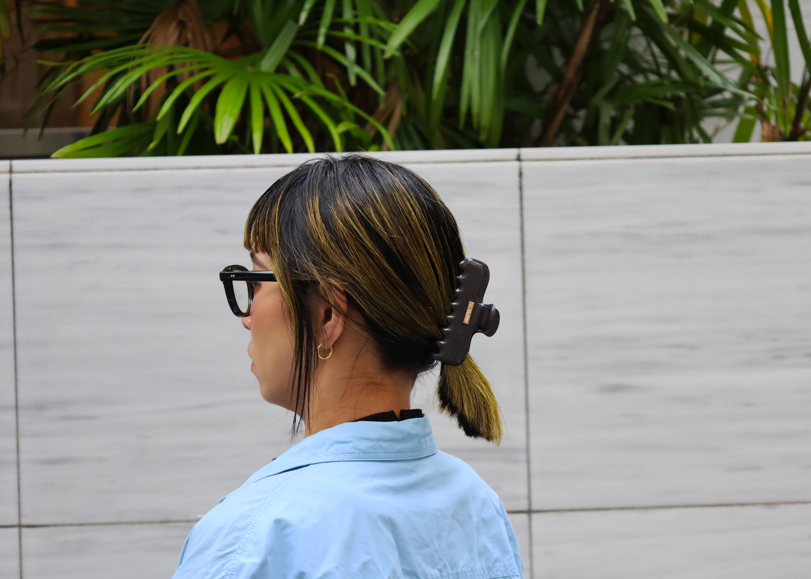黒やシルバーと異なるニュアンスが楽しめる、グレーカラーのヘアクリップ。
