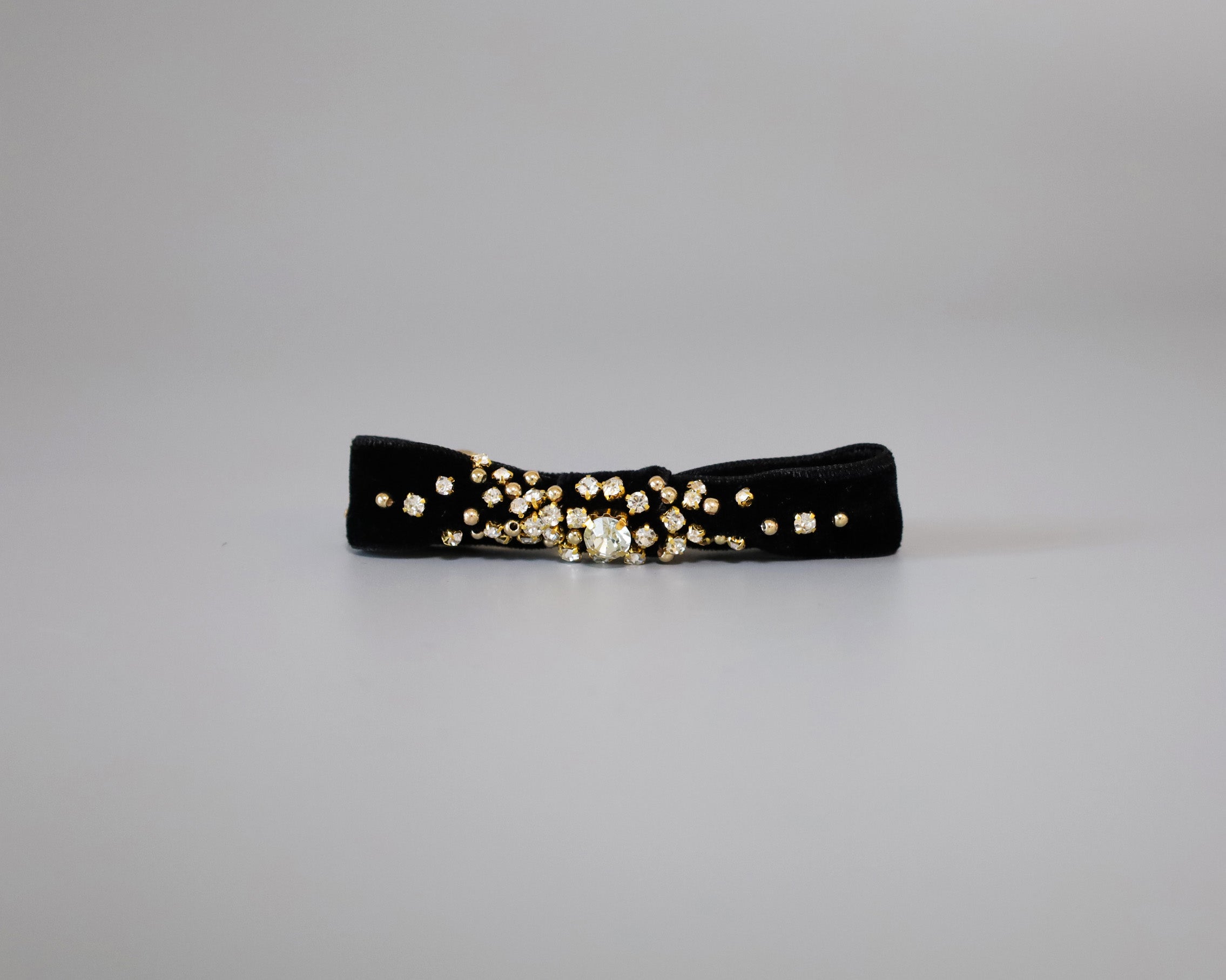 リボンの中心から広がるようにビジューで彩り、ラグジュアリーさもプラス。