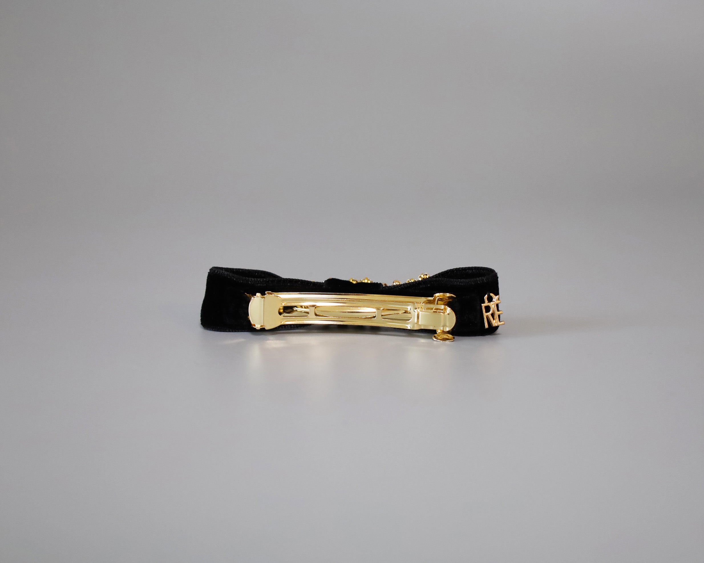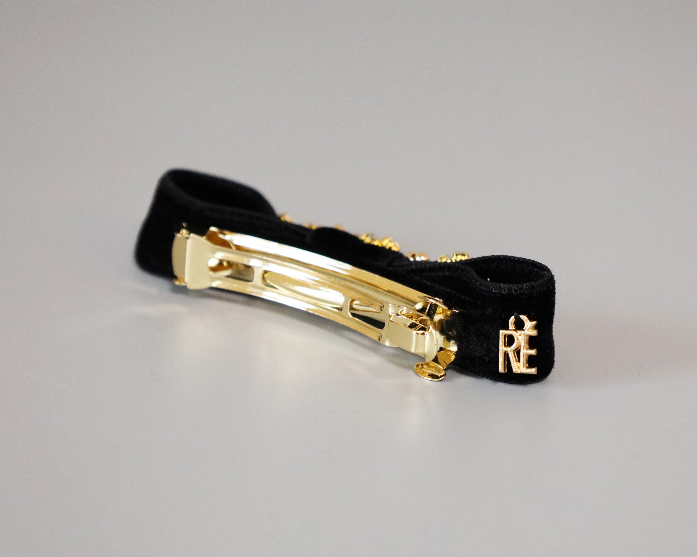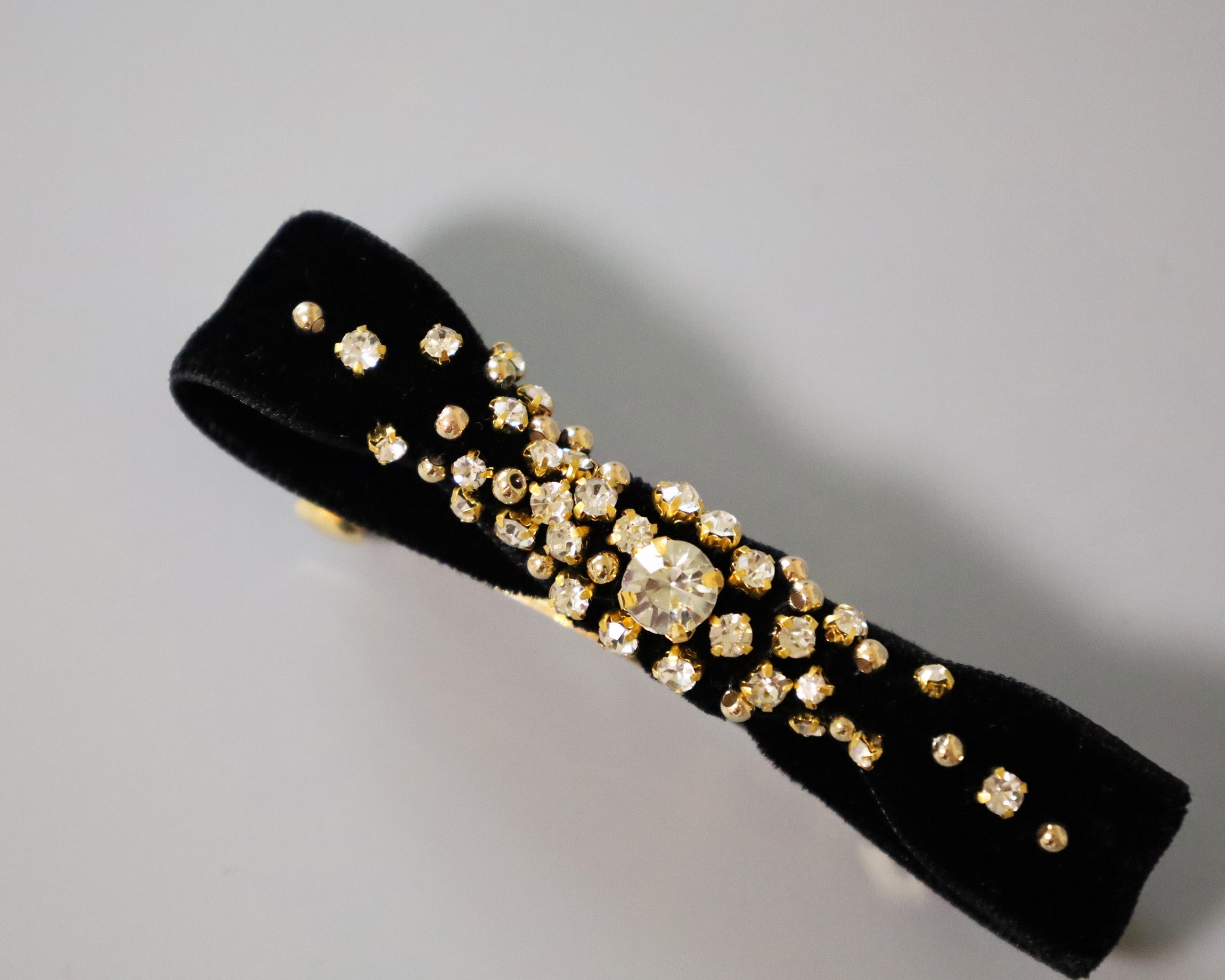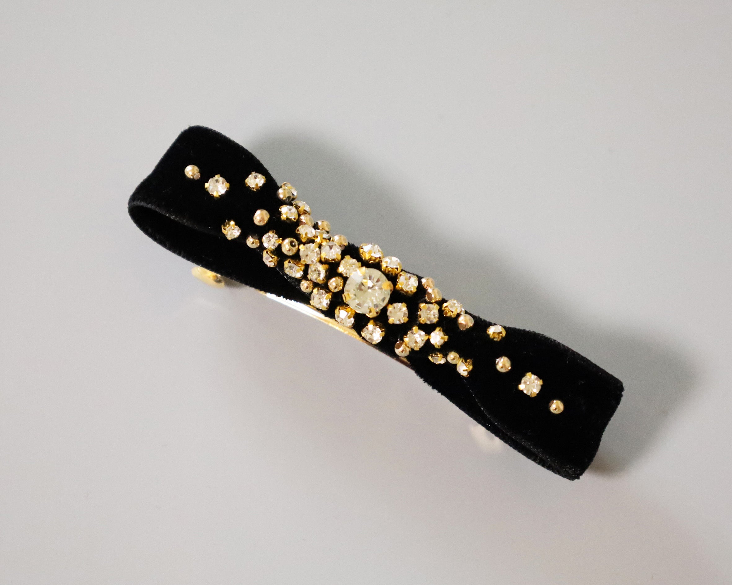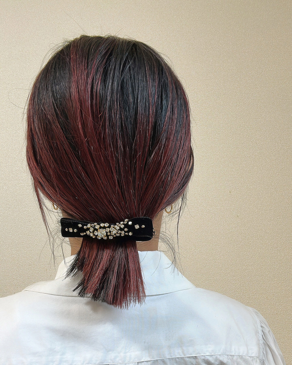 ブラックのベルベットリボンがクラシックな表情のリボンバレッタ。