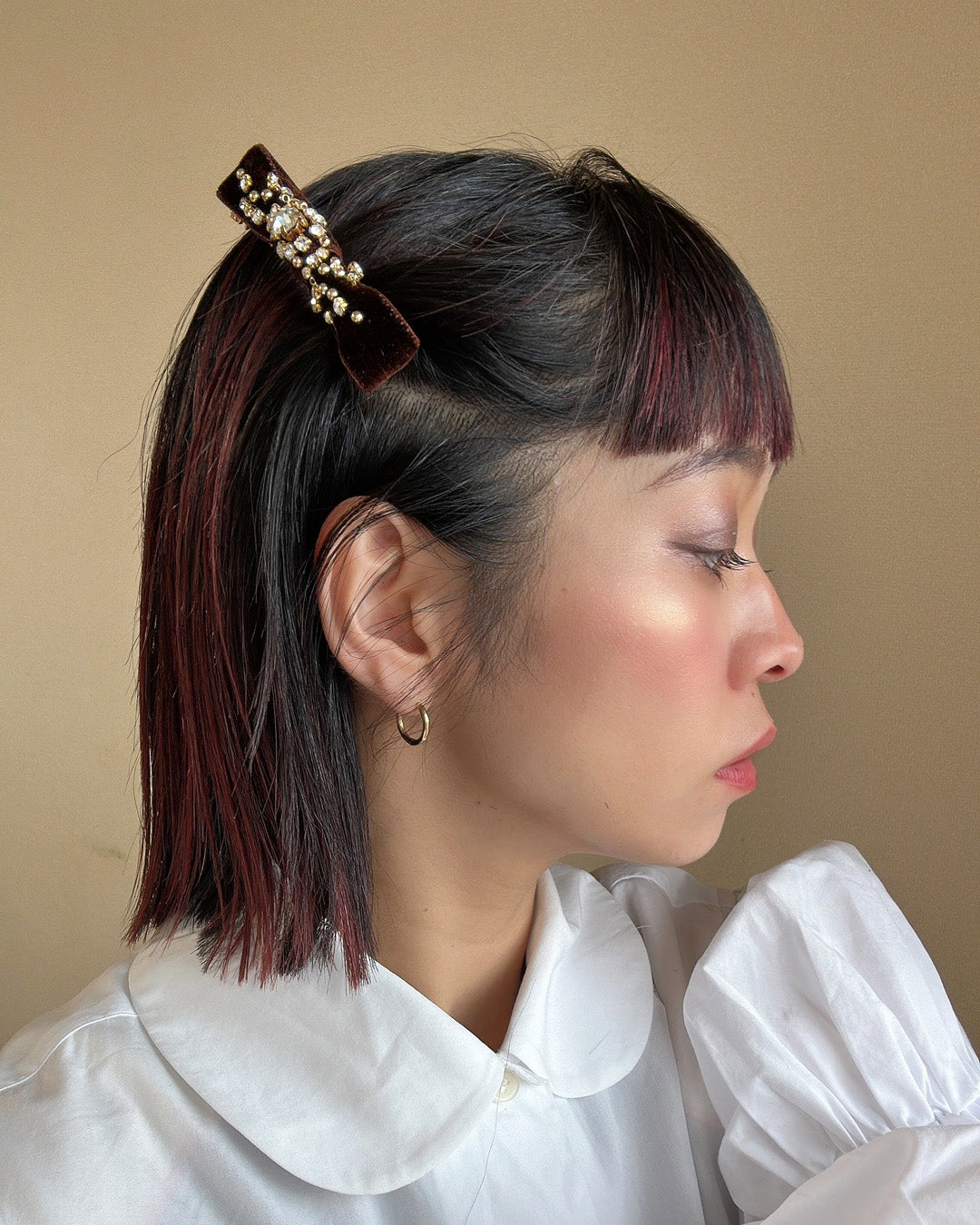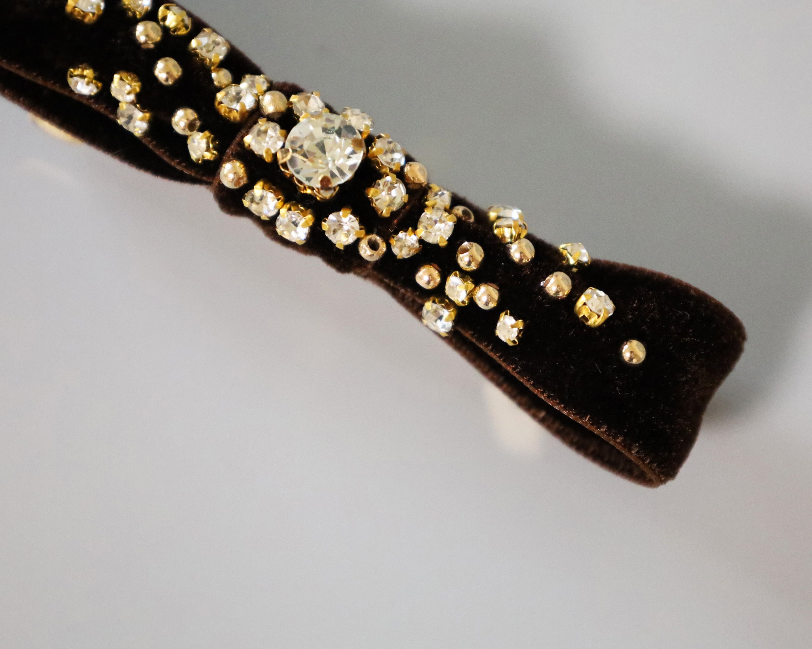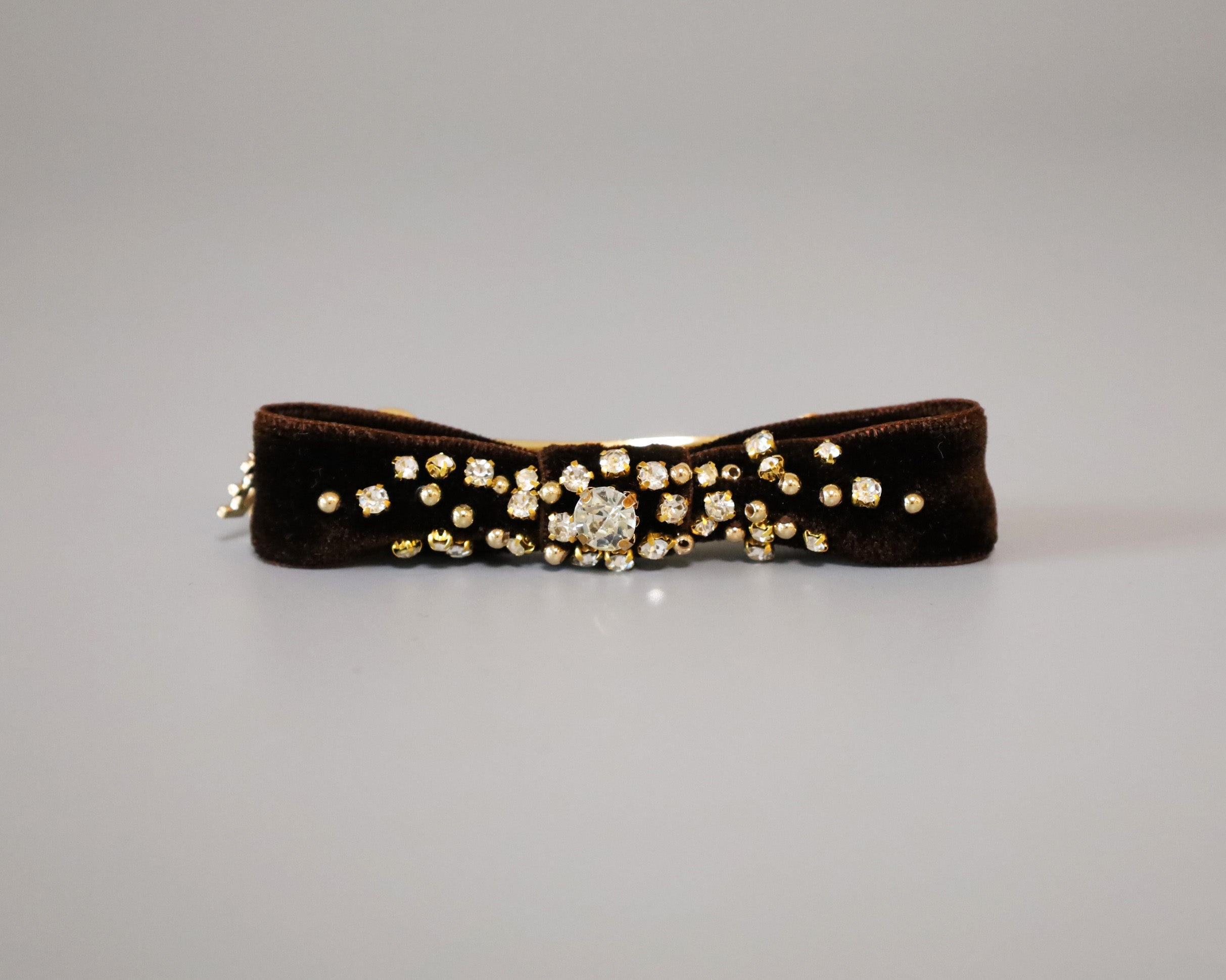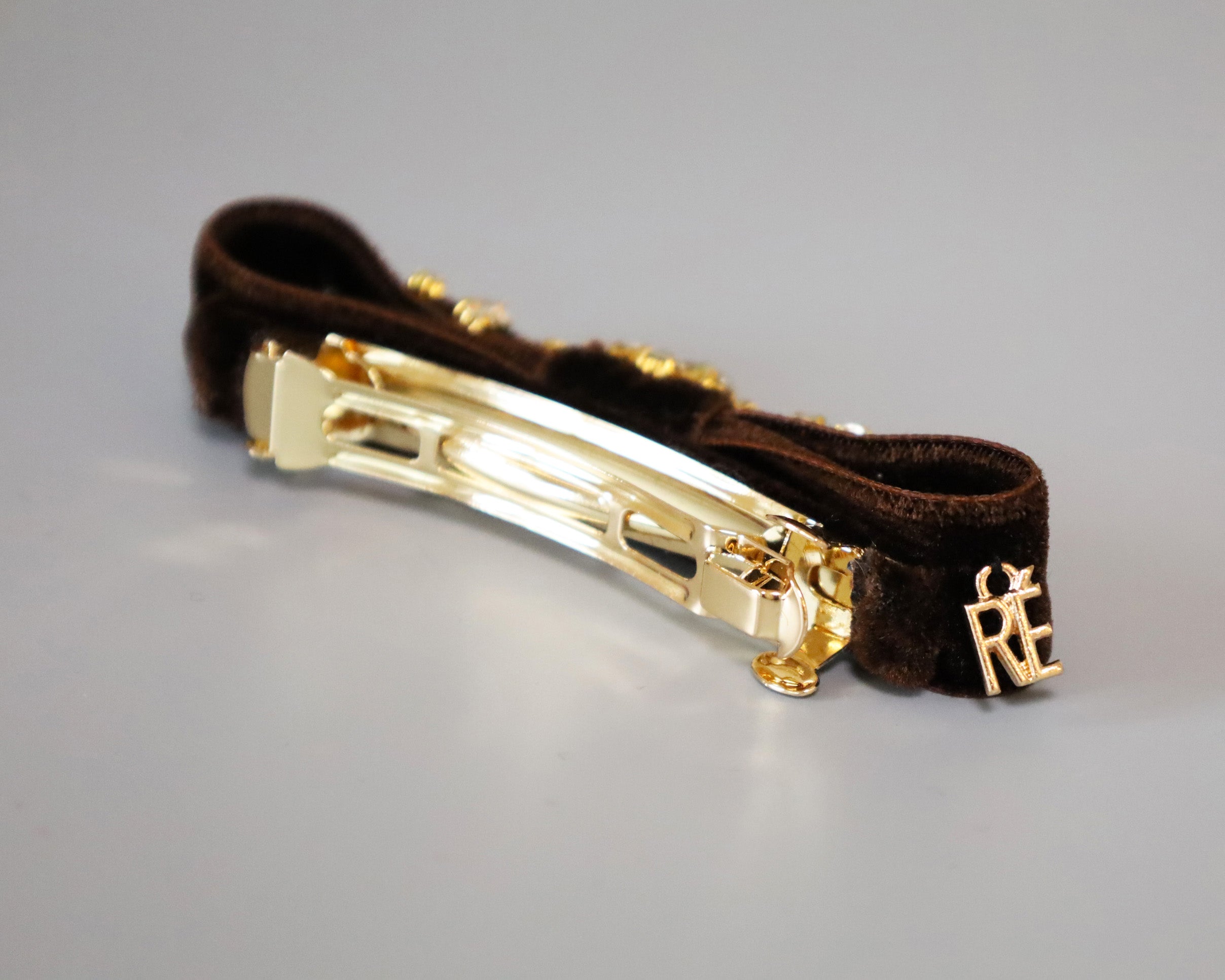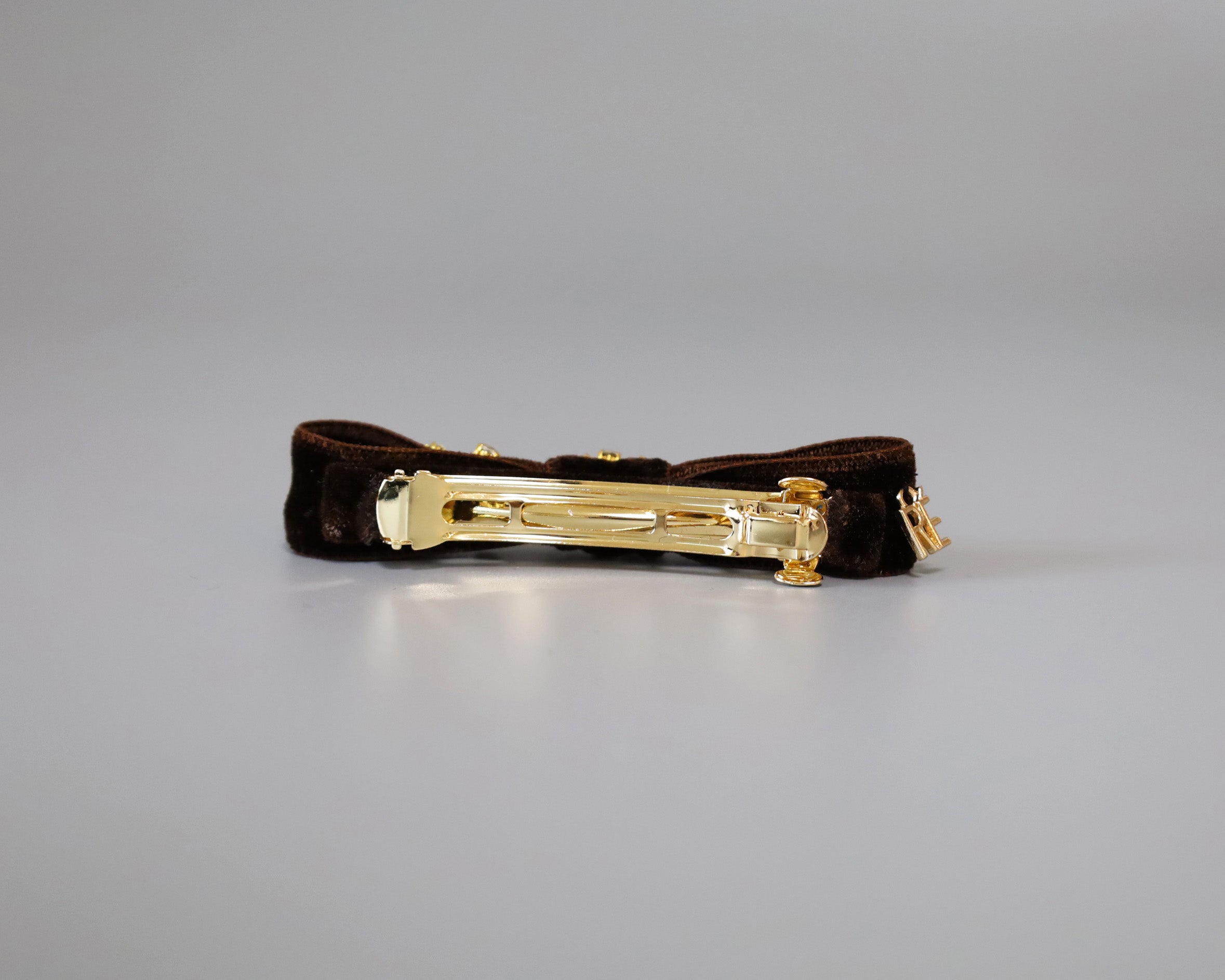 こっくりとしたチョコレートブラウンのベルベットで仕立てたリボンバレッタ。