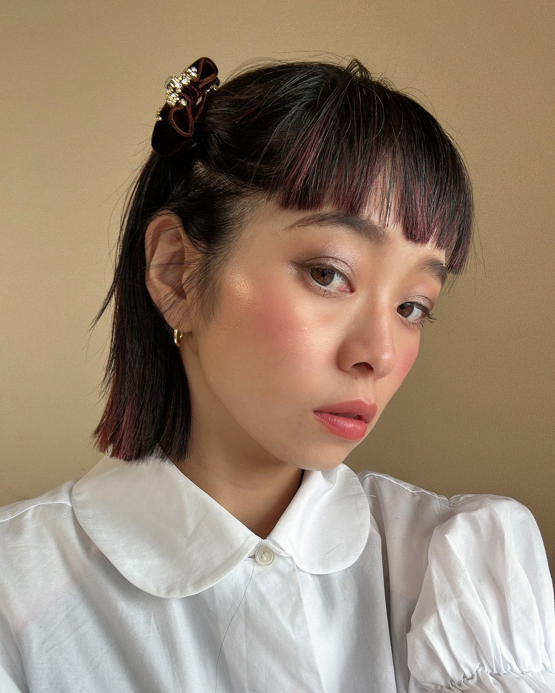 毛束をバランスよくつまんで引き出したらこなれたハーフアップスタイルの完成です。