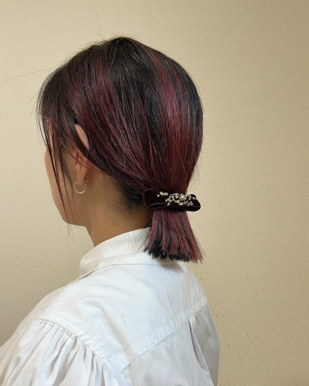 他にも、ローポニーのゴム隠しや顔まわりにつけるだけで華やかな表情に。