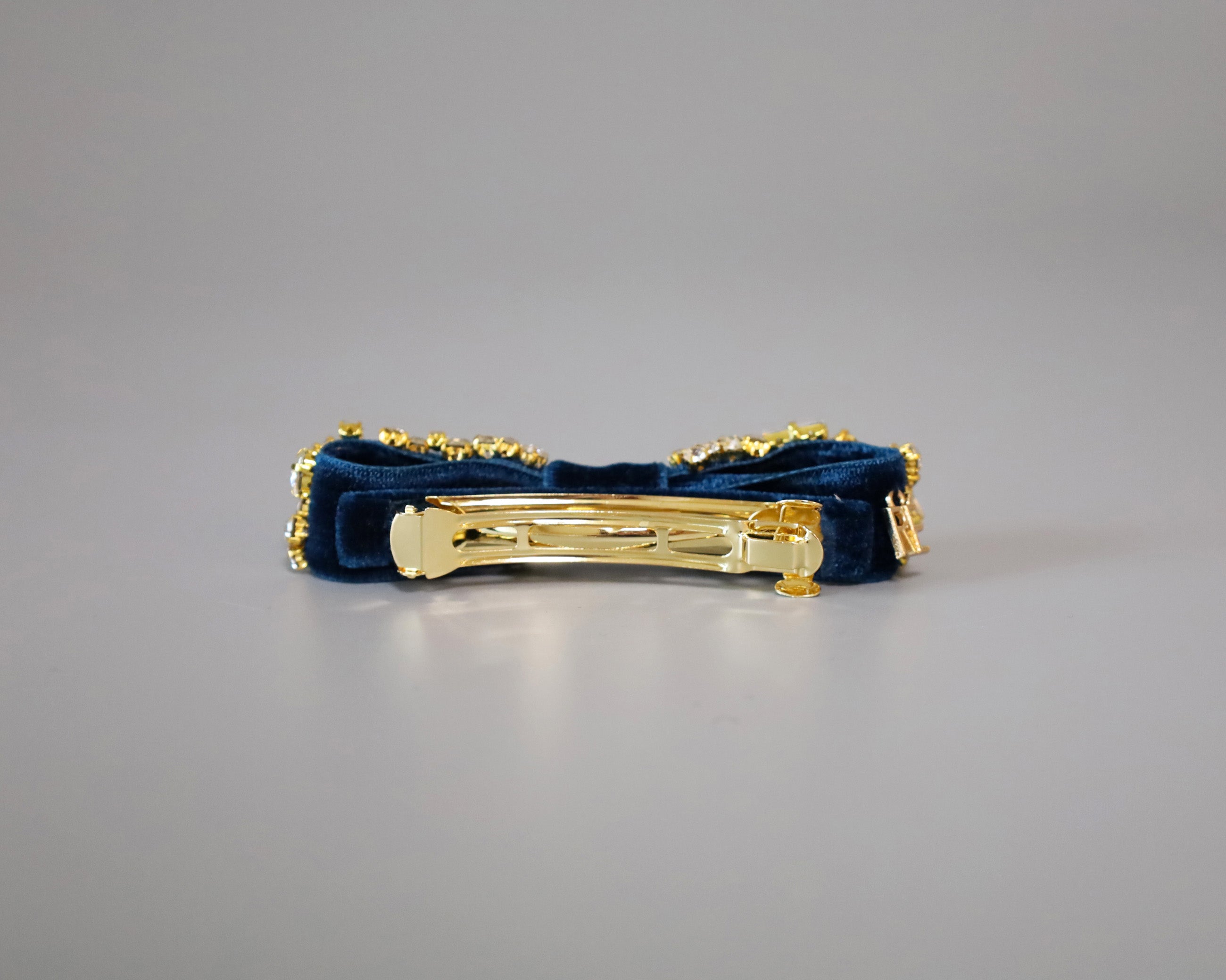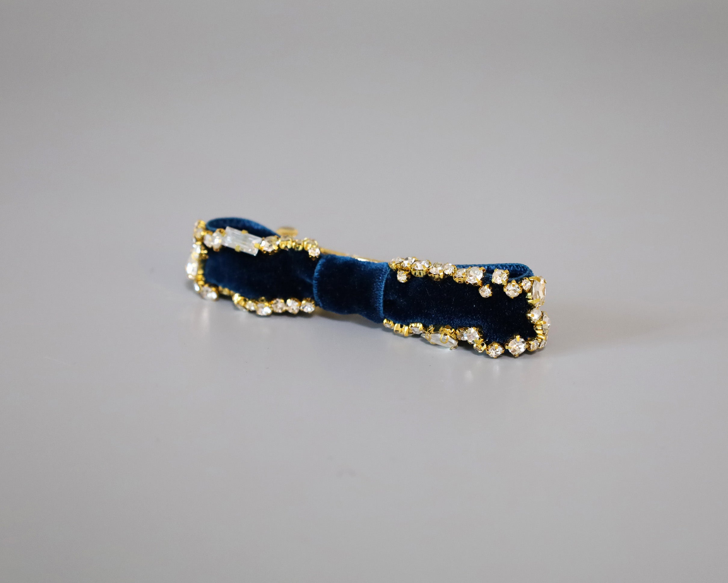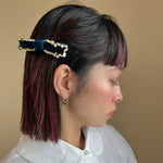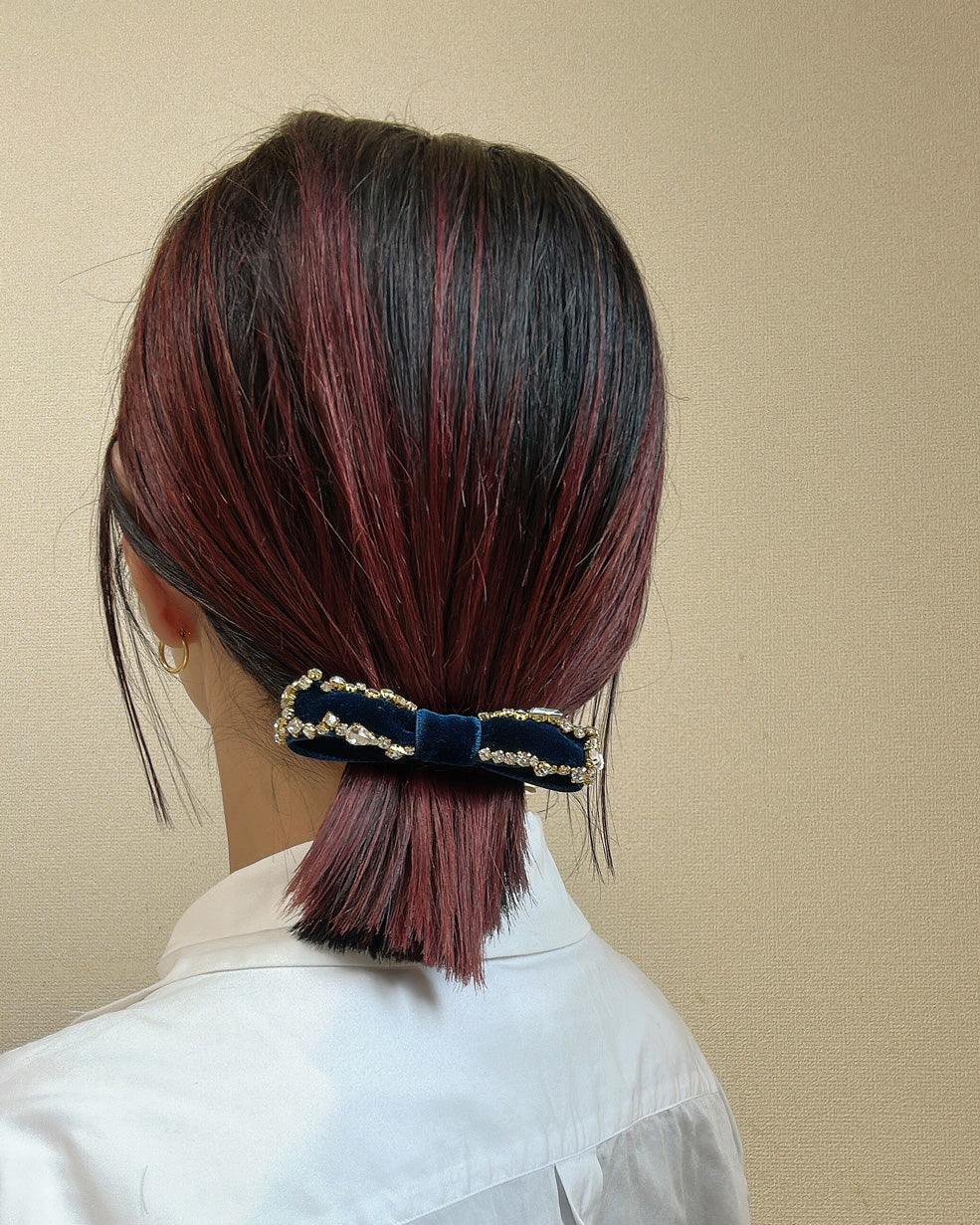 夜空のようなネイビーカラーが美しいベルベットのバレッタ。