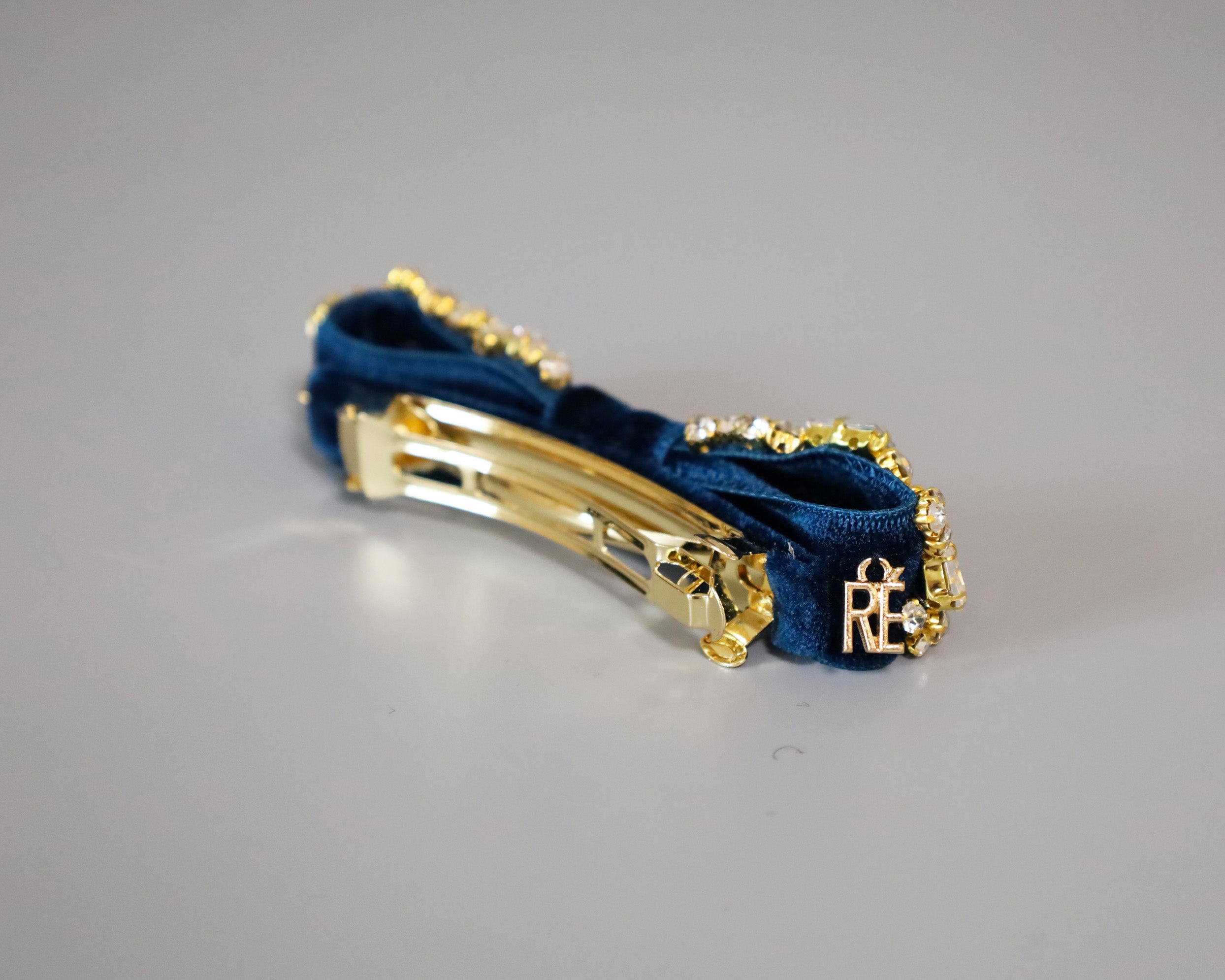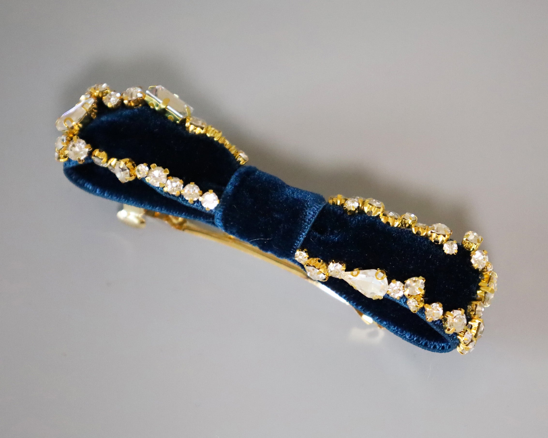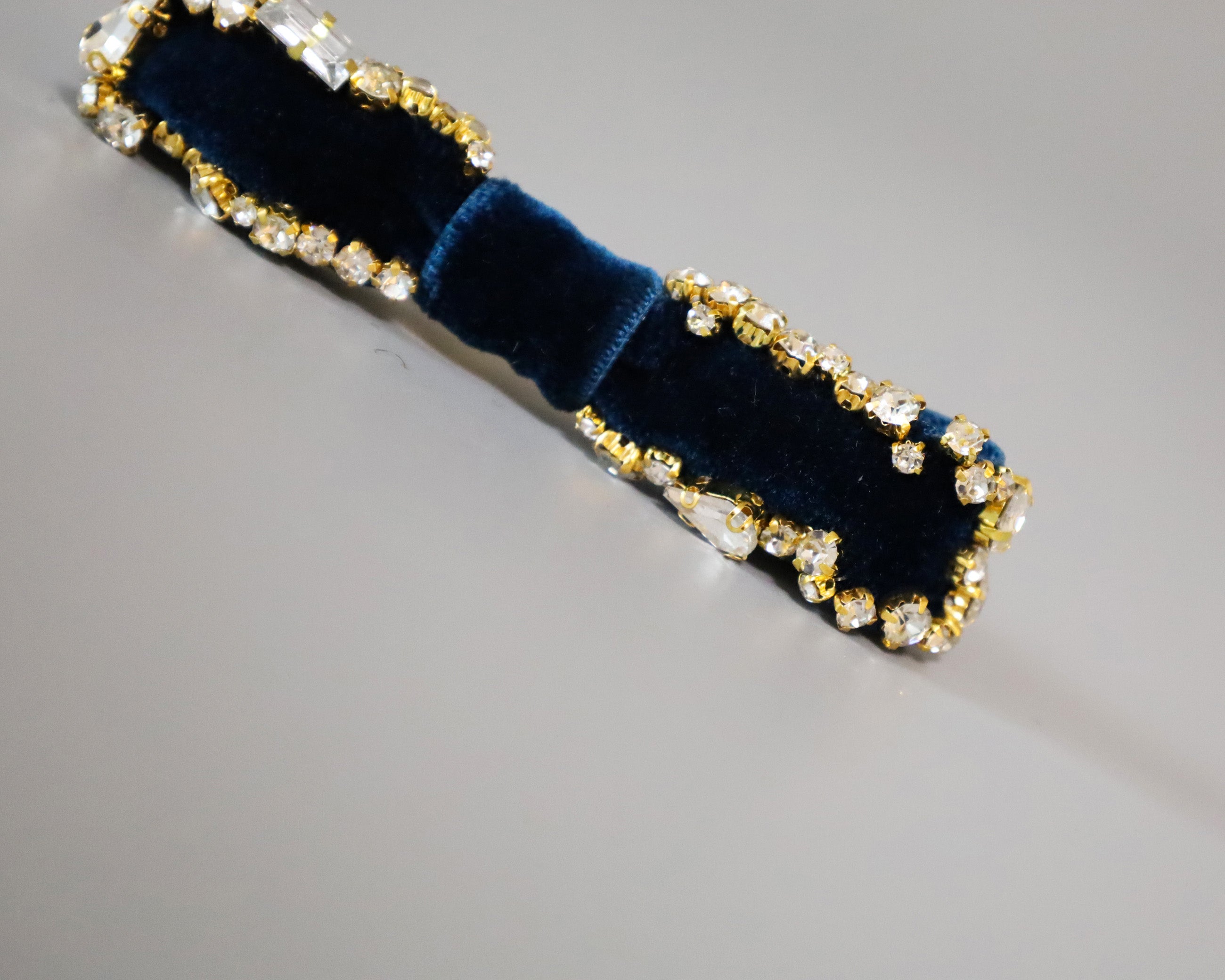 夜空のようなネイビーカラーが美しいベルベットのバレッタ。