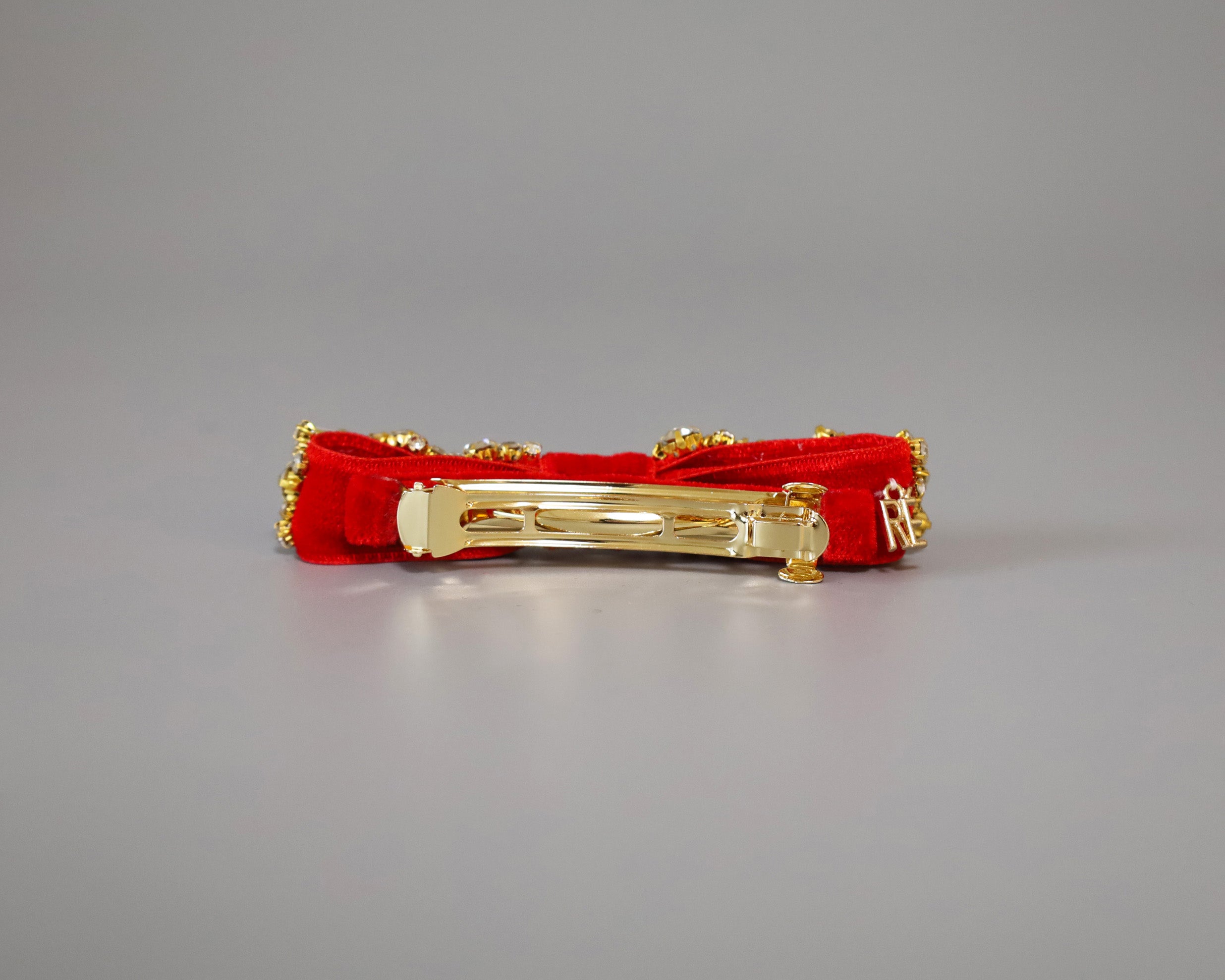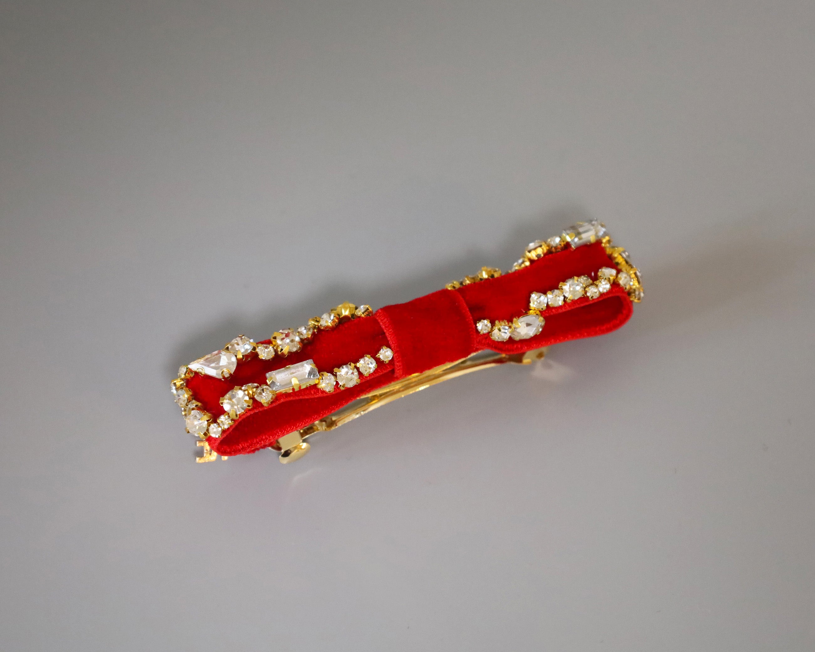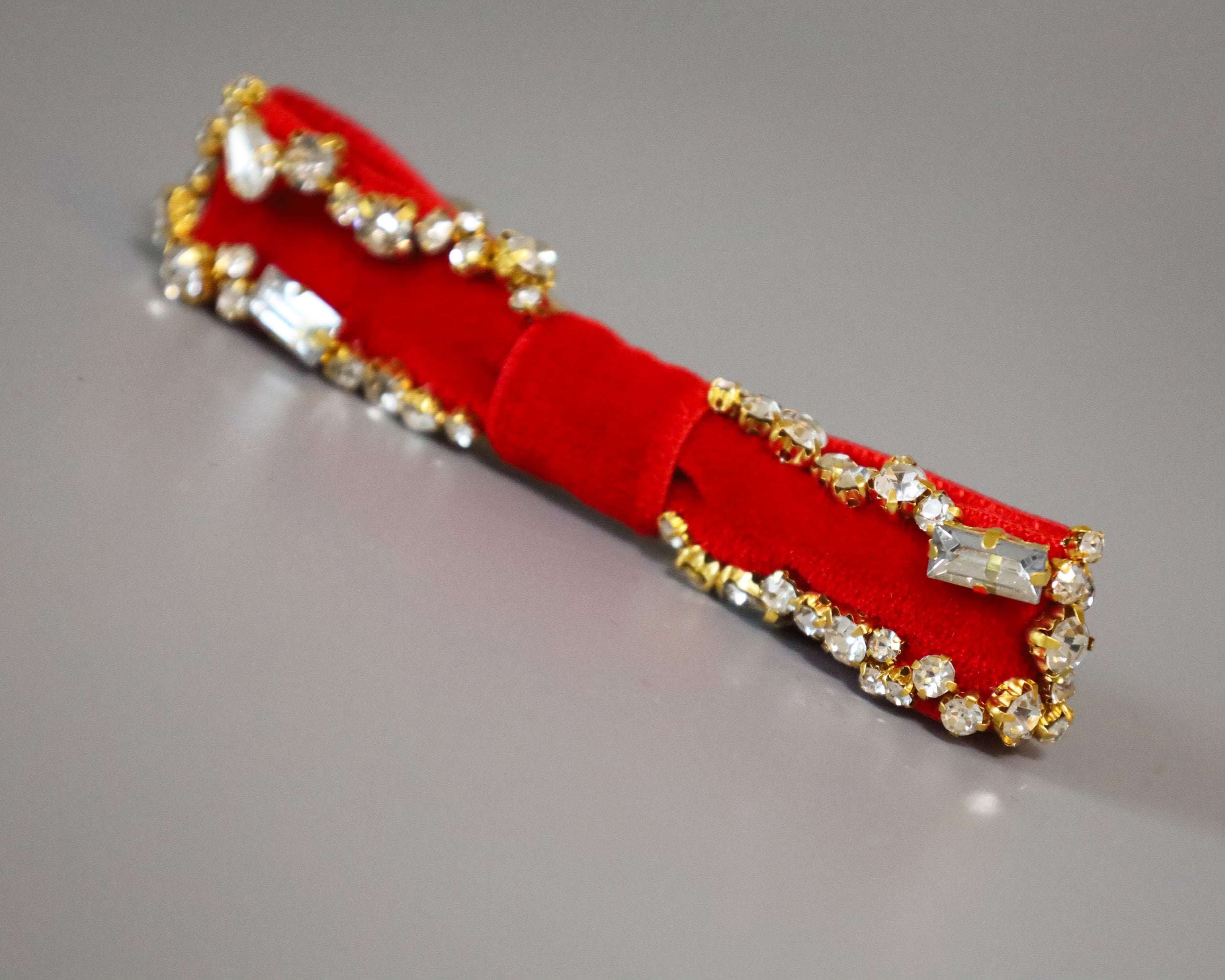 リボンを縁取るクリアビジューは、ゴールドの土台でラグジュアリーな輝き。