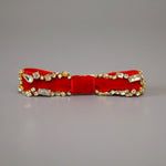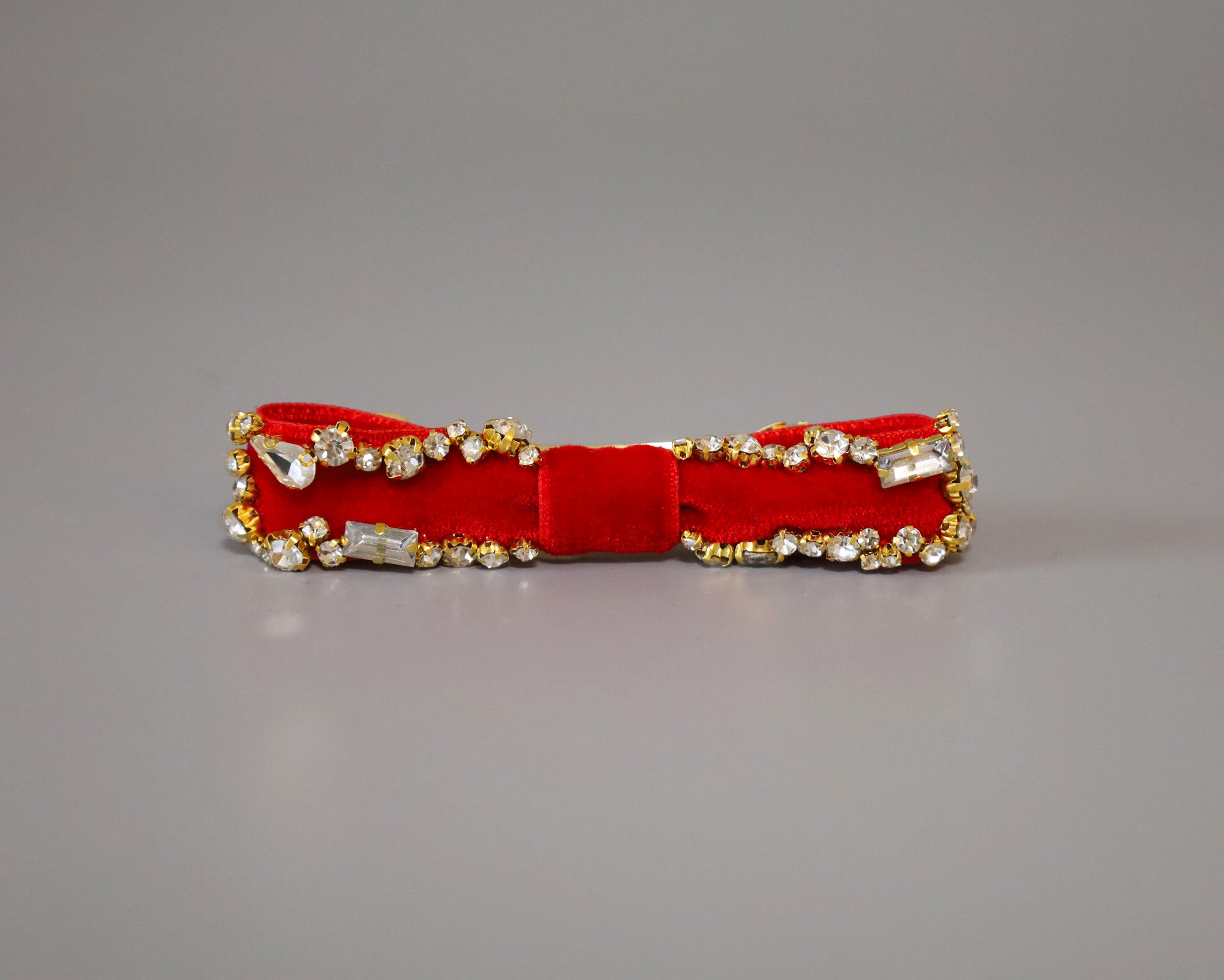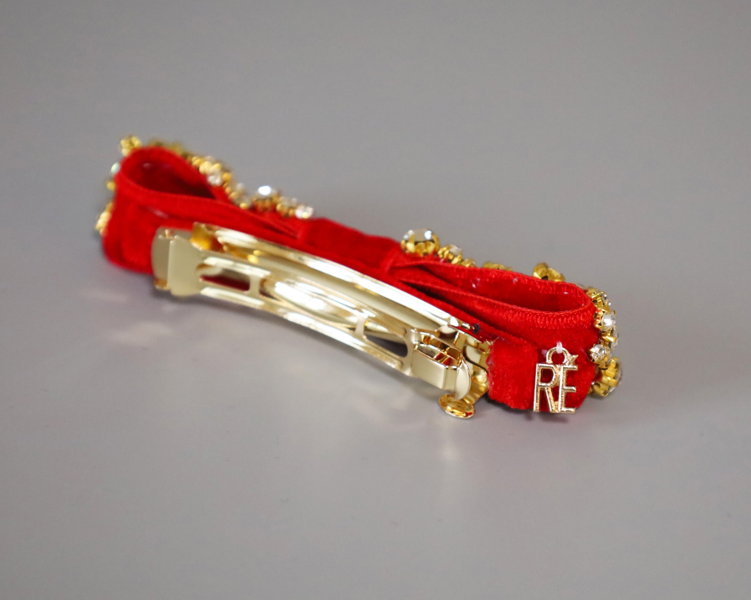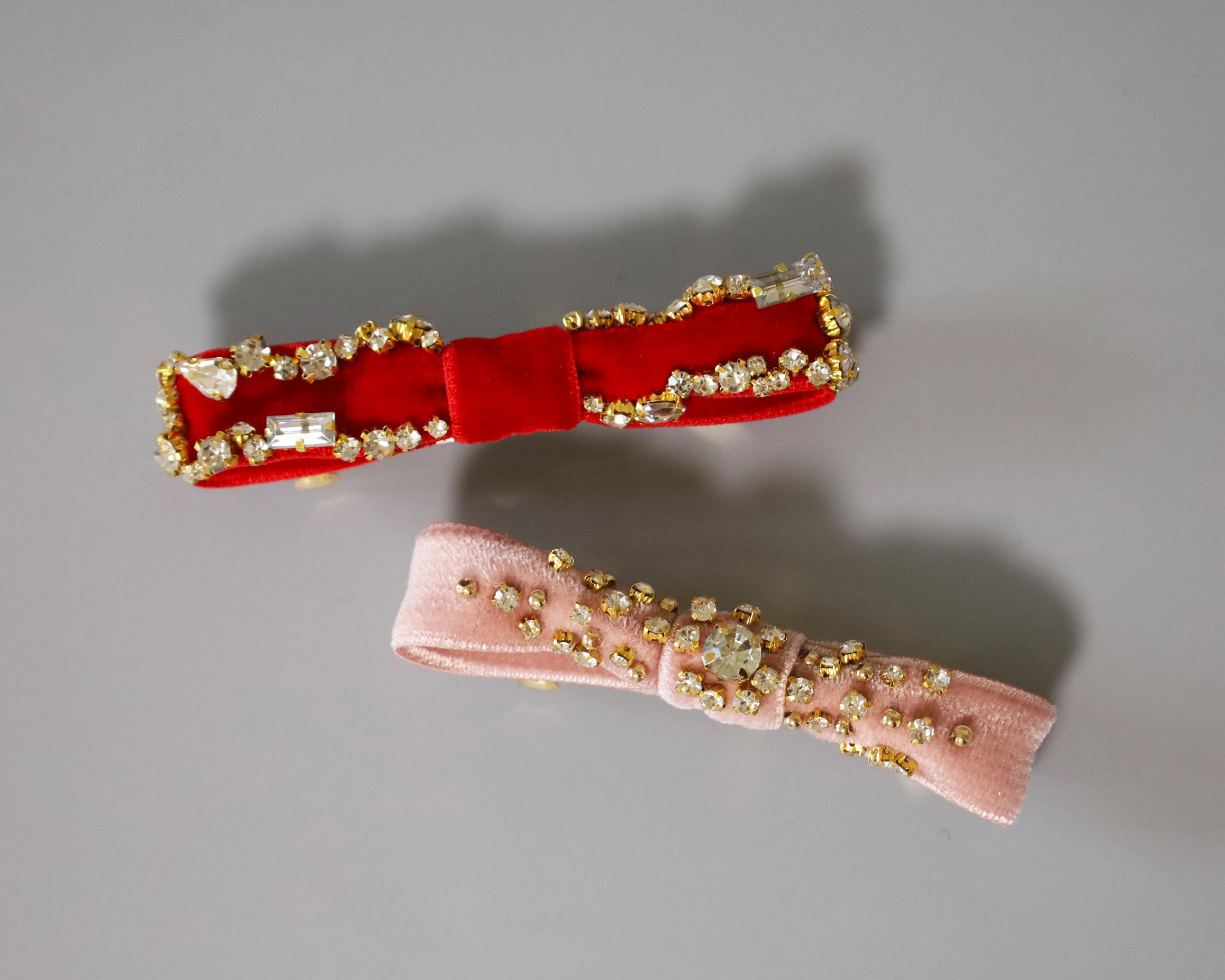 リボンを縁取るクリアビジューは、ゴールドの土台でラグジュアリーな輝き。