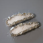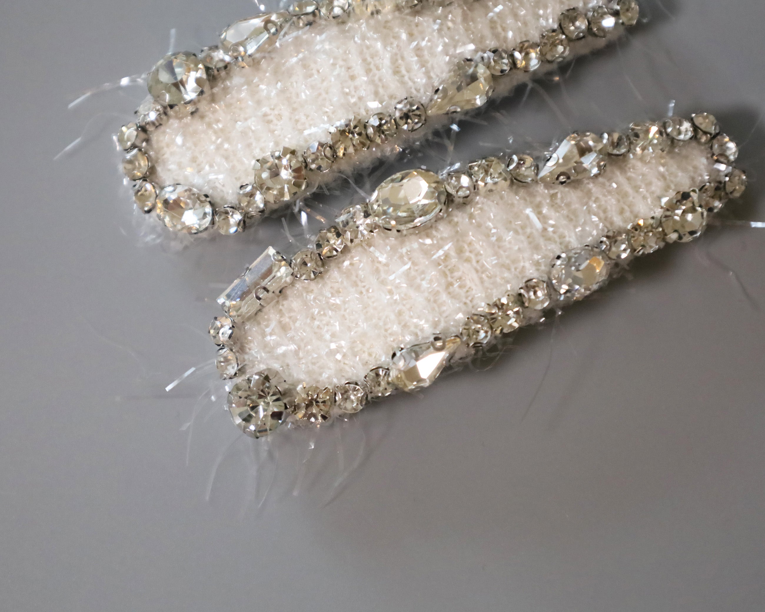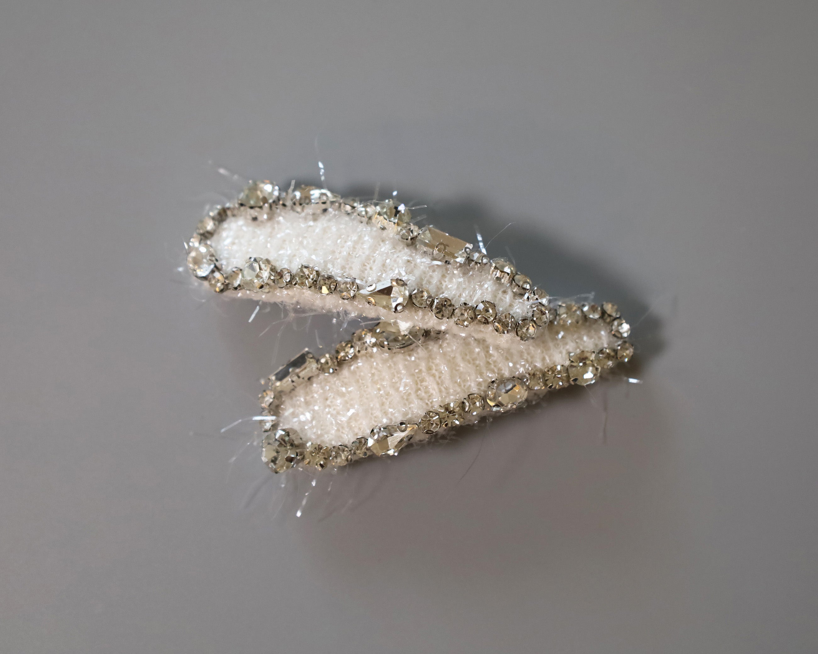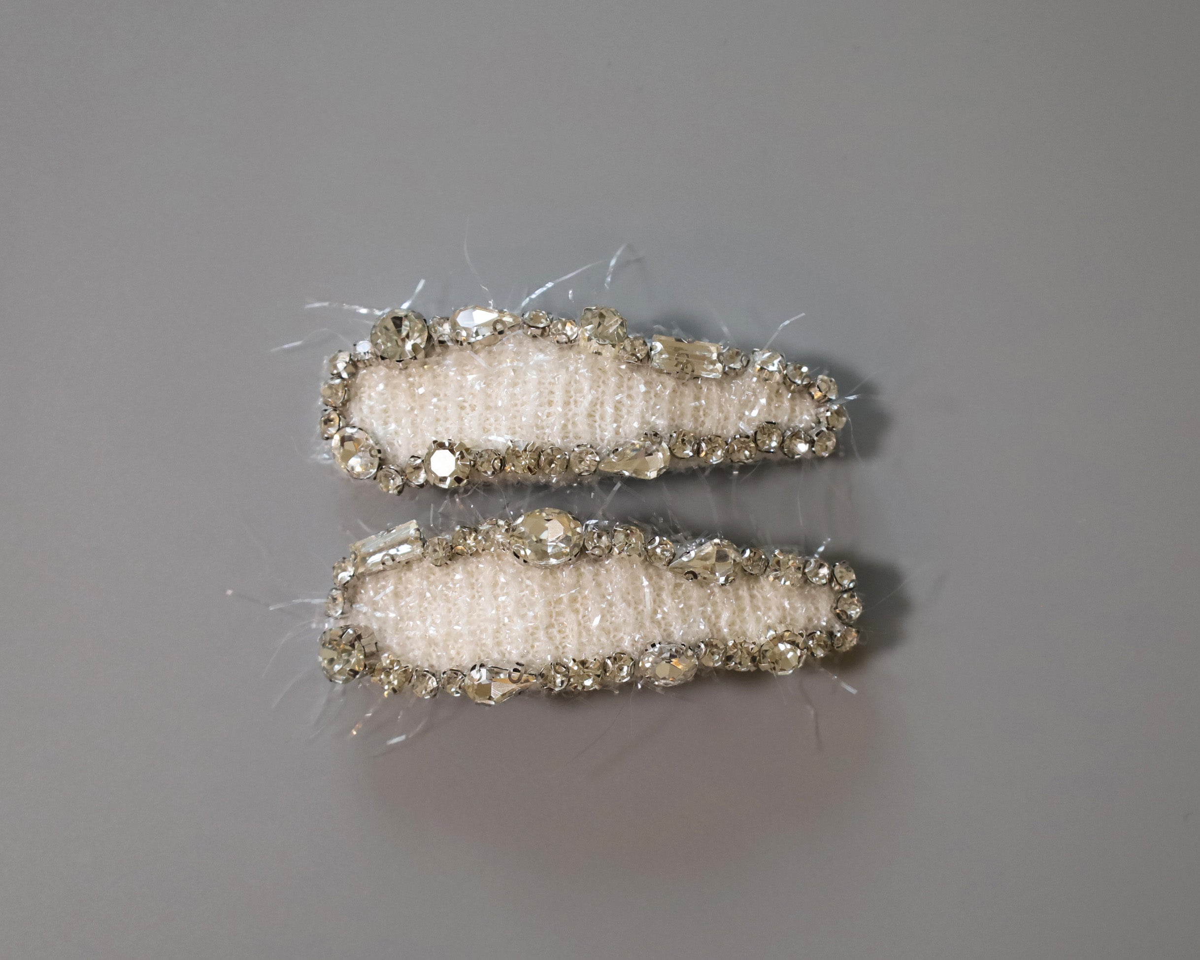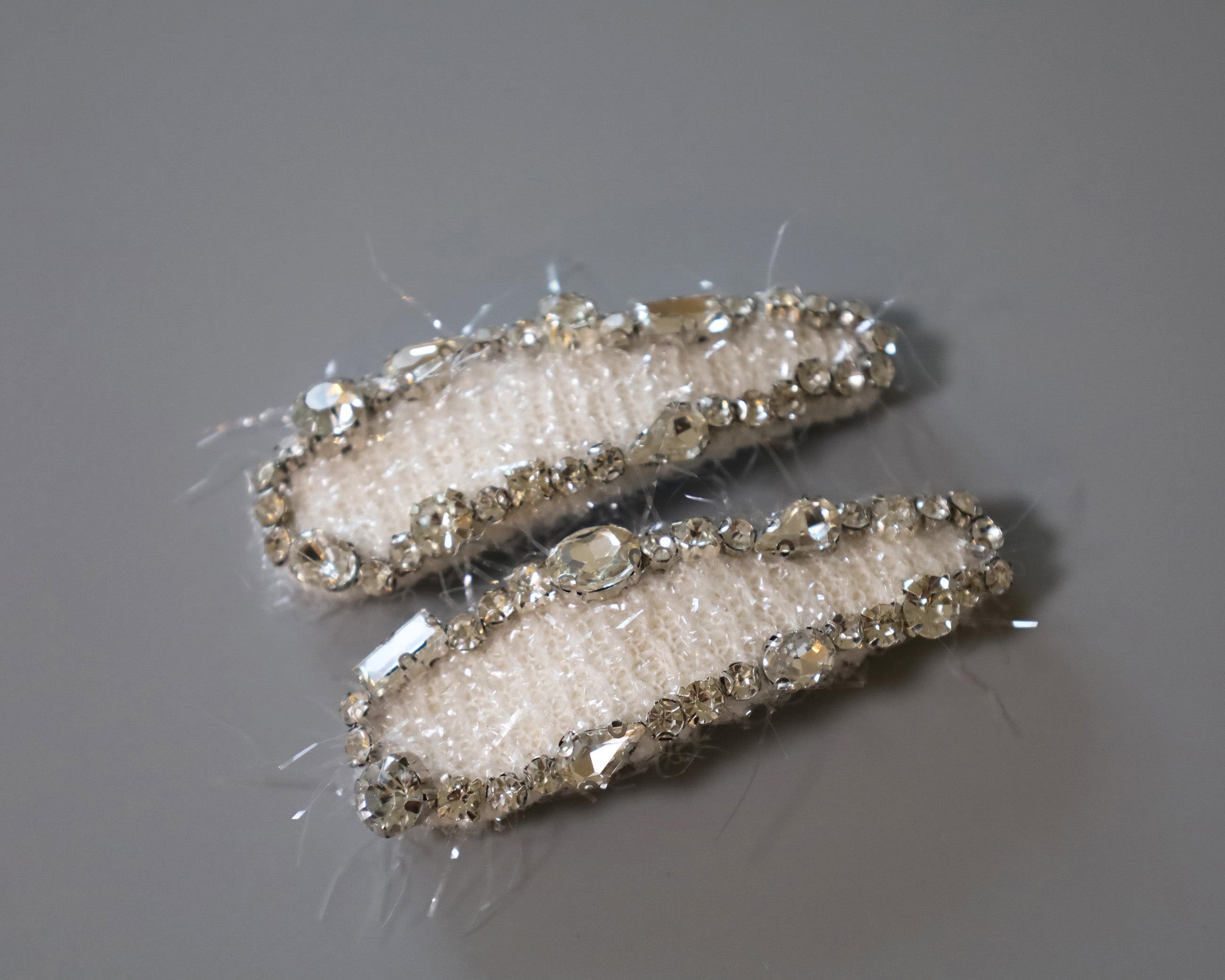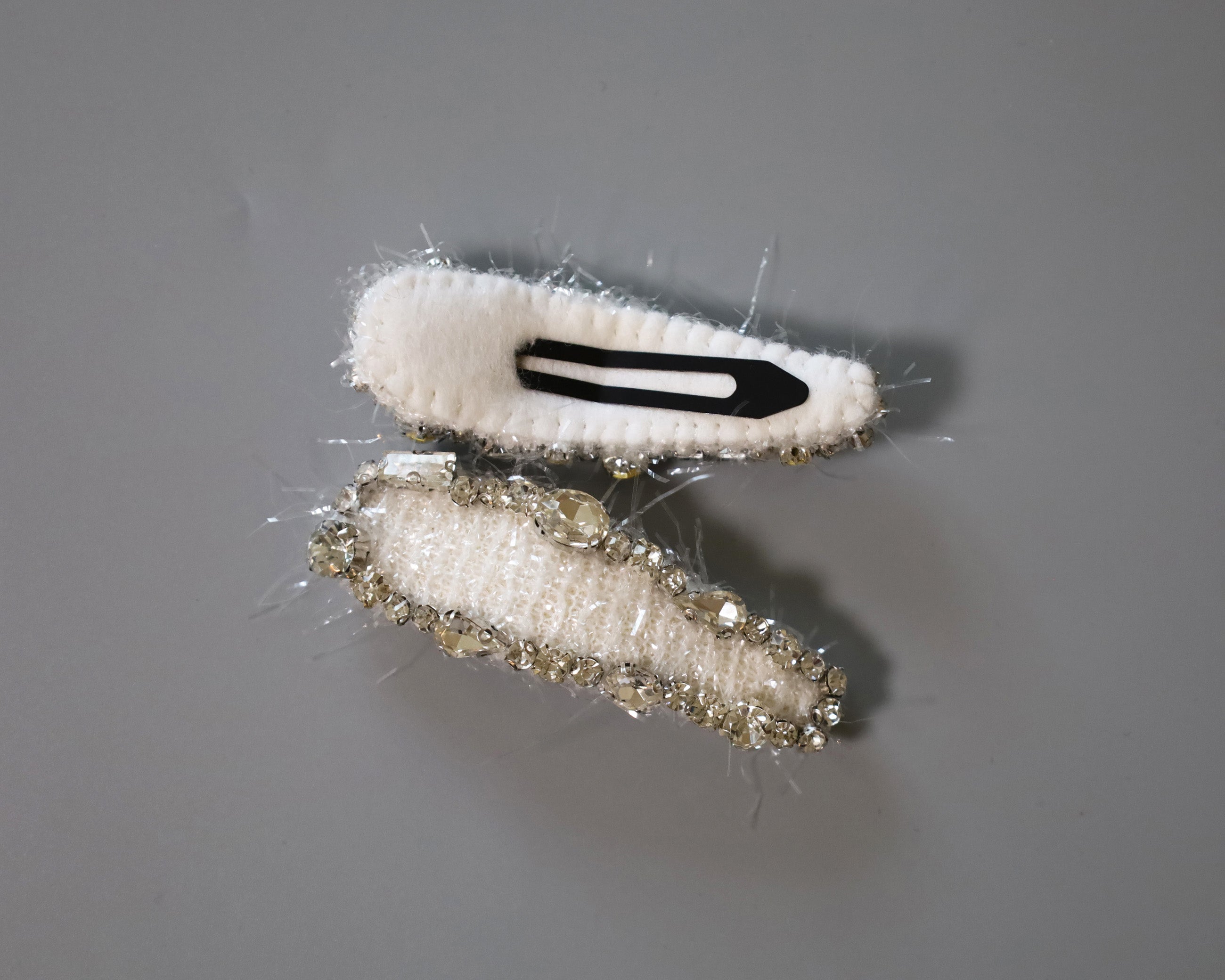 ホワイトカラーが眩しい、シャギーな質感の生地でデザインしたヘアピン。
