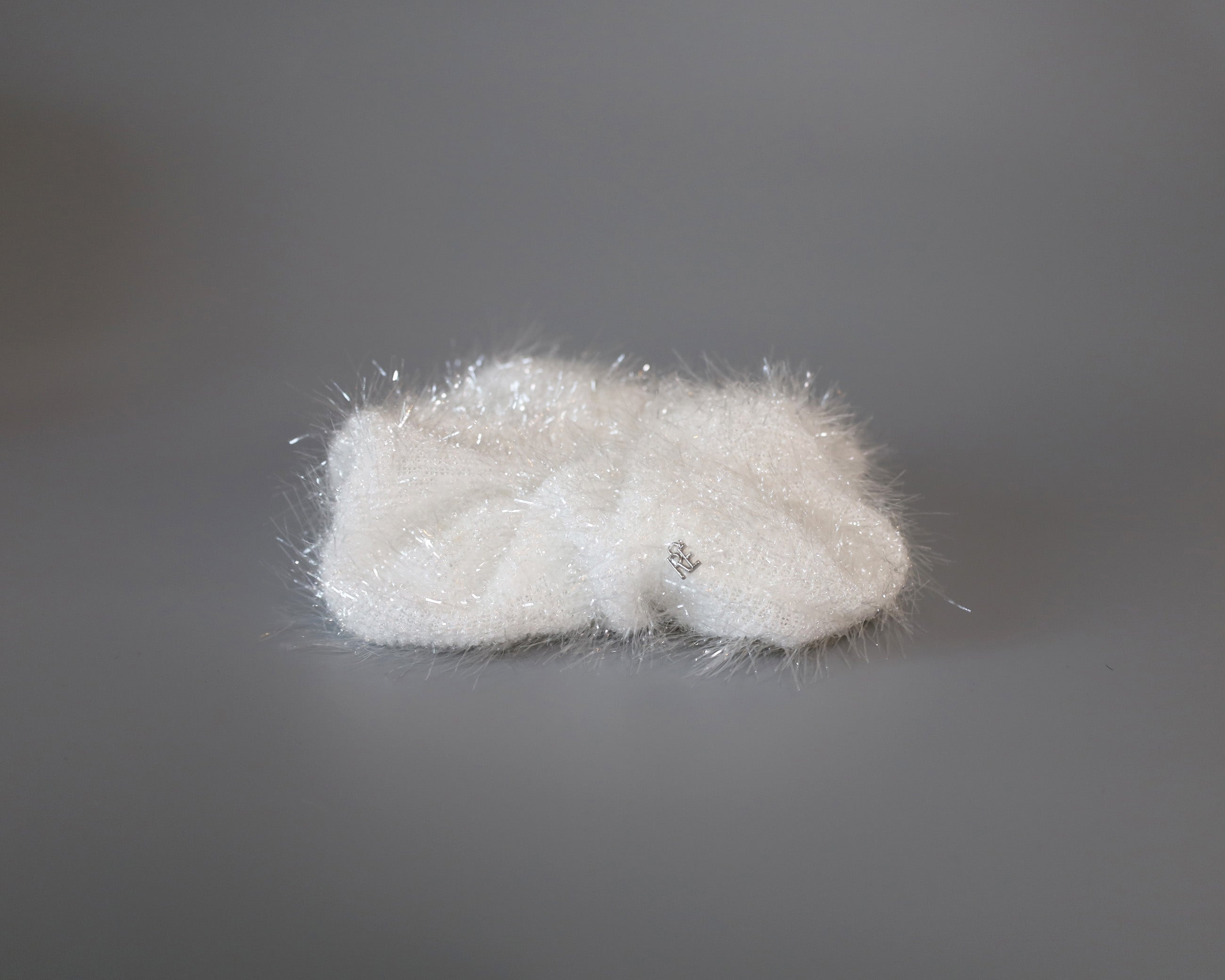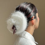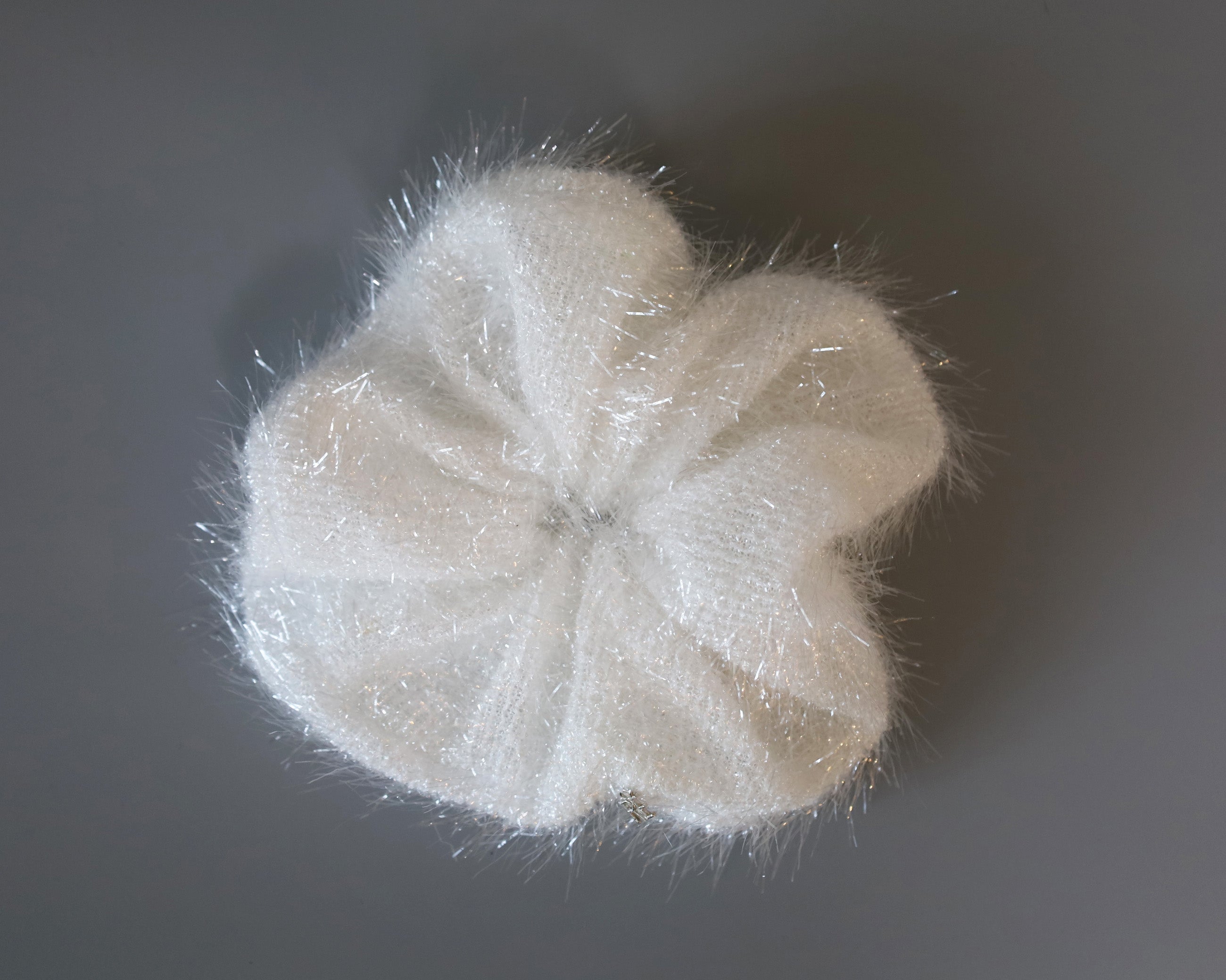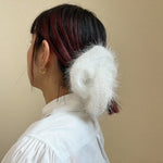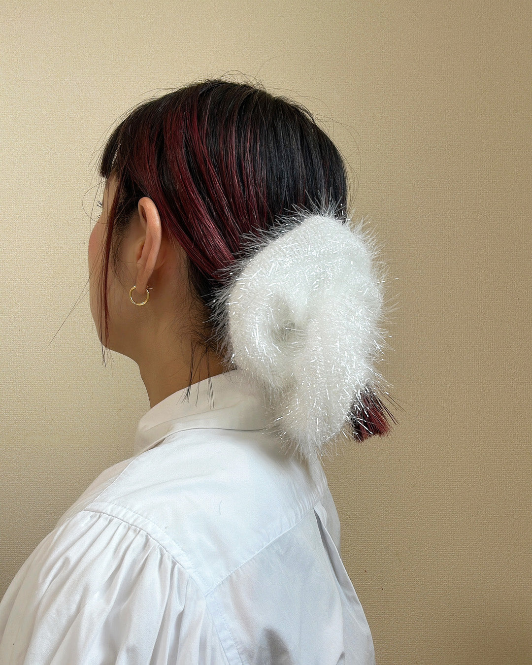 ふわふわの白猫ちゃんをそばに置いているような、ボリューミーなシュシュ。