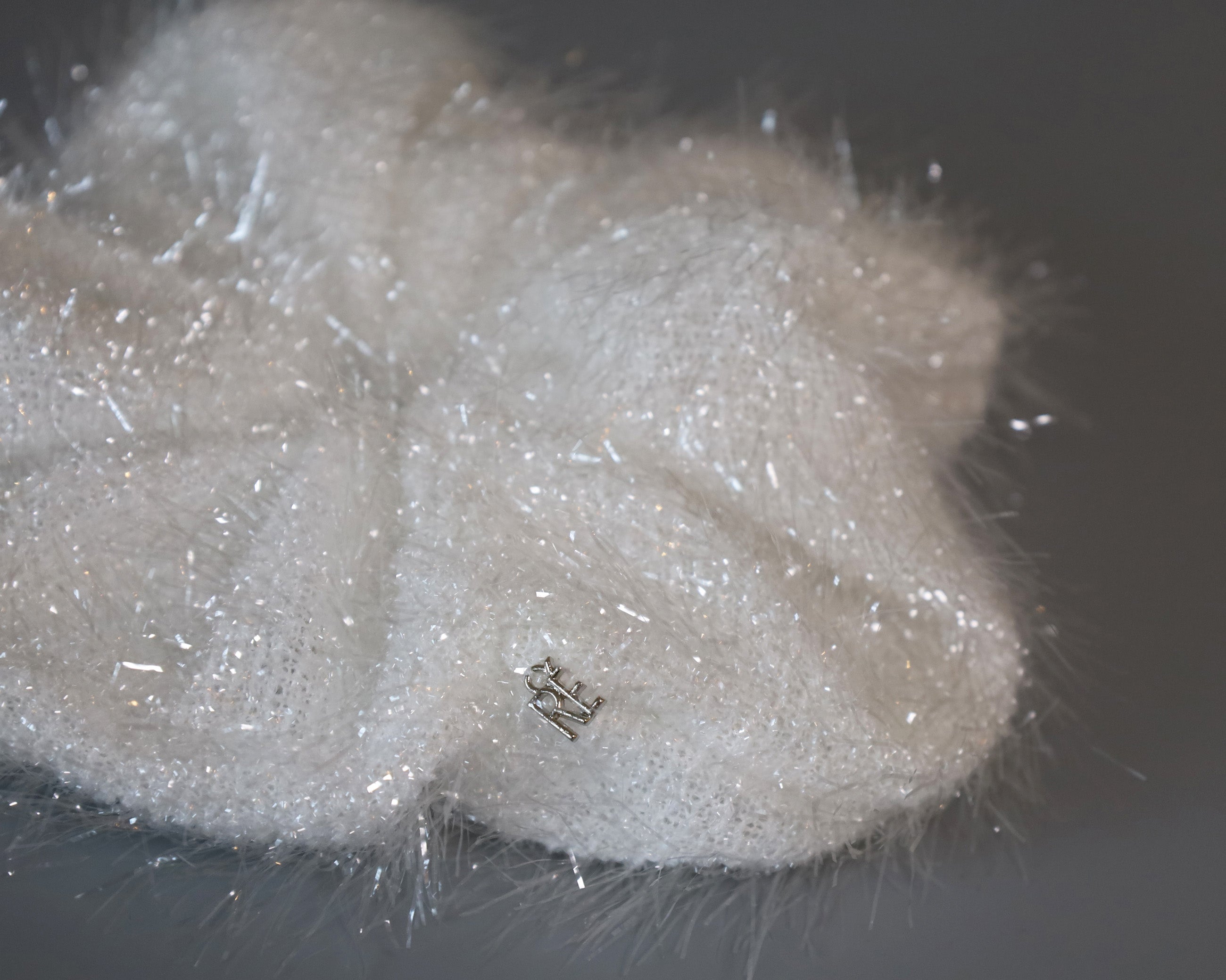 毛足の長いシャギーな質感の生地が光を受けて、チラチラときらめくのがキュートなデザインです。