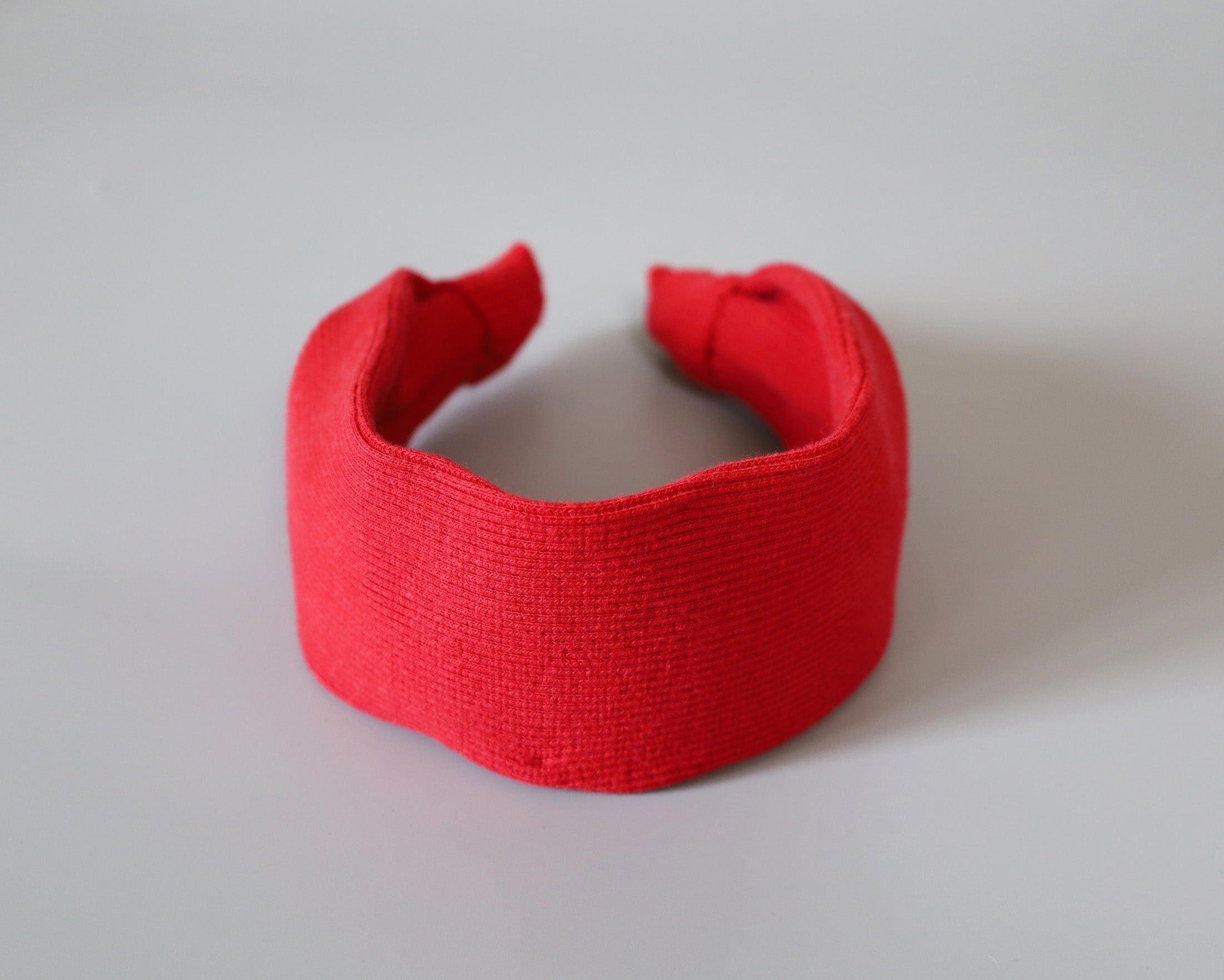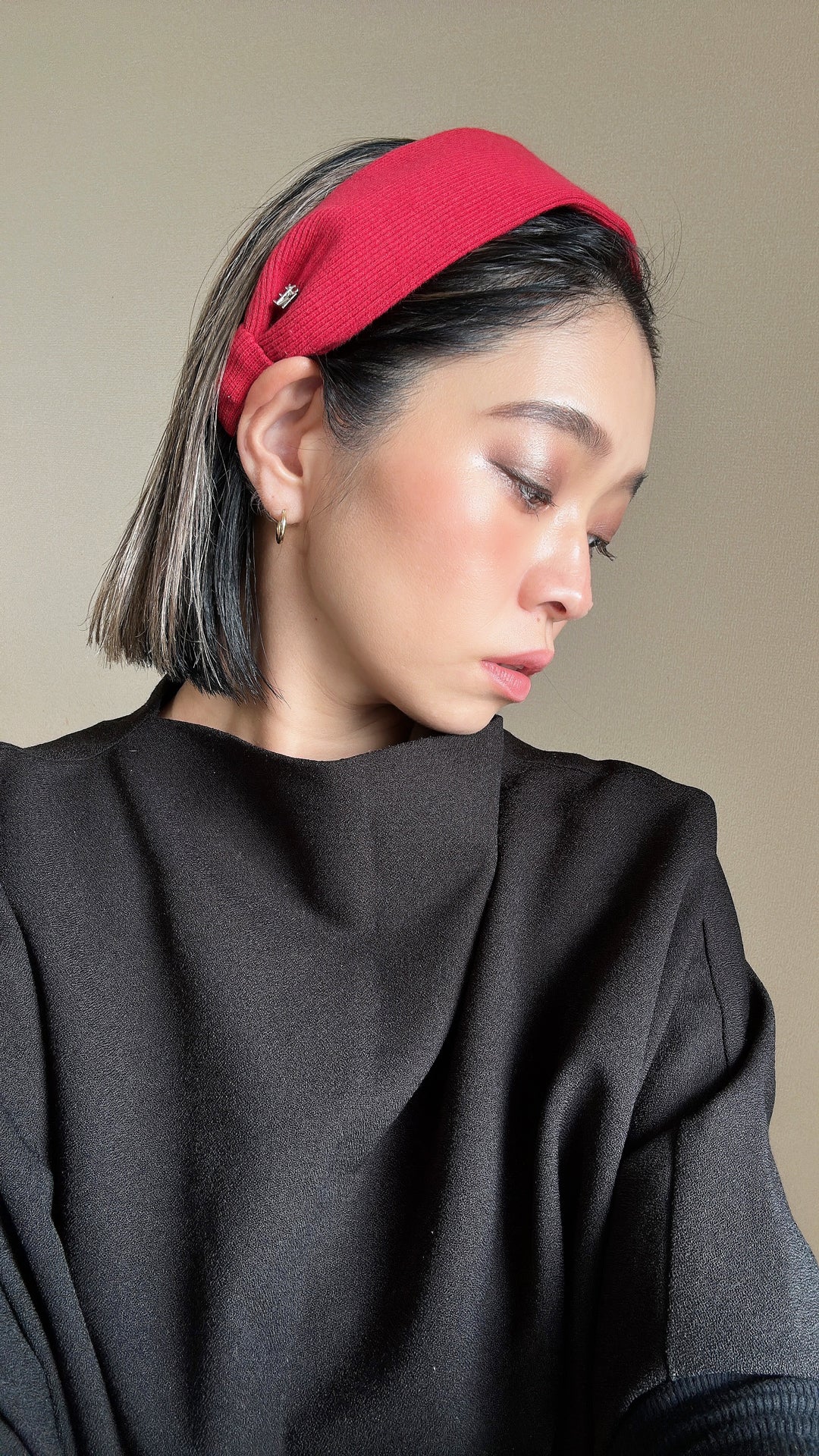 周囲の視線を惹きつけるリブニットカチューシャ。