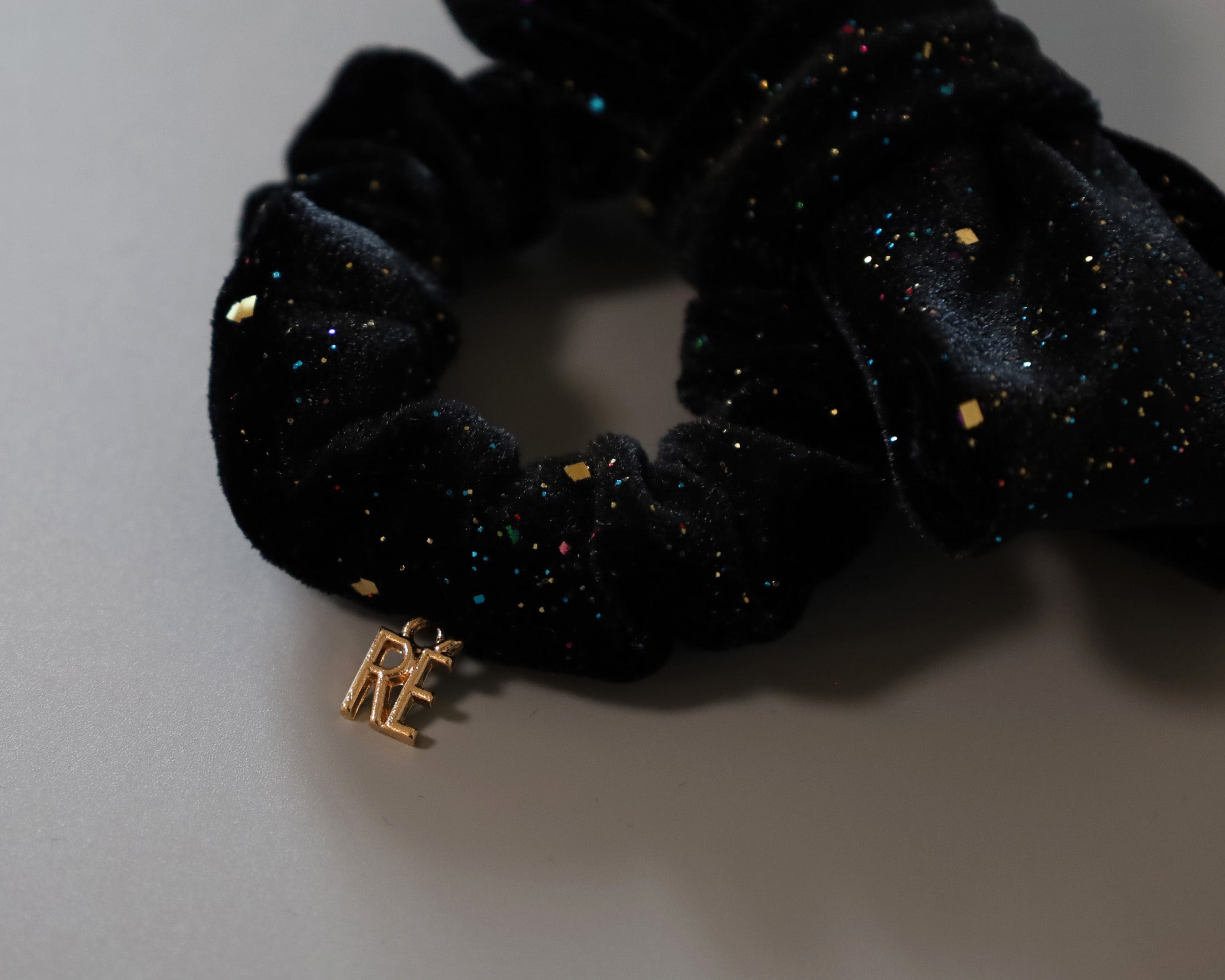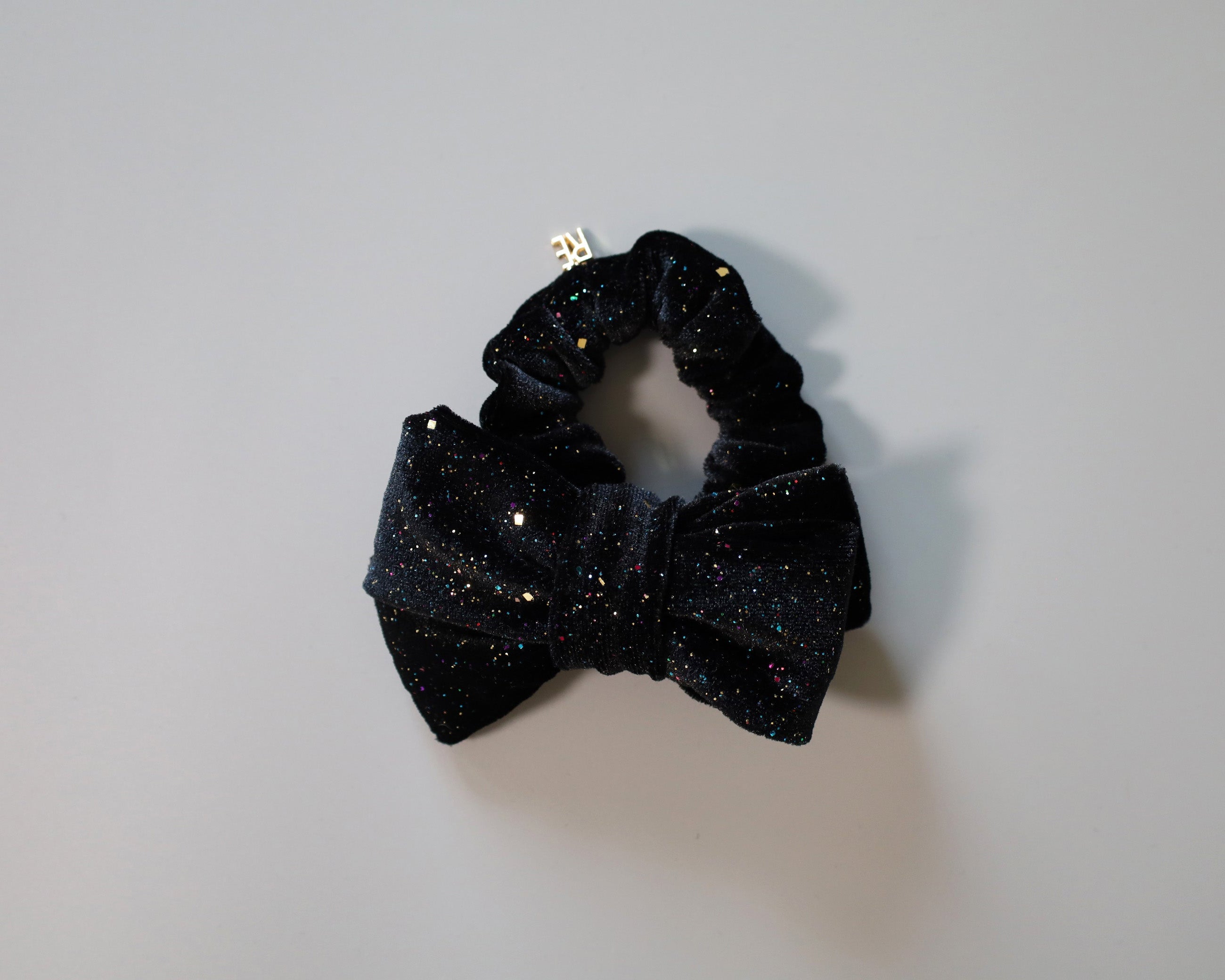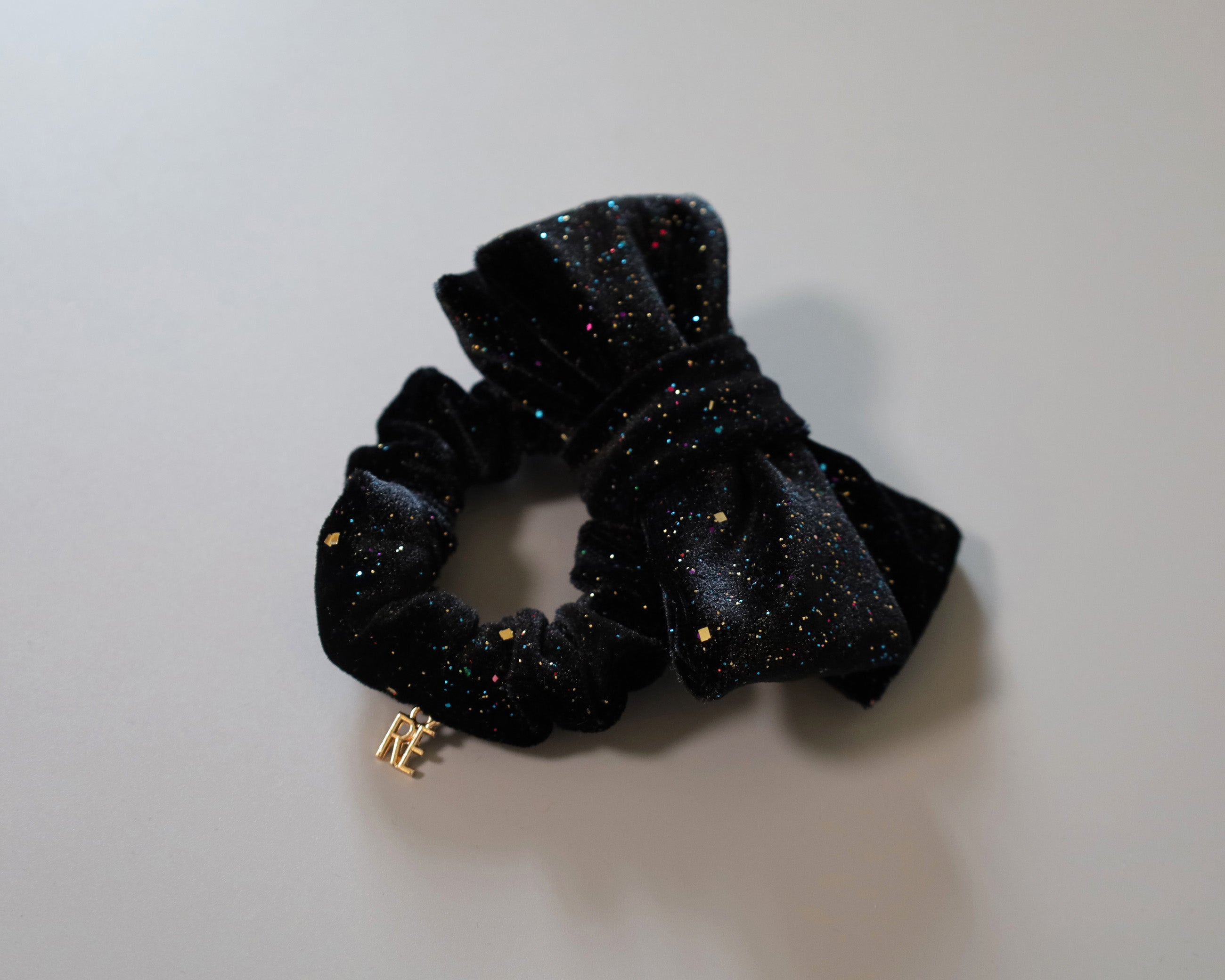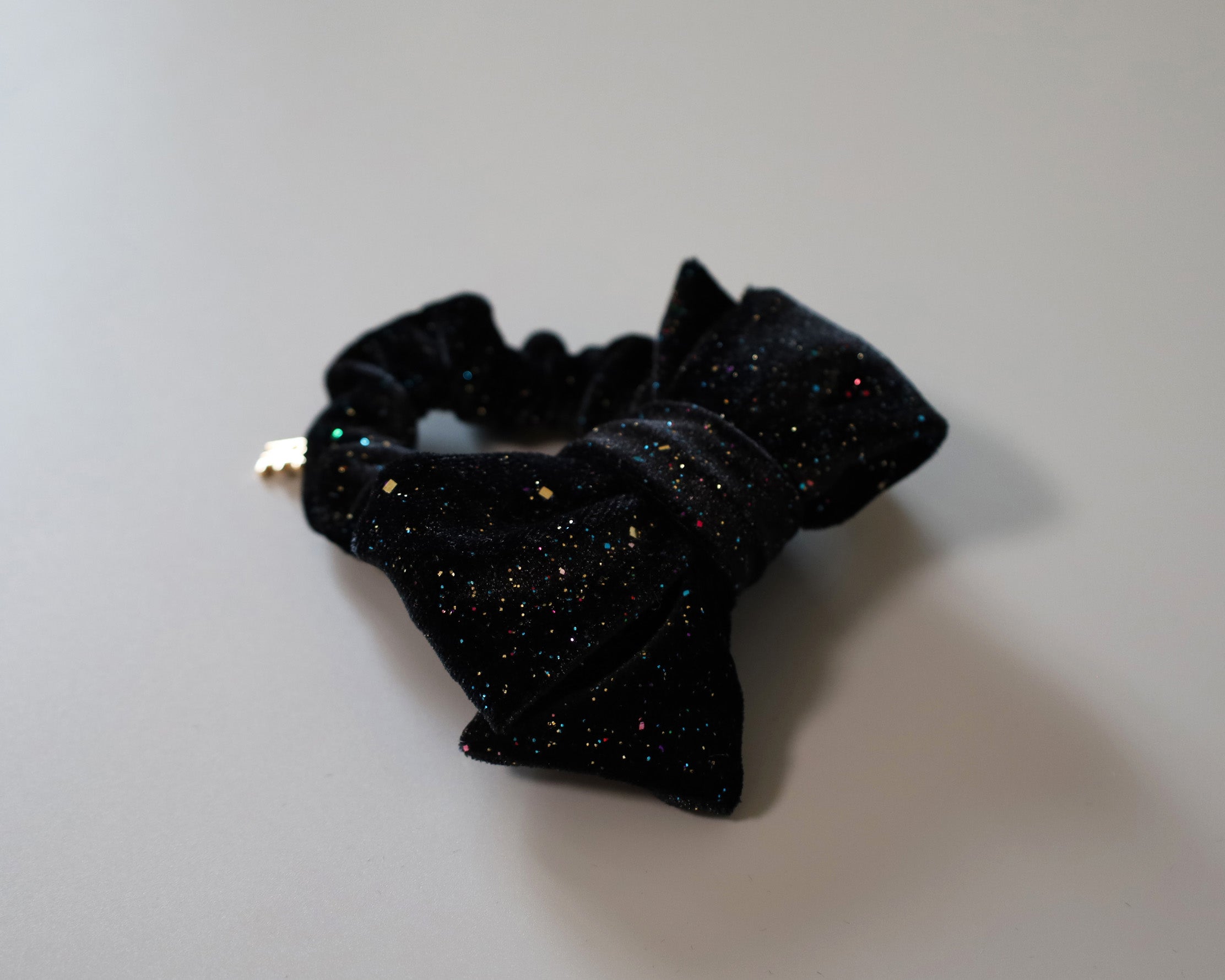 星空をぎゅっと閉じ込めたような、ラメがきらめくロマンティックなヘアポニー。