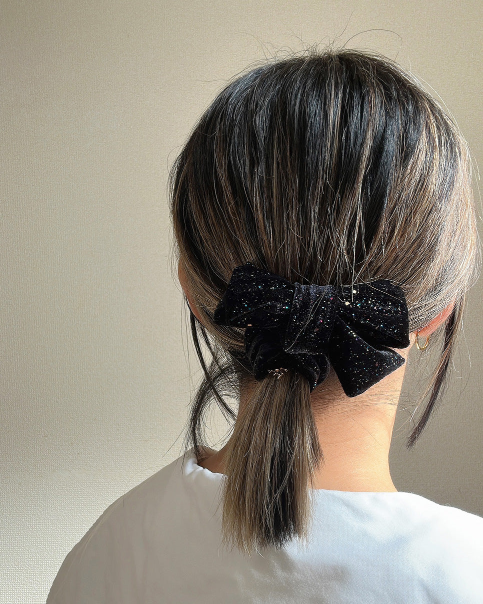 ロングでも短めのちびポニーもひと匙のアクセントを加えてくれます。