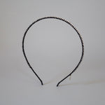 極細のブラックのボディにクリアビジューを直線的に並べたカチューシャ。