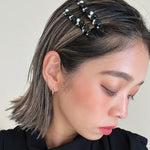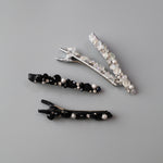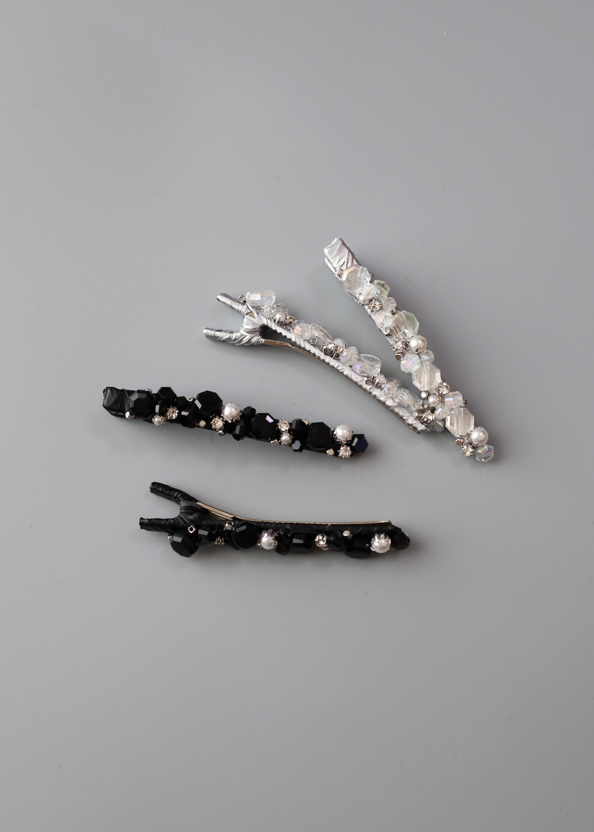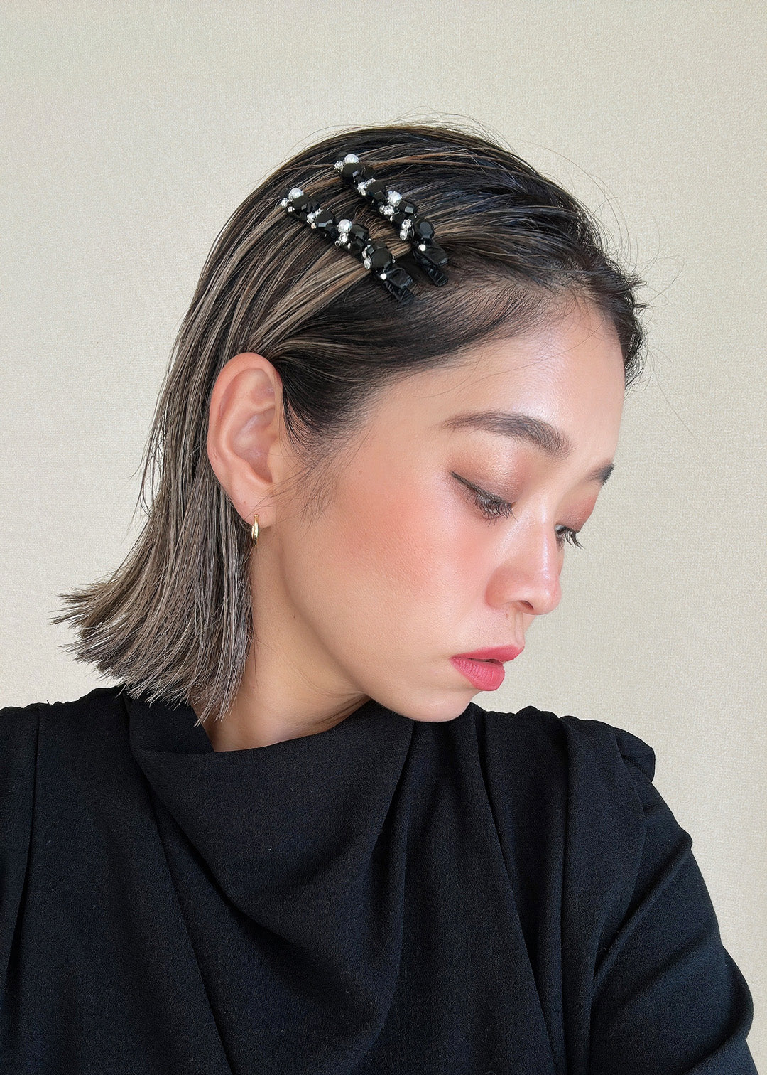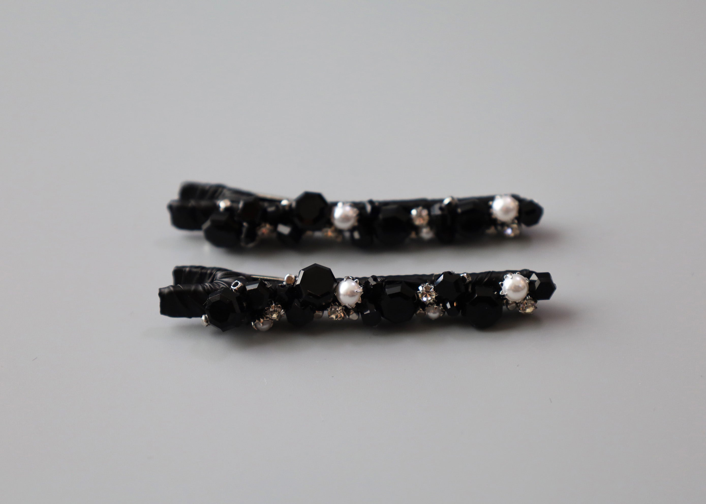 モノトーンカラーが大人っぽい、モードなキラキラヘアピン。