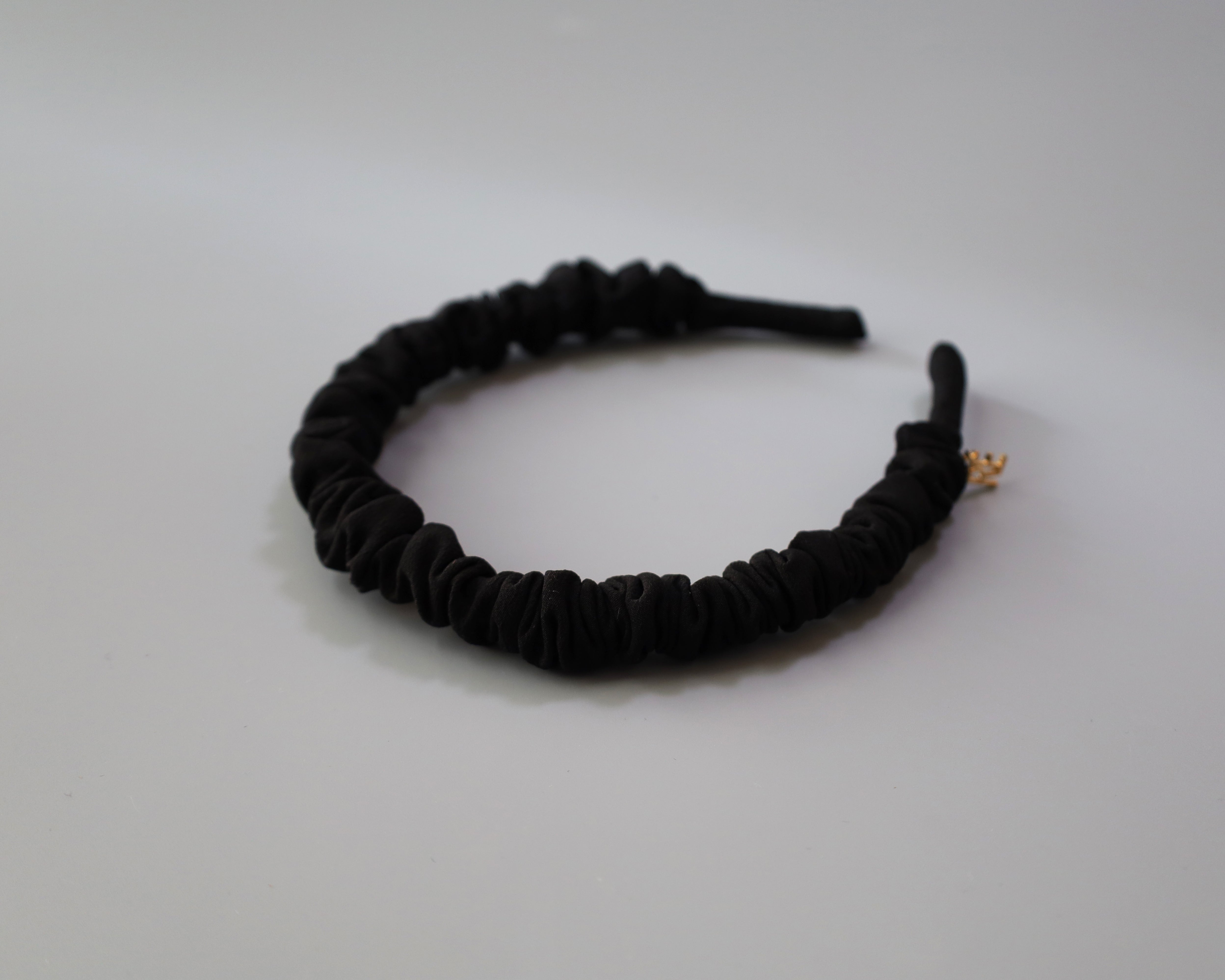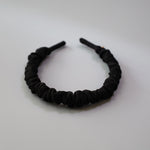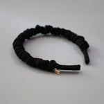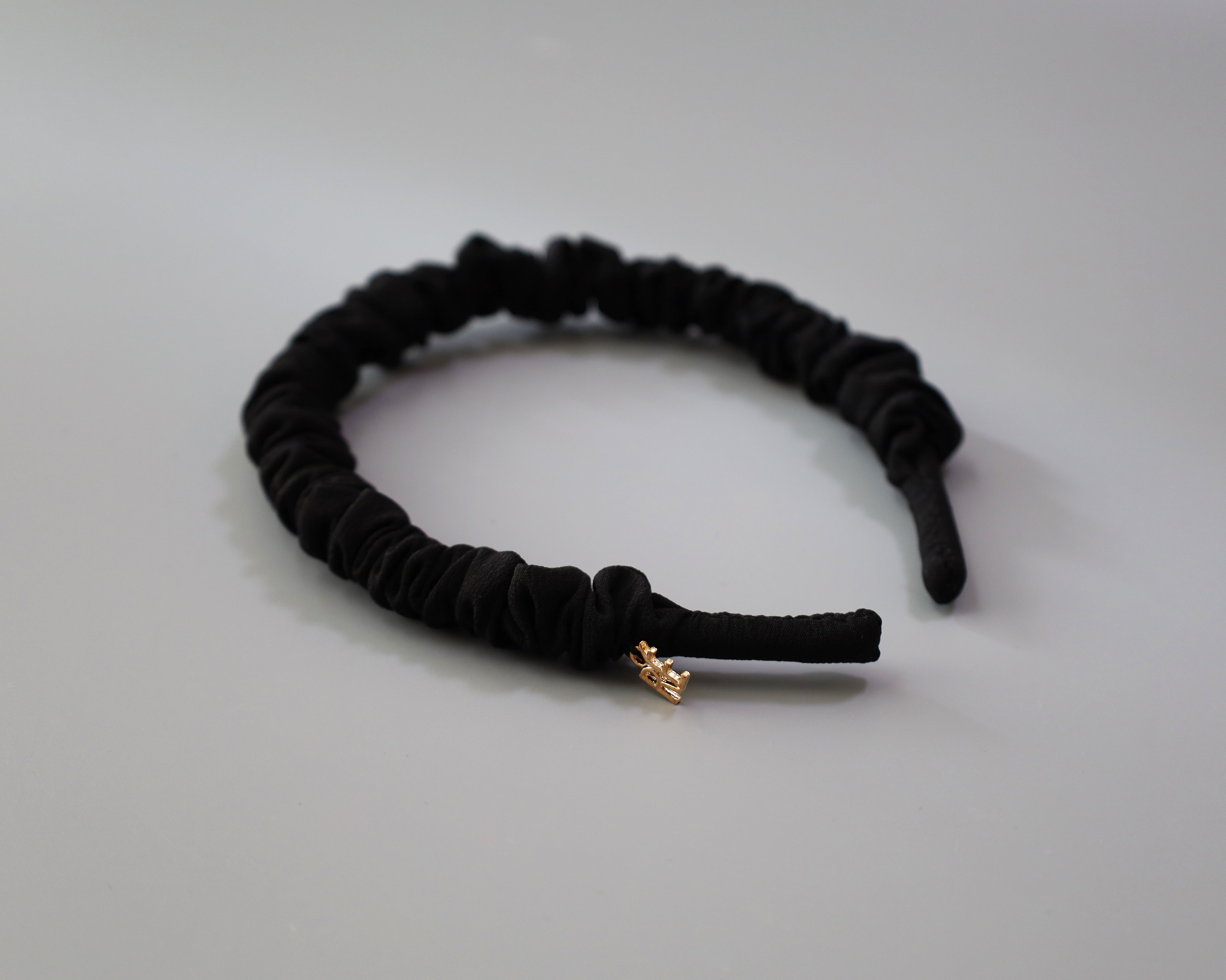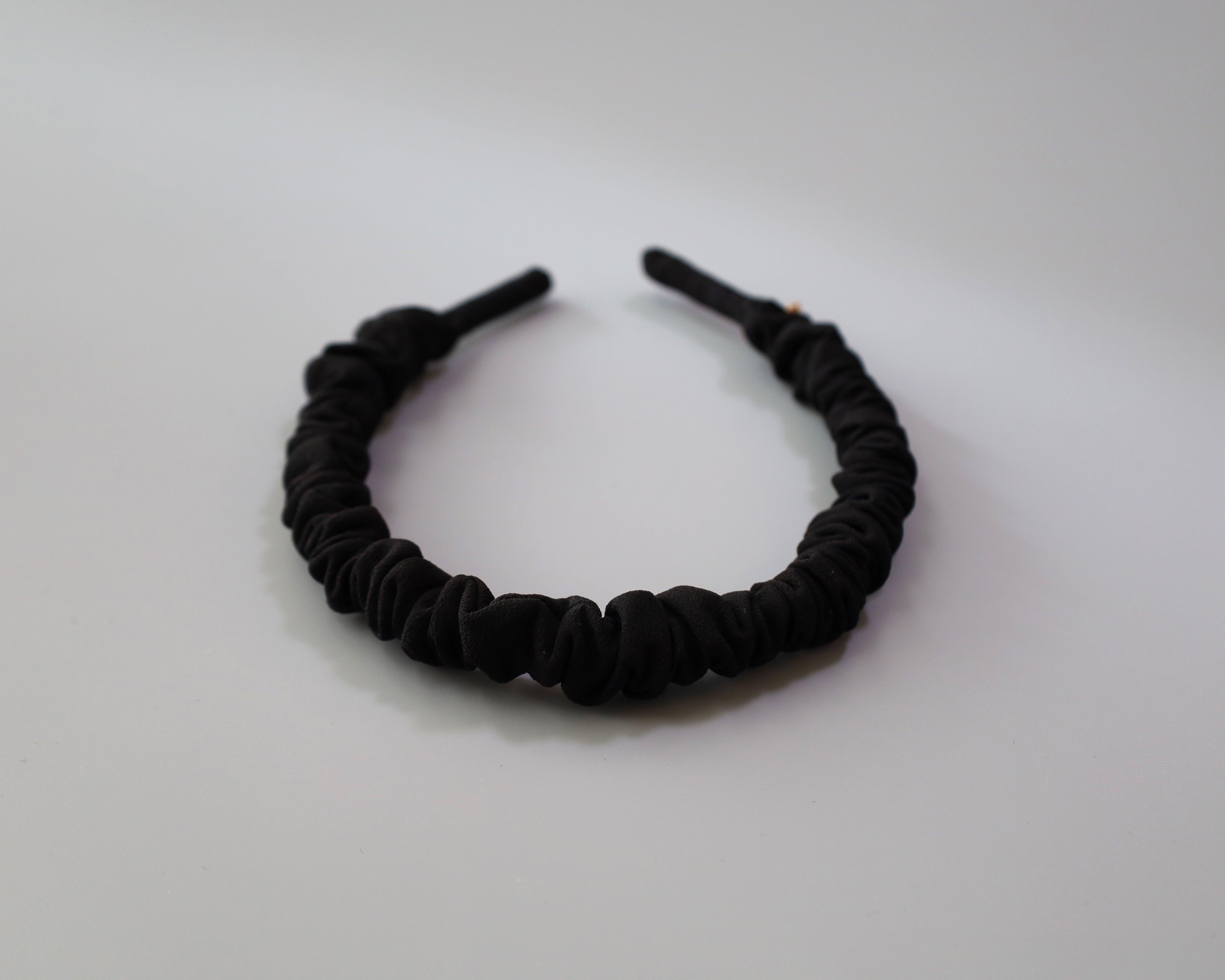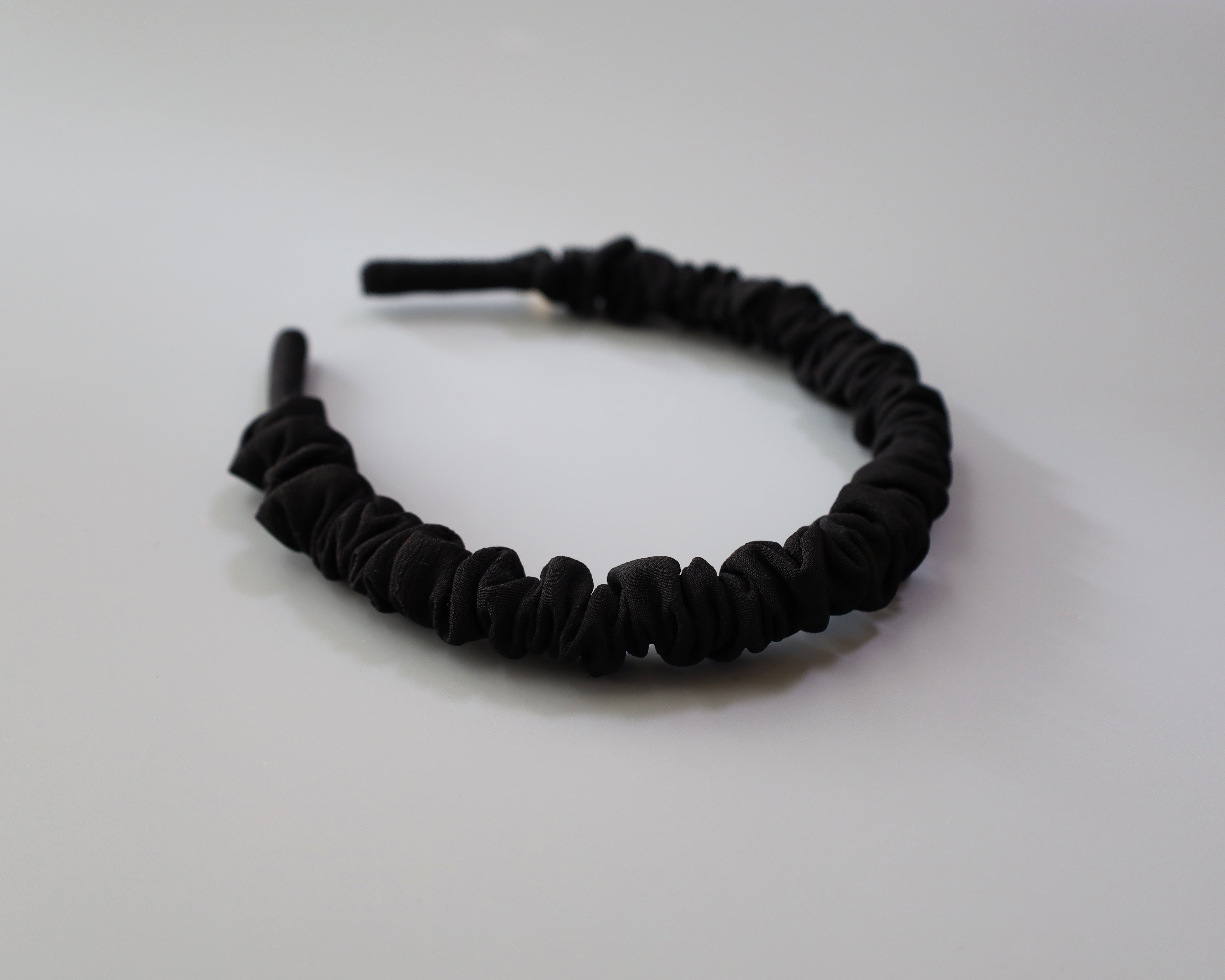 ブラックのシルク生地をたっぷりと使って仕立て上げたギャザーカチューシャ。