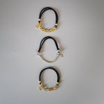 ゴールドカラーのチェーンを組み合わせた、普通のヘアゴムから一線を画すアイテム。