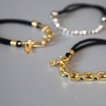 黒ゴムの上にちょうどチェーンが乗るように仕上げると、普通っぽいのになんだかおしゃれな目が離せない人に。