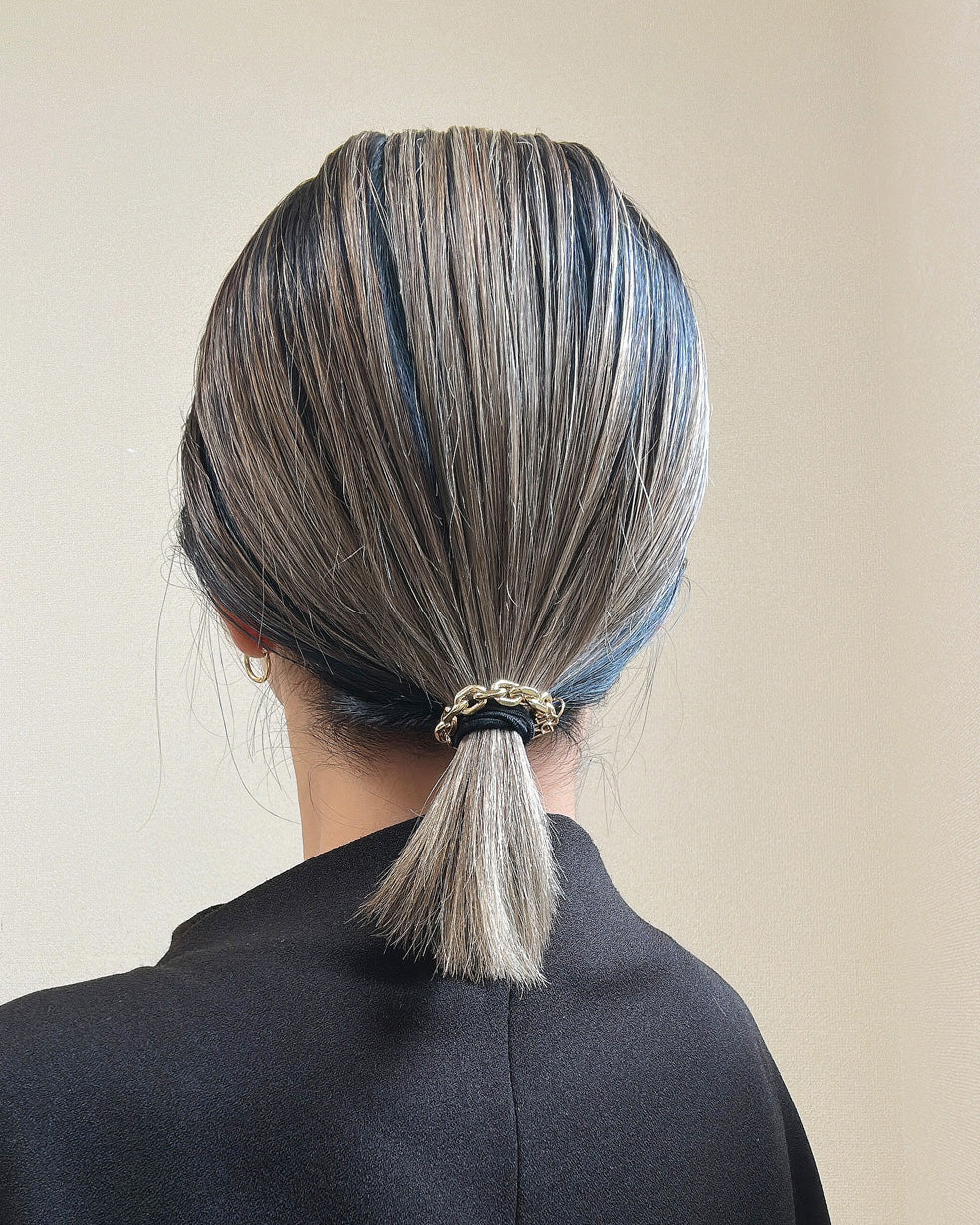 さりげない垢抜けを作るこのヘアゴムには、なんてことのないポニーテールやシニヨンを合わせるのがおすすめです。