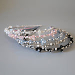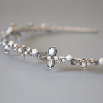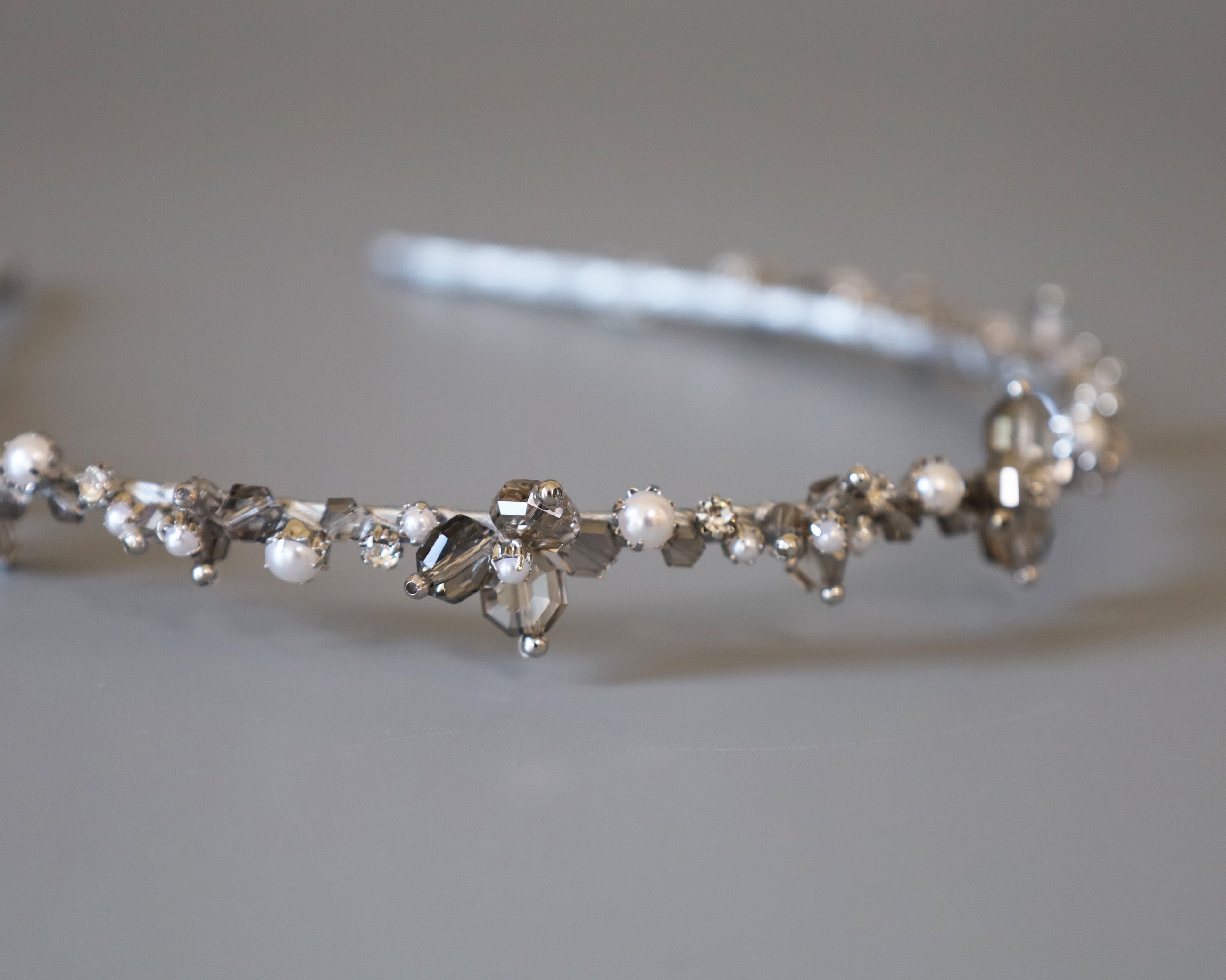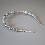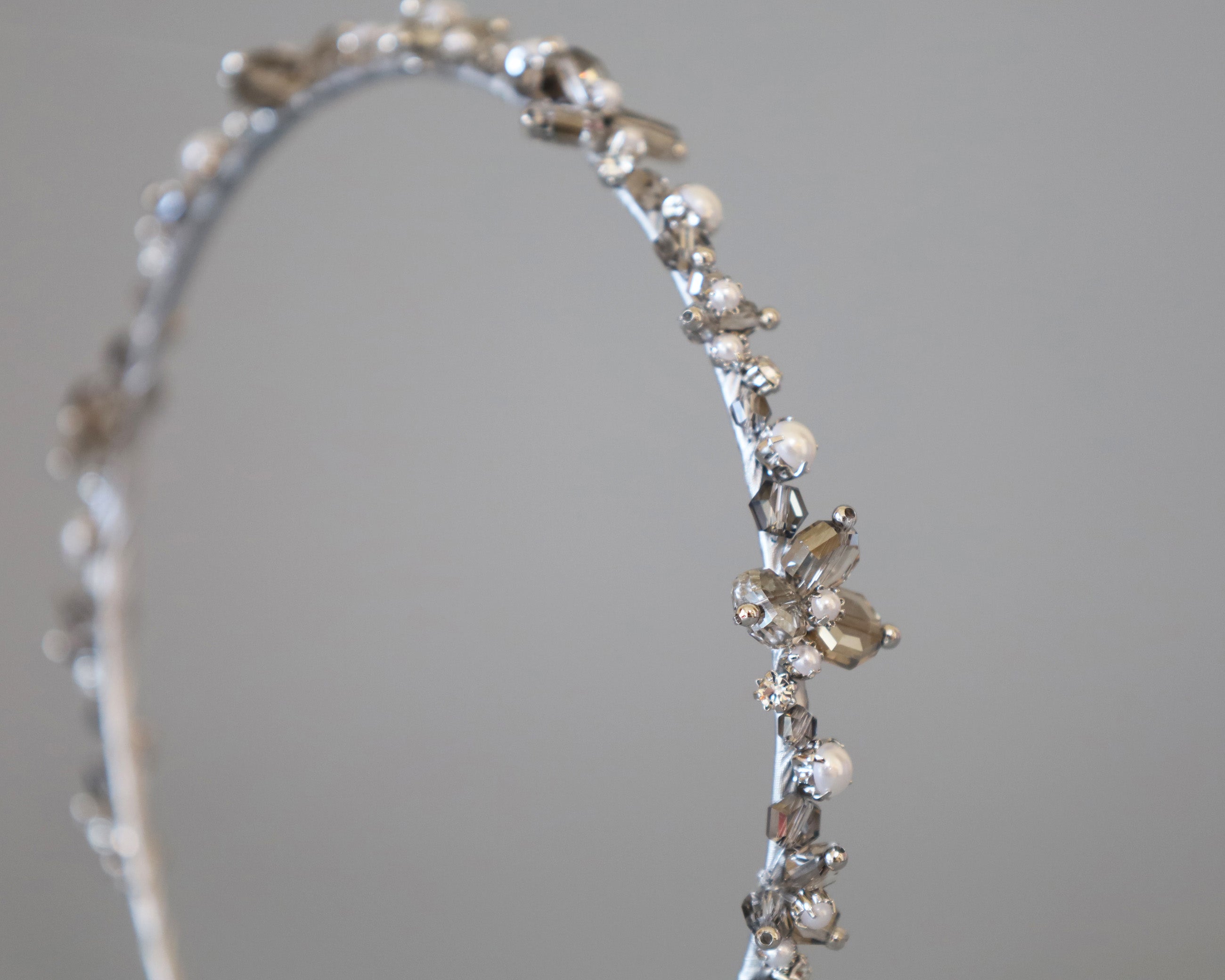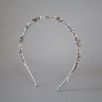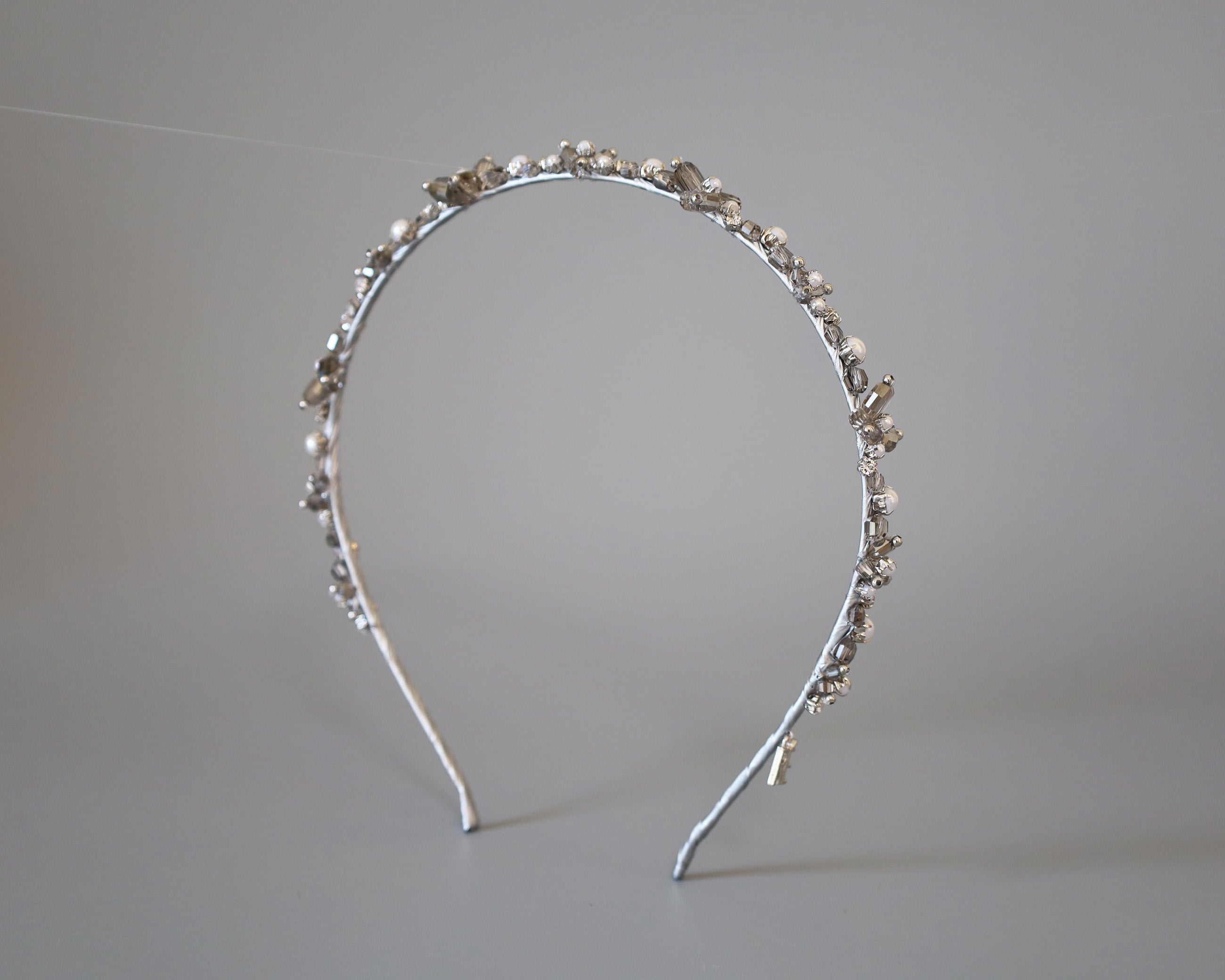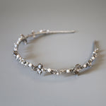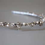 繊細なシルバーとパールのビーズが連なる、光の輪のようなカチューシャ。