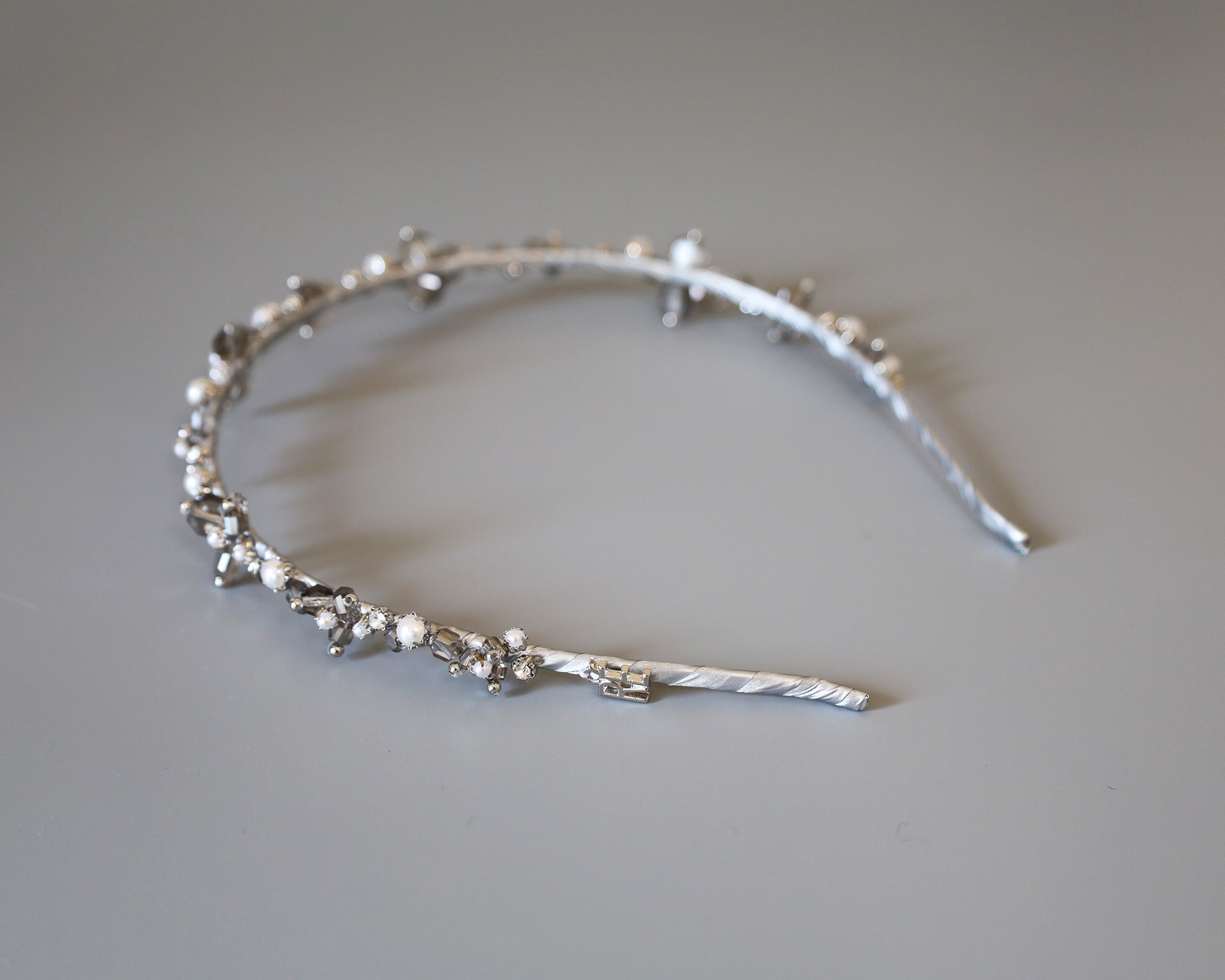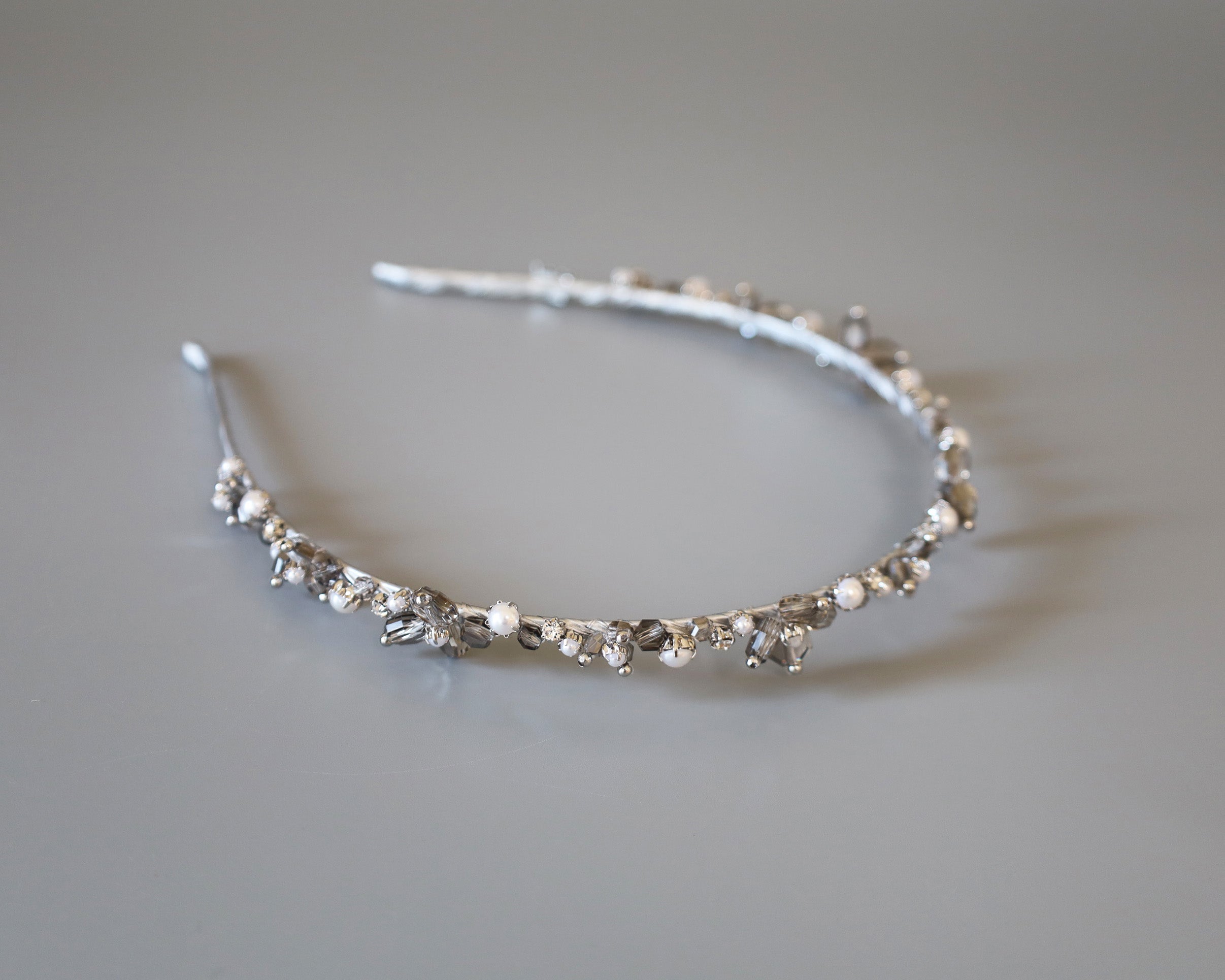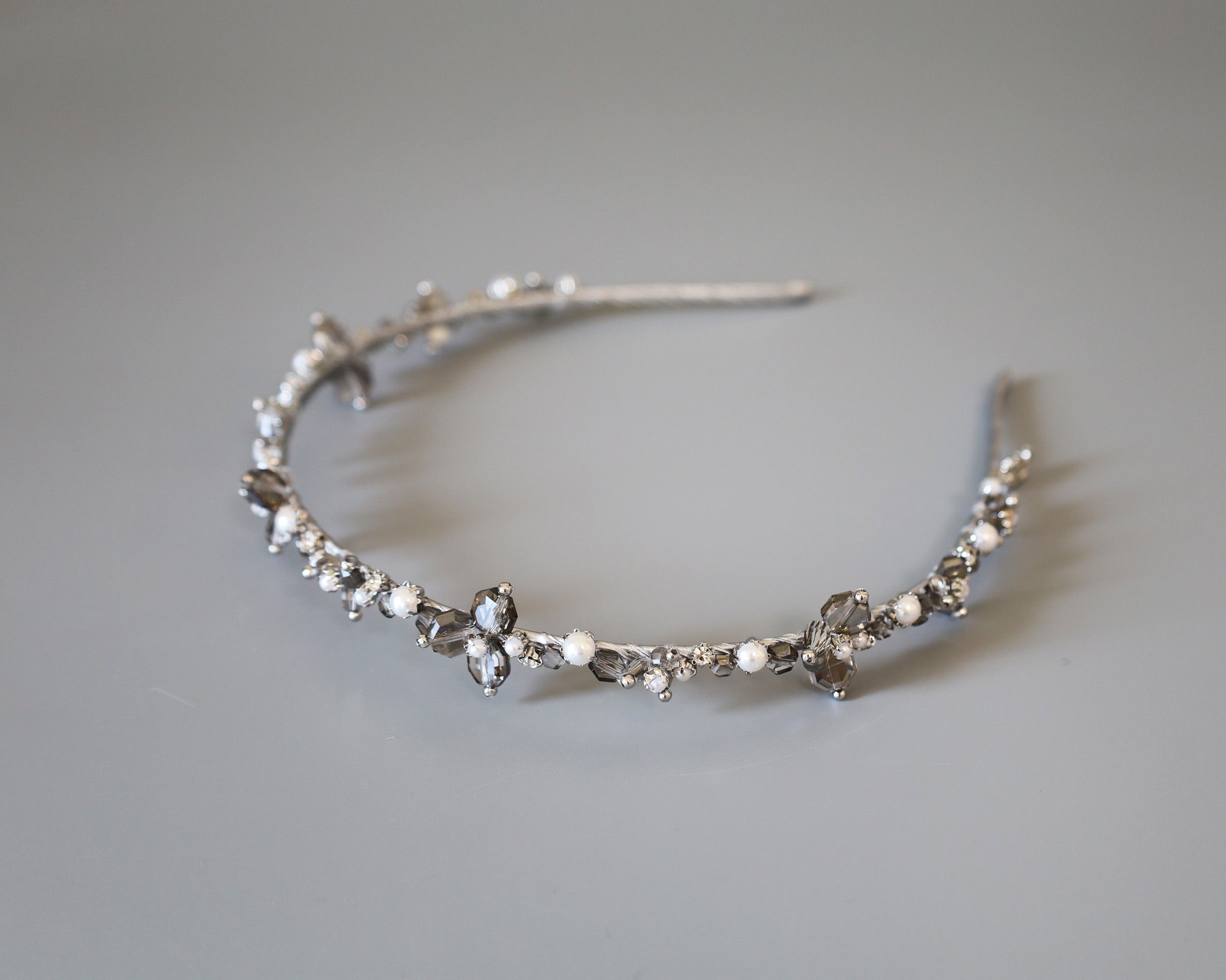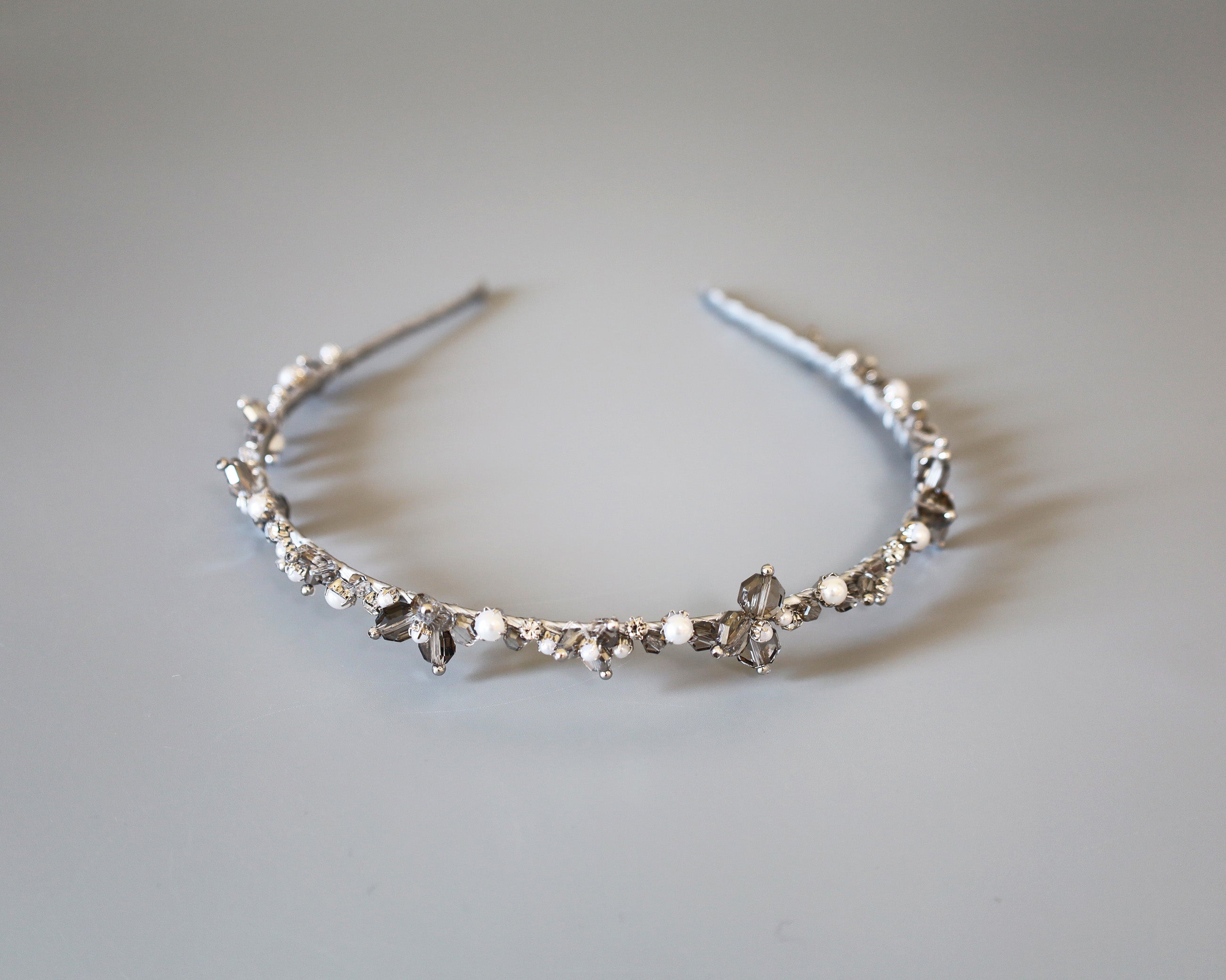 カチューシャのラインが極細だから、ビジューが引き立ちます。