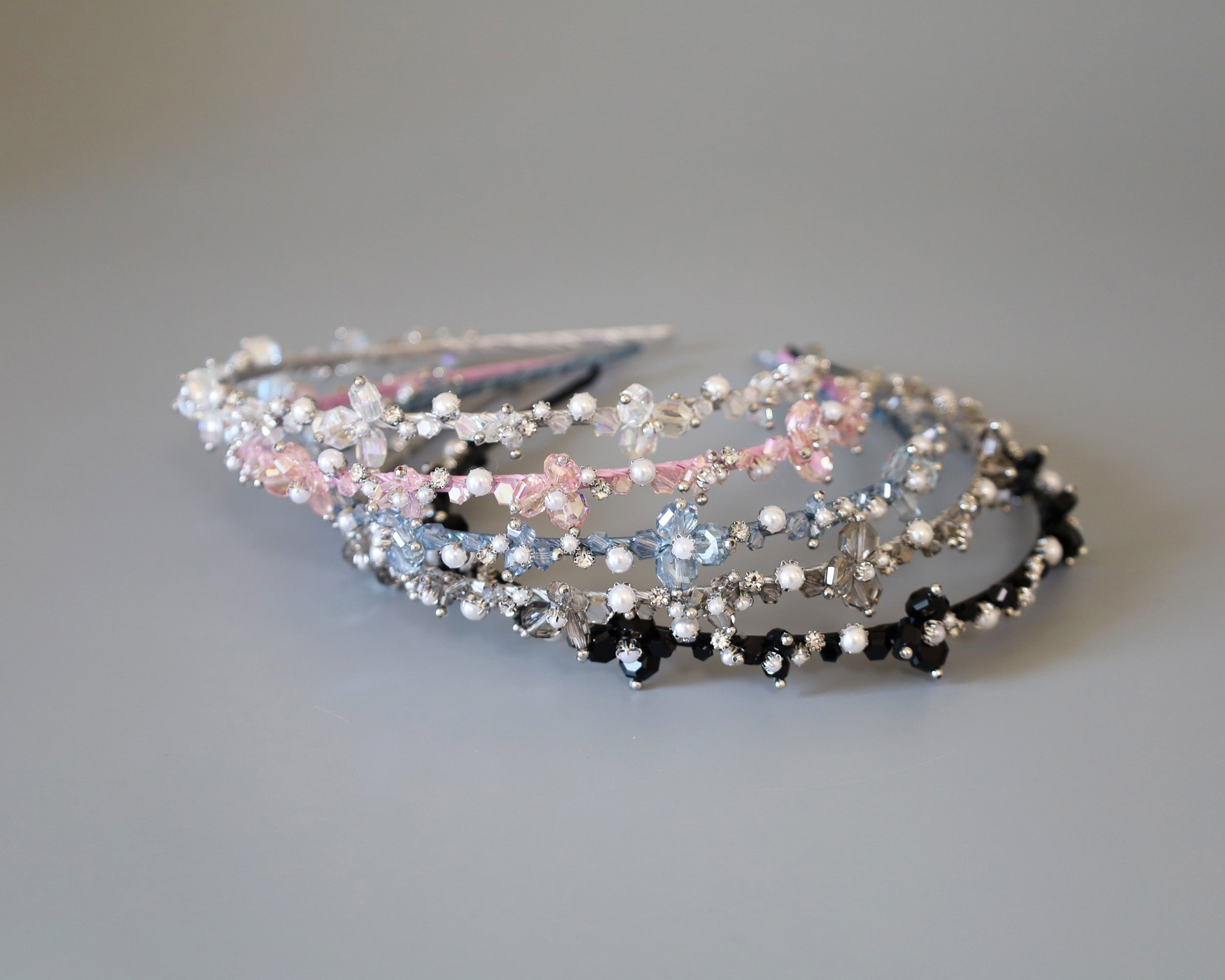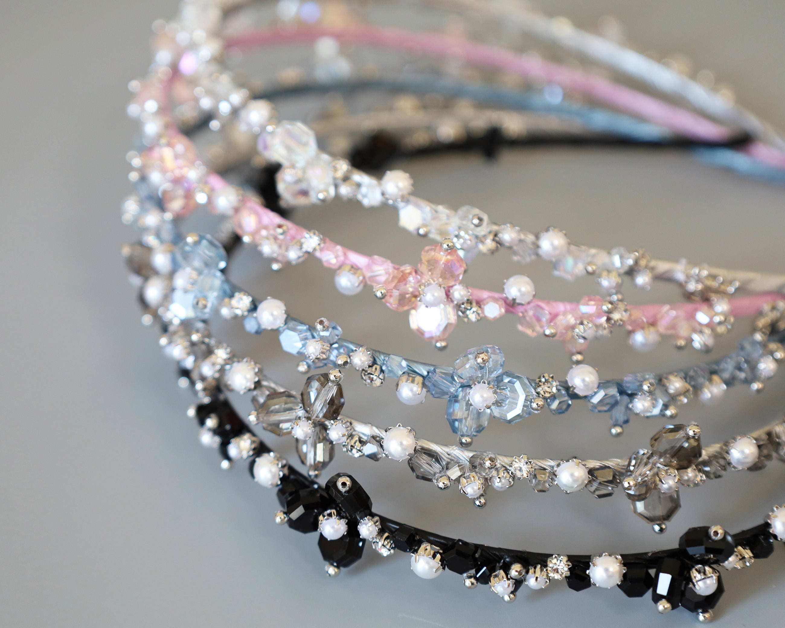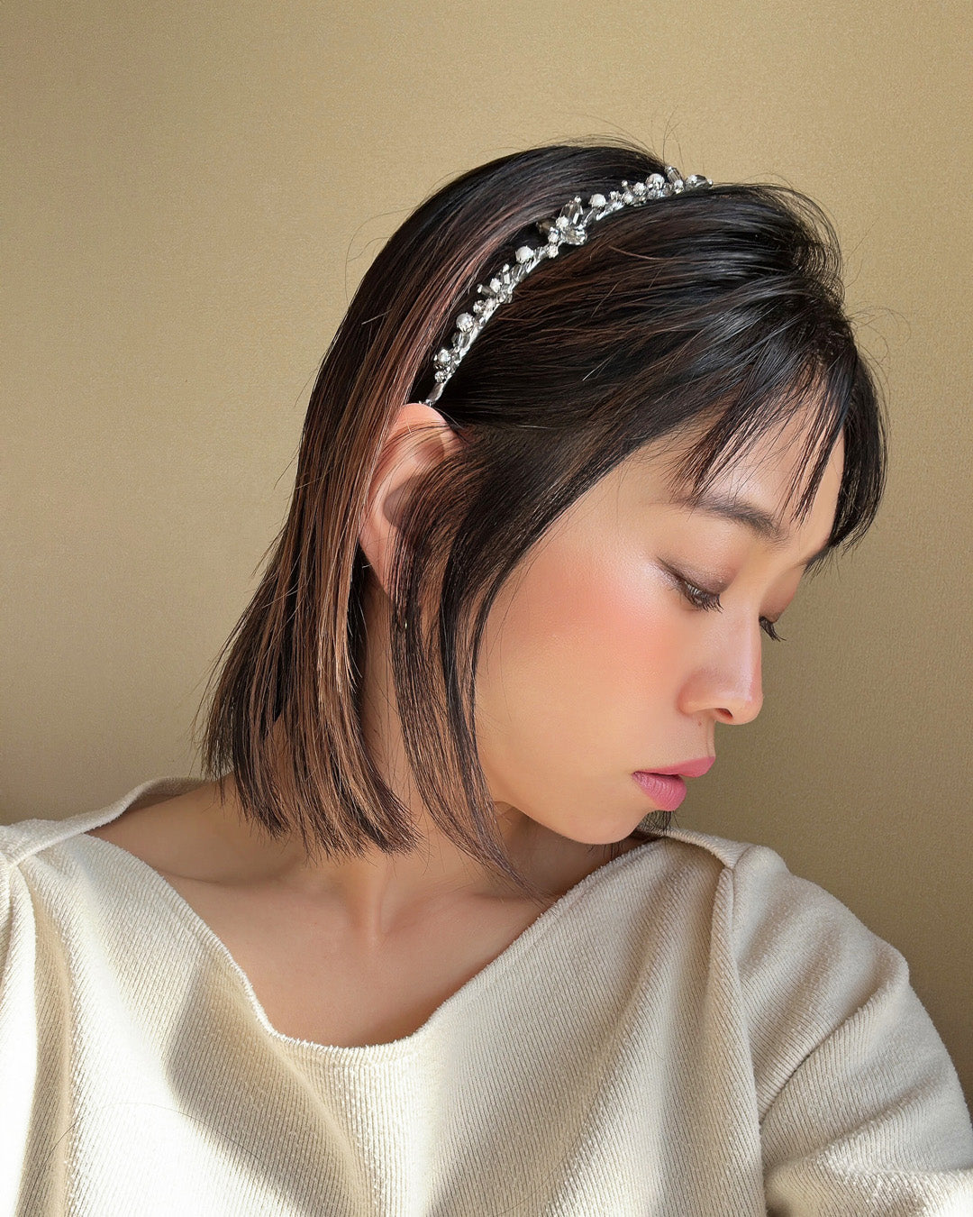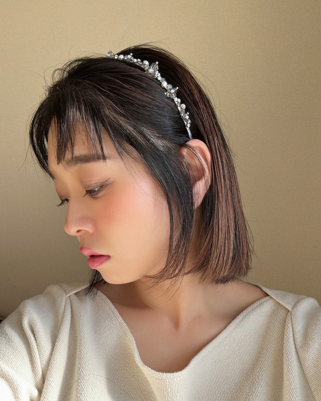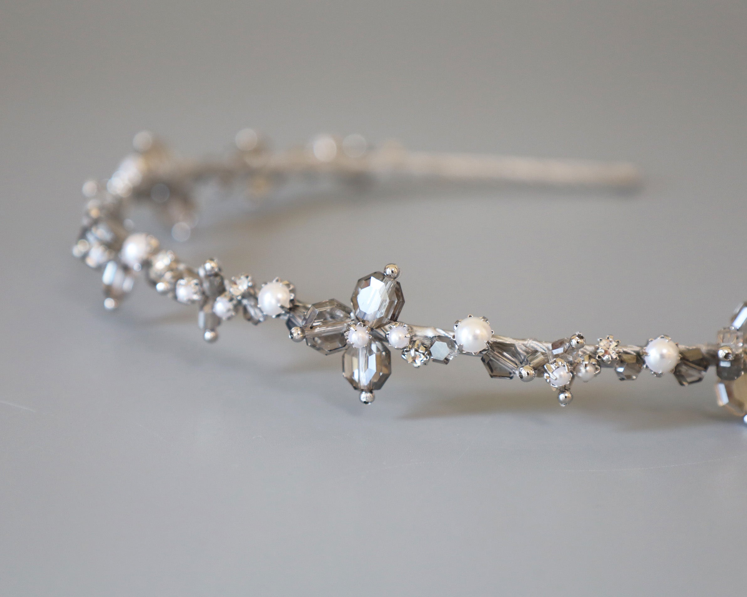 カチューシャのラインが極細だから、ビジューが引き立ちます。