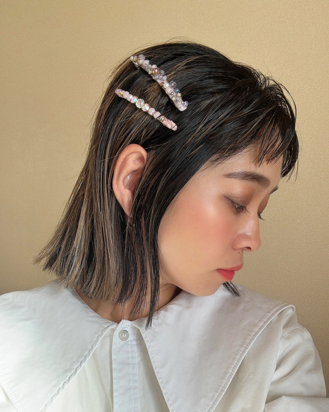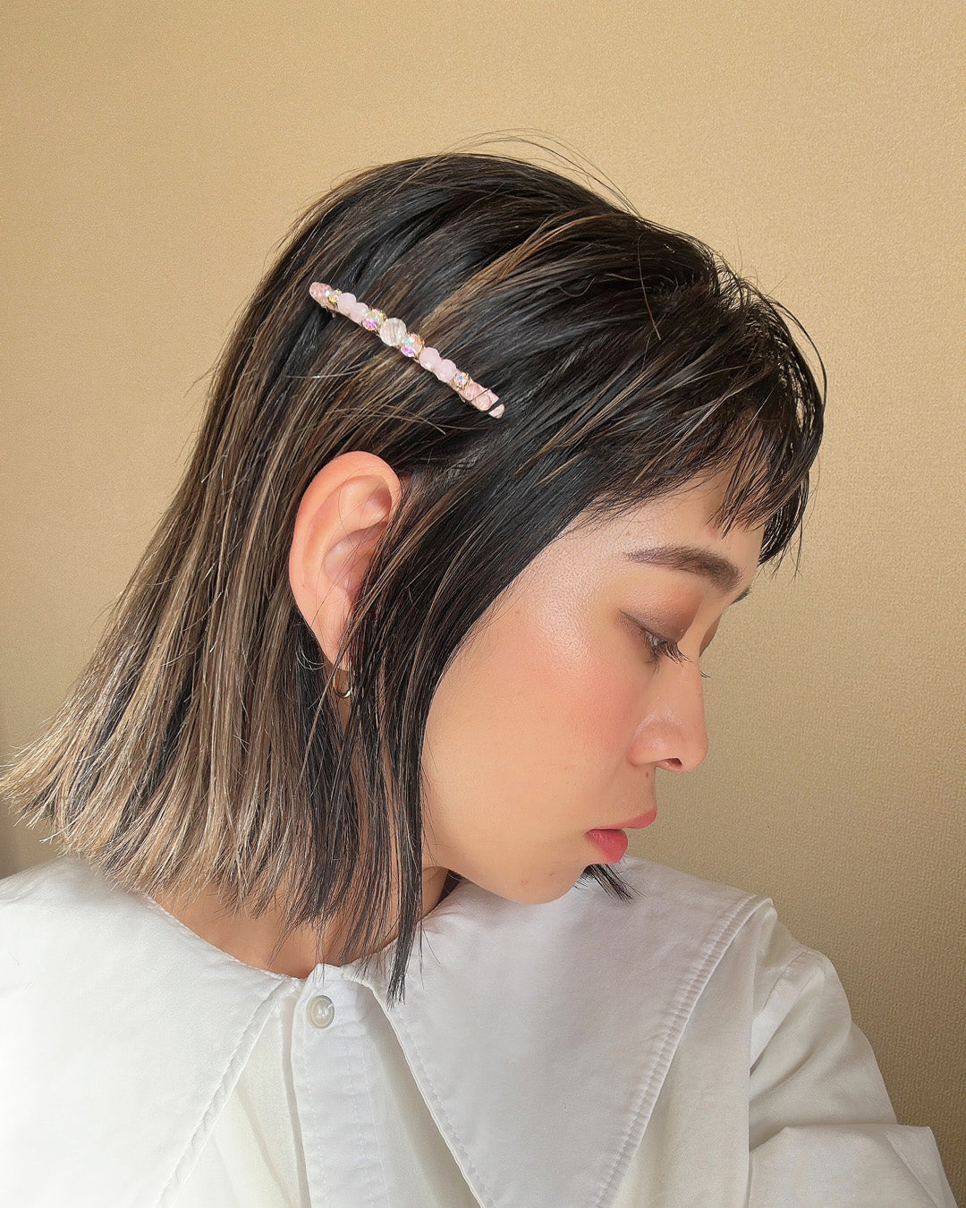 ハーフアップやギブソンタックのようなきれいめヘアに合わせれば、卒入学式のセレモニーヘアにも◎