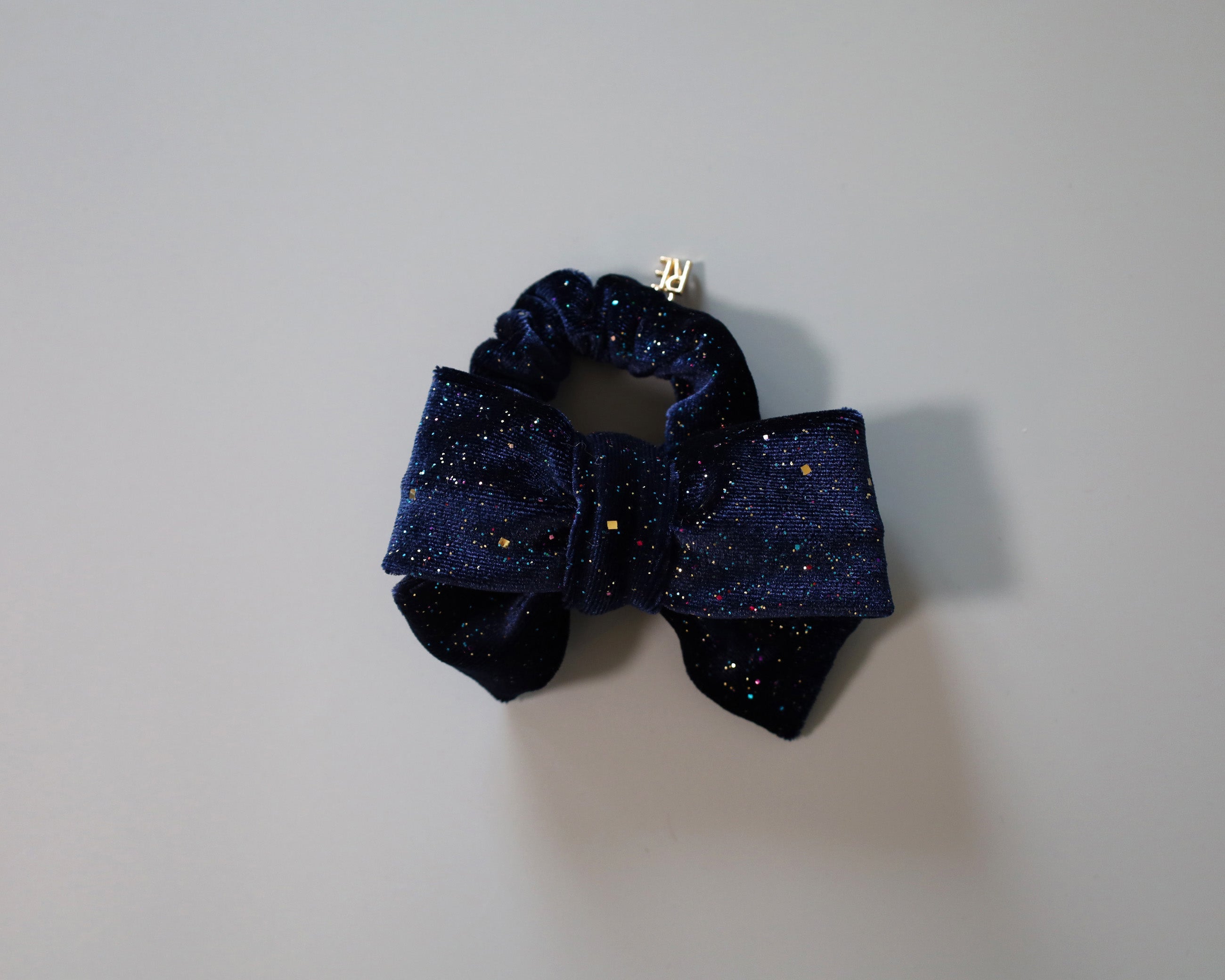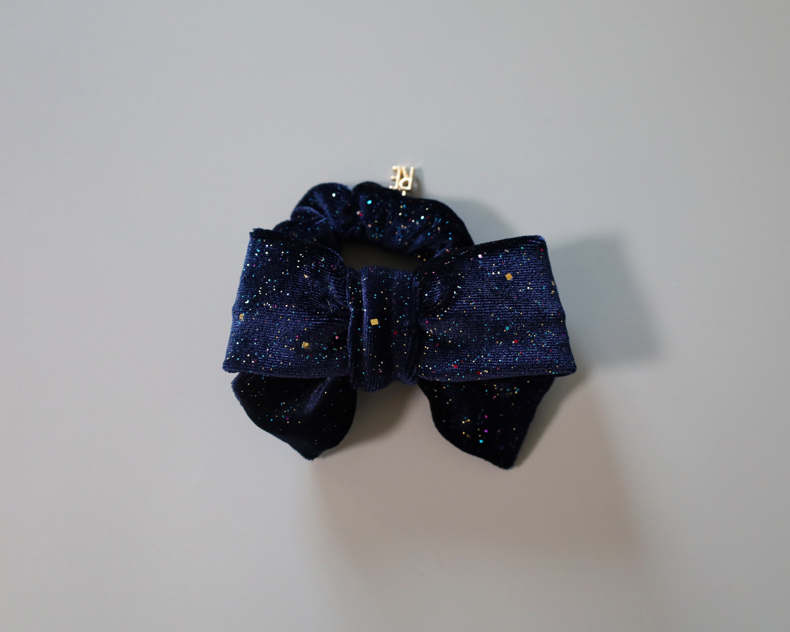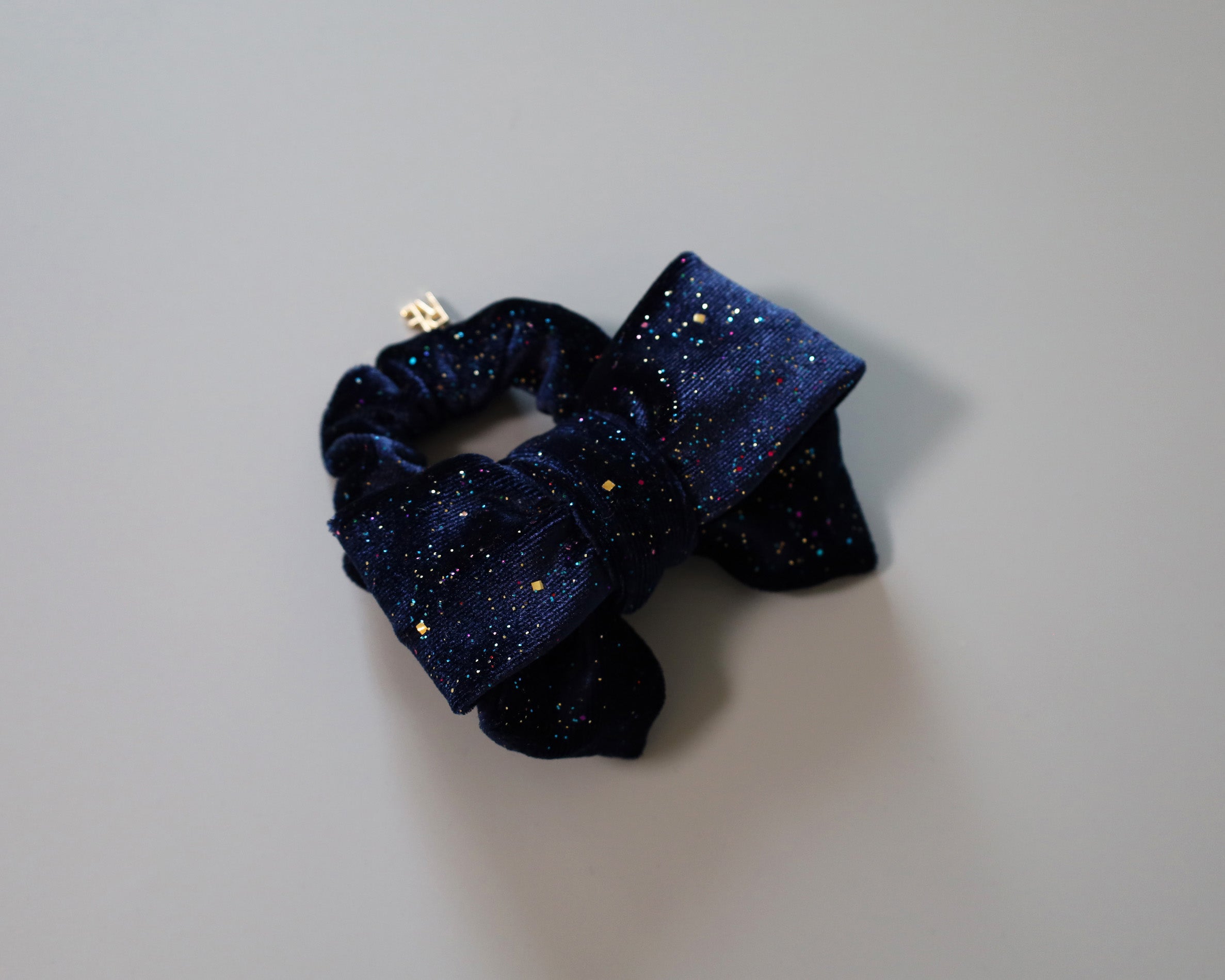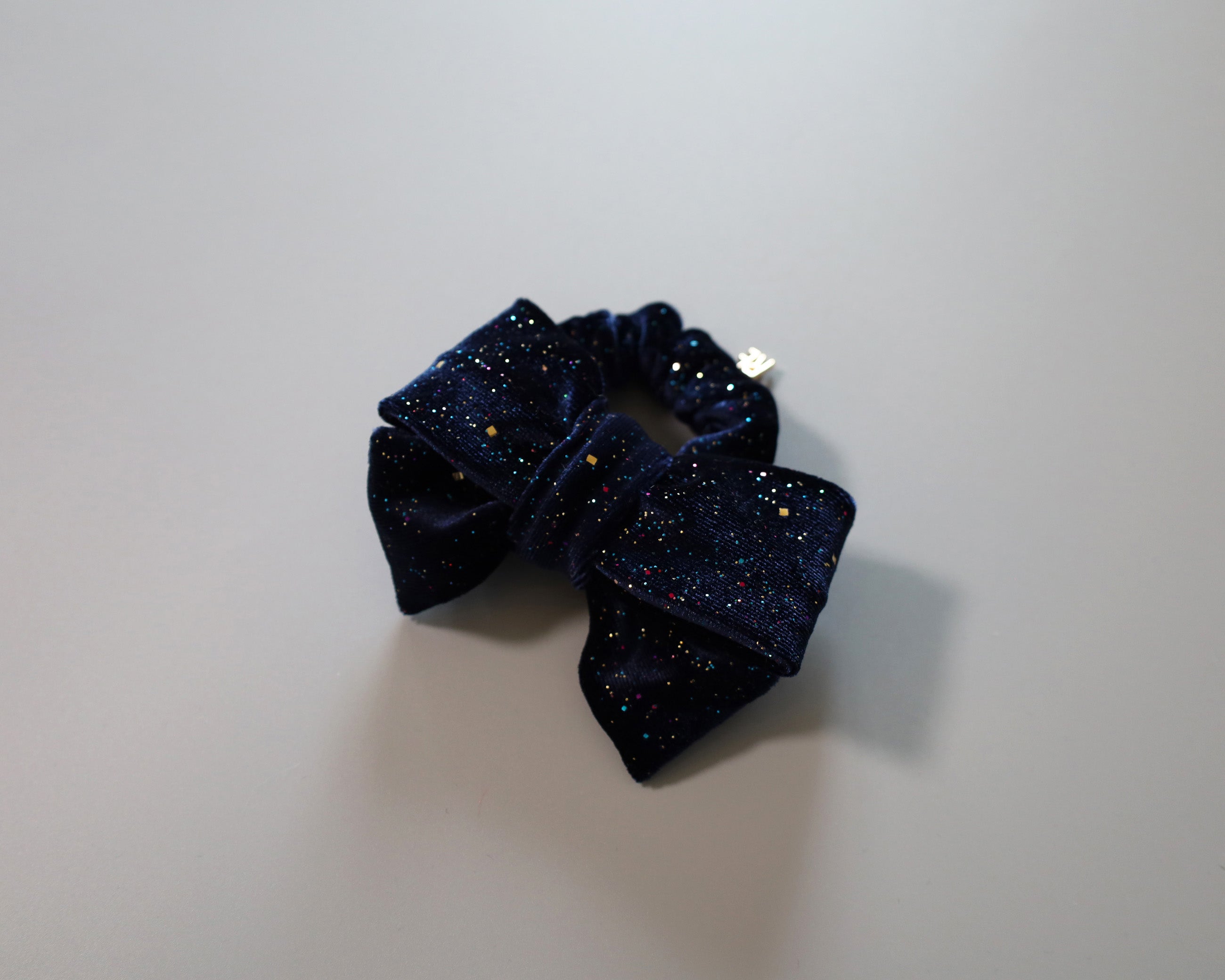 ネイビーカラーの高級感ある生地に散らしたラメが、まるで星空のようなリボンポニー。