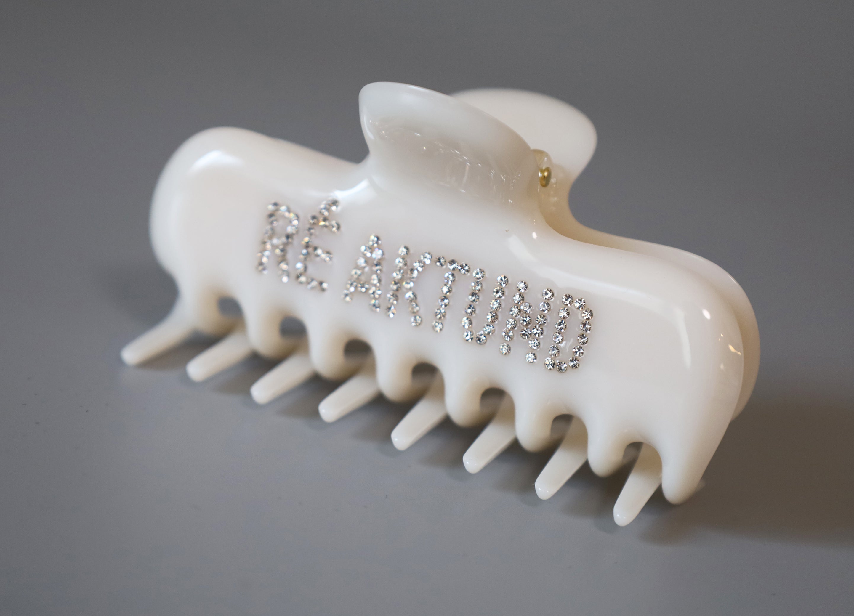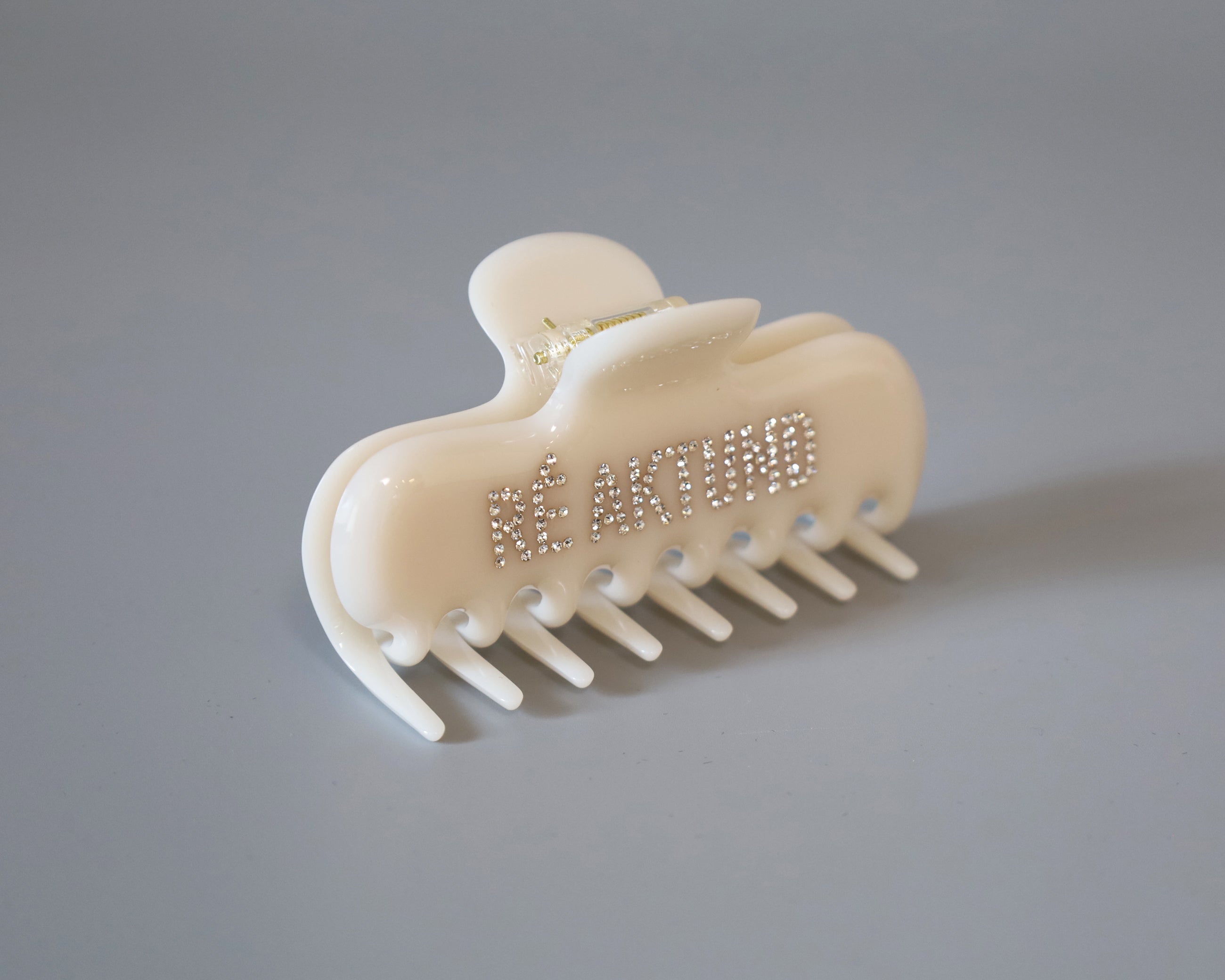 ラインストーンで描いたブランドロゴがリッチでキュートなデザインです。