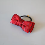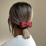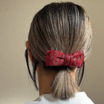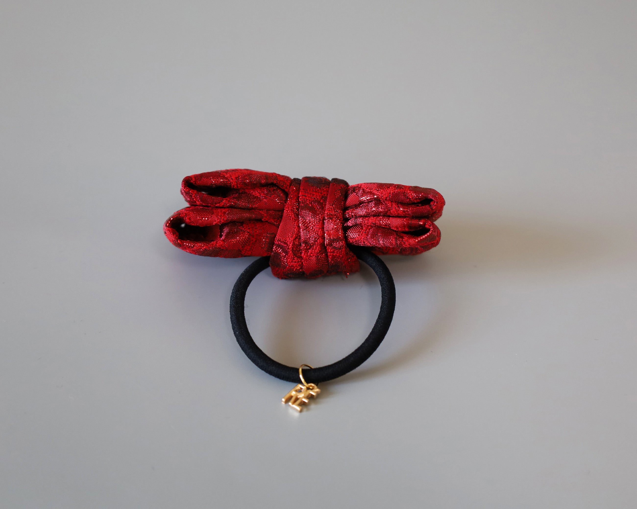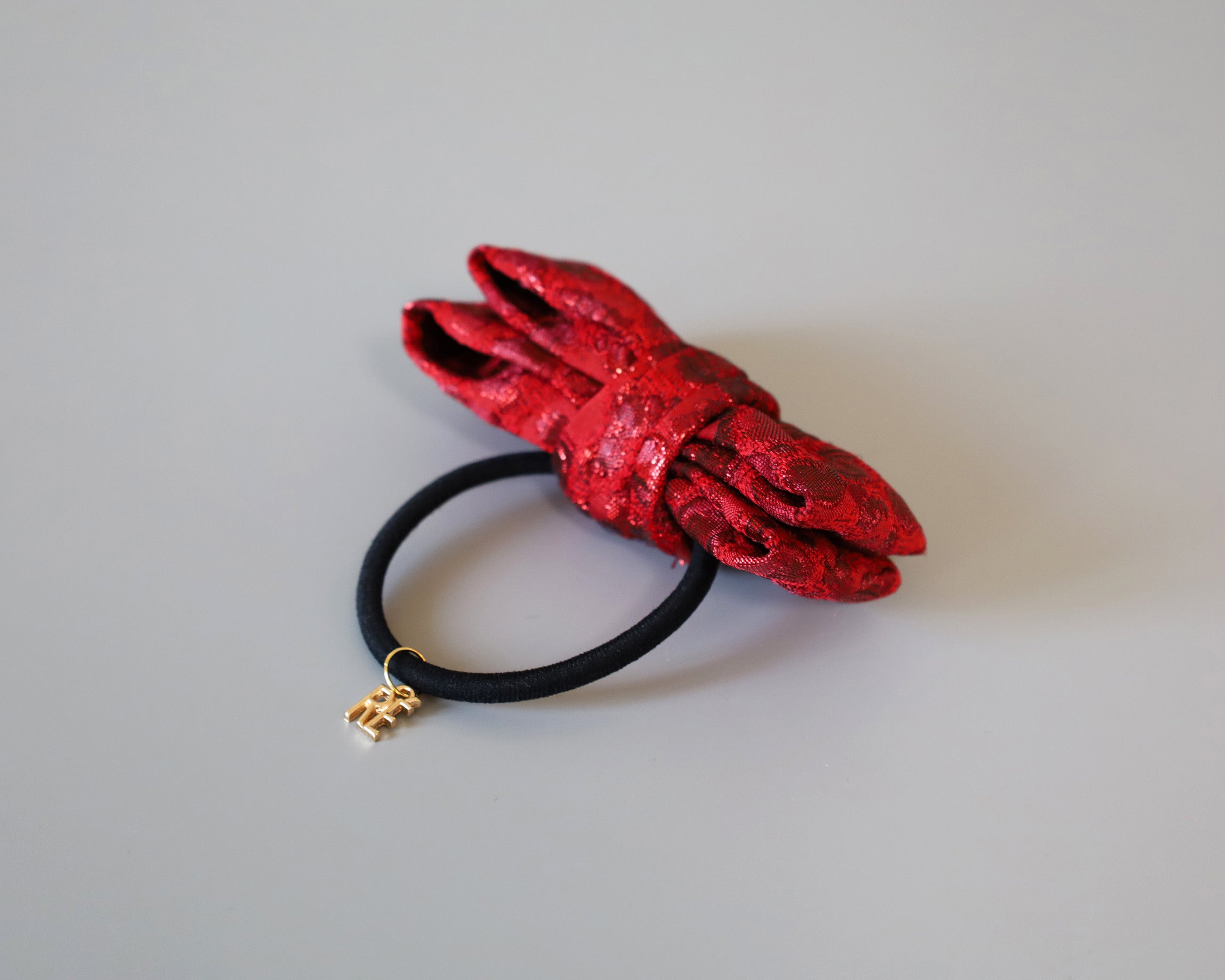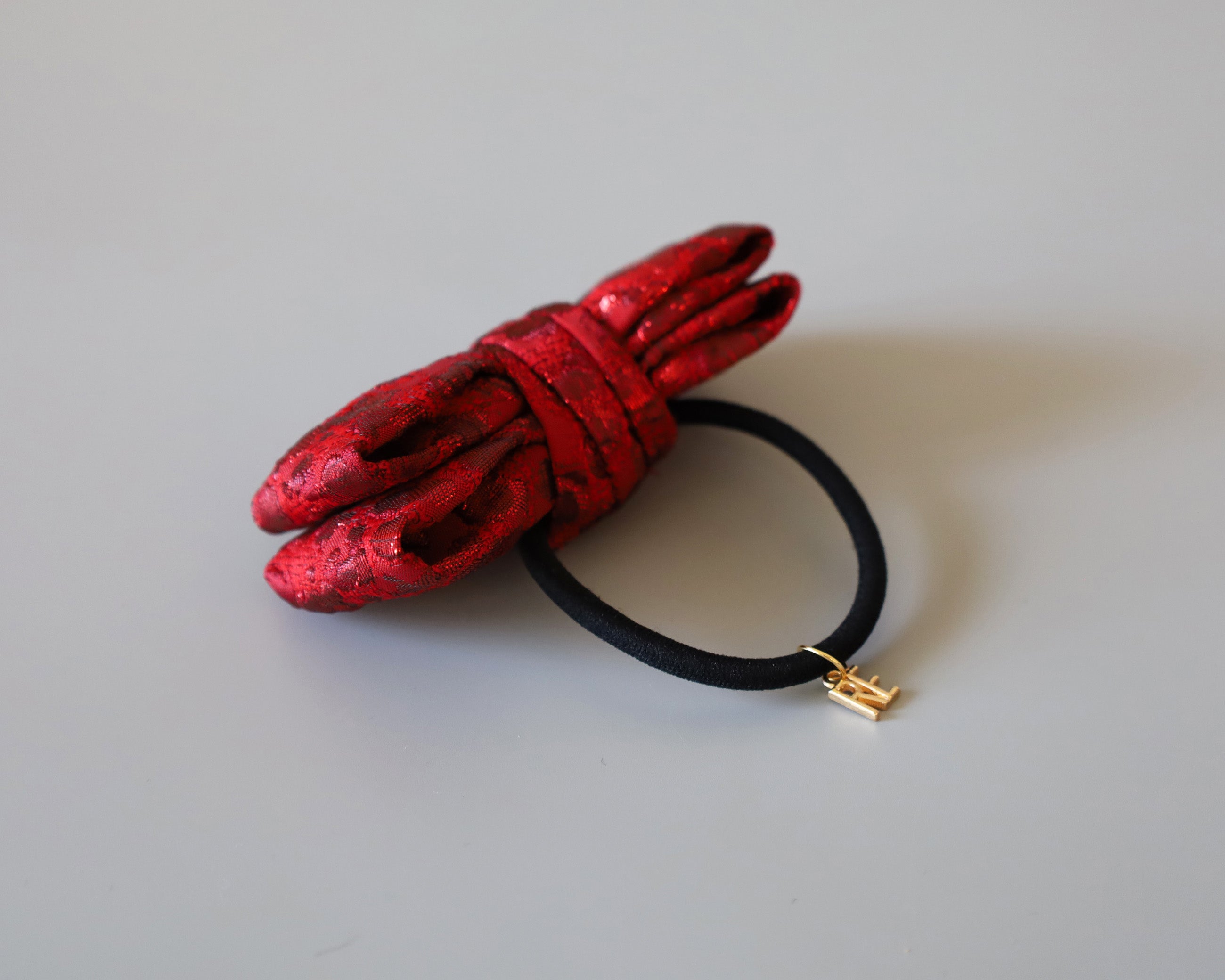 シンプルなヘアやコーデのアクセントとしてぴったりな深紅のリボンポニー。