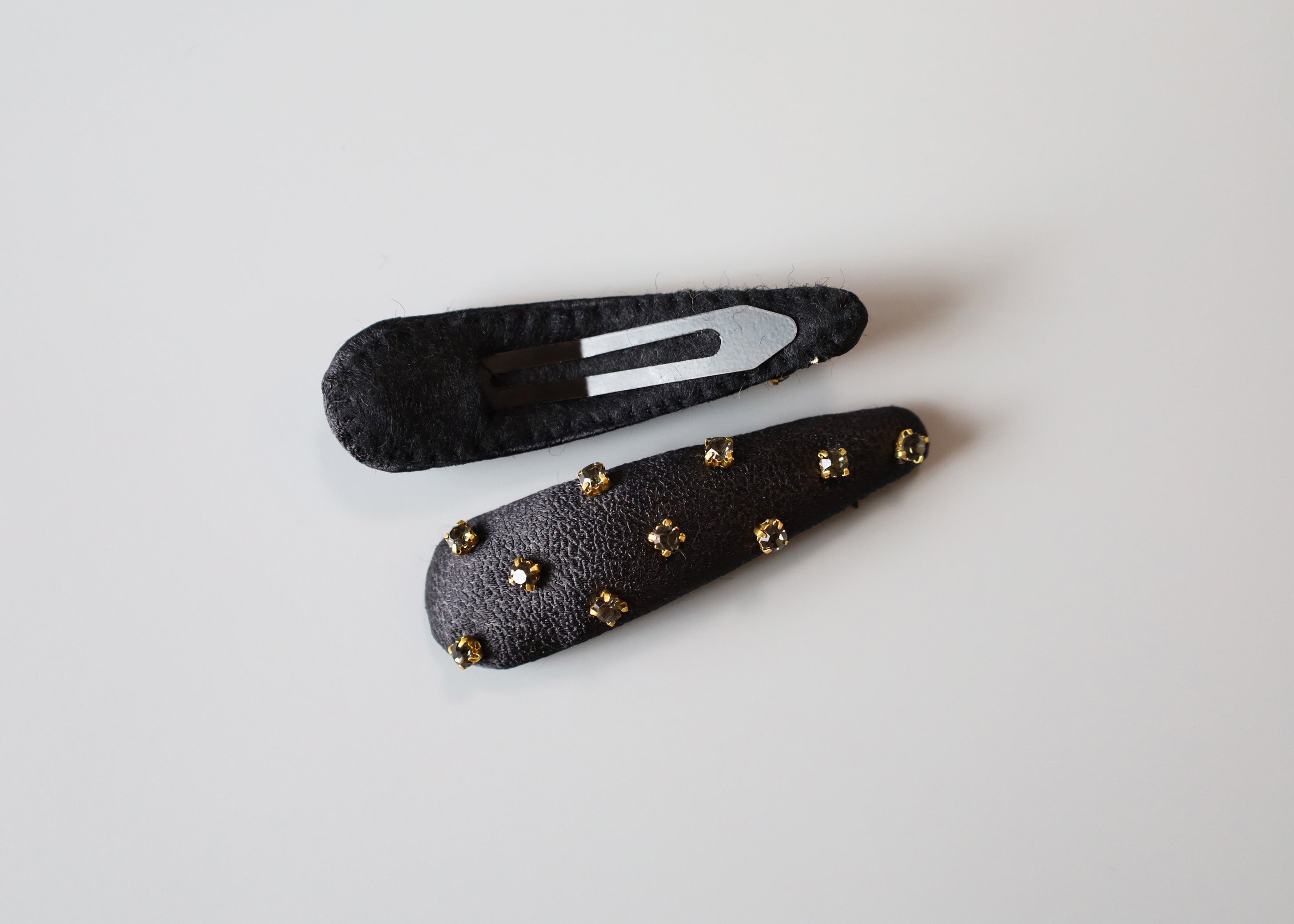 控えめの光沢感がレザーっぽい雰囲気も醸し出すブラックのヘアピン。
