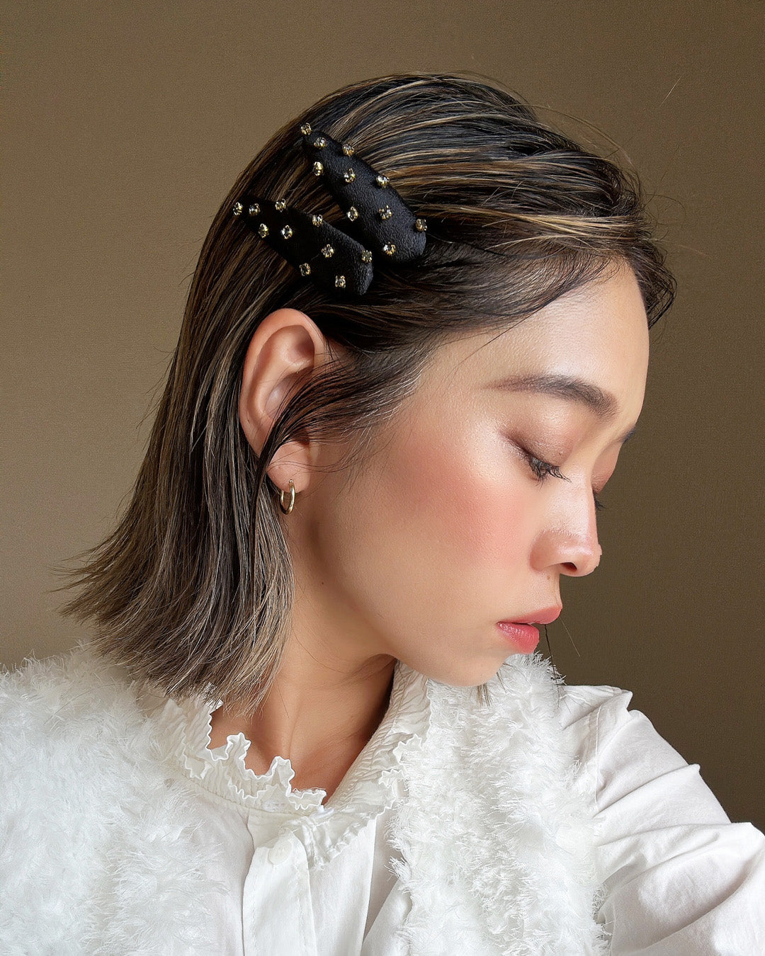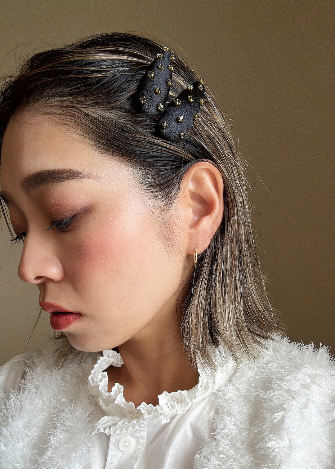 ヘアピンがややマットな分、ヘアにツヤ感をプラスするとよりこなれた雰囲気に。