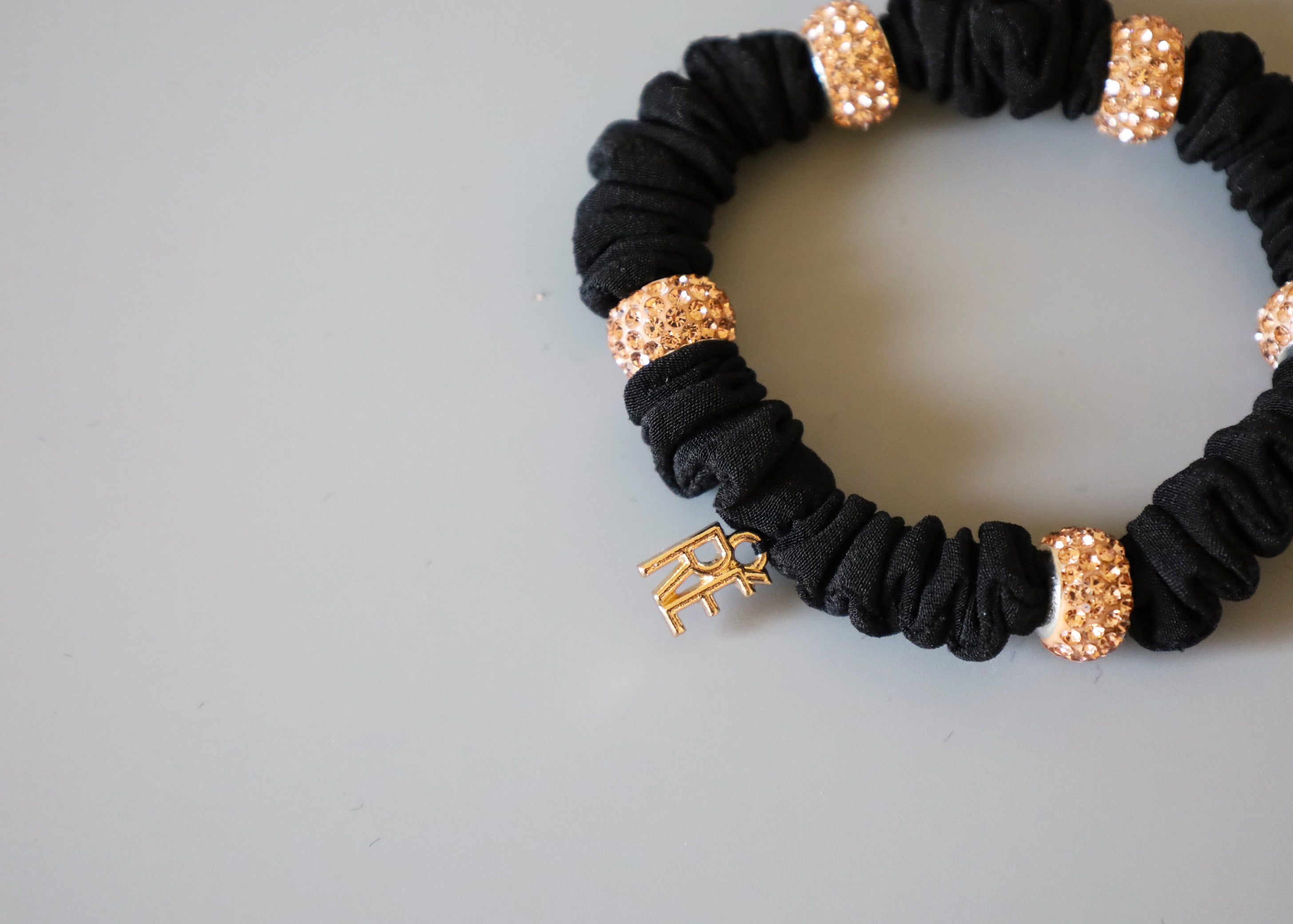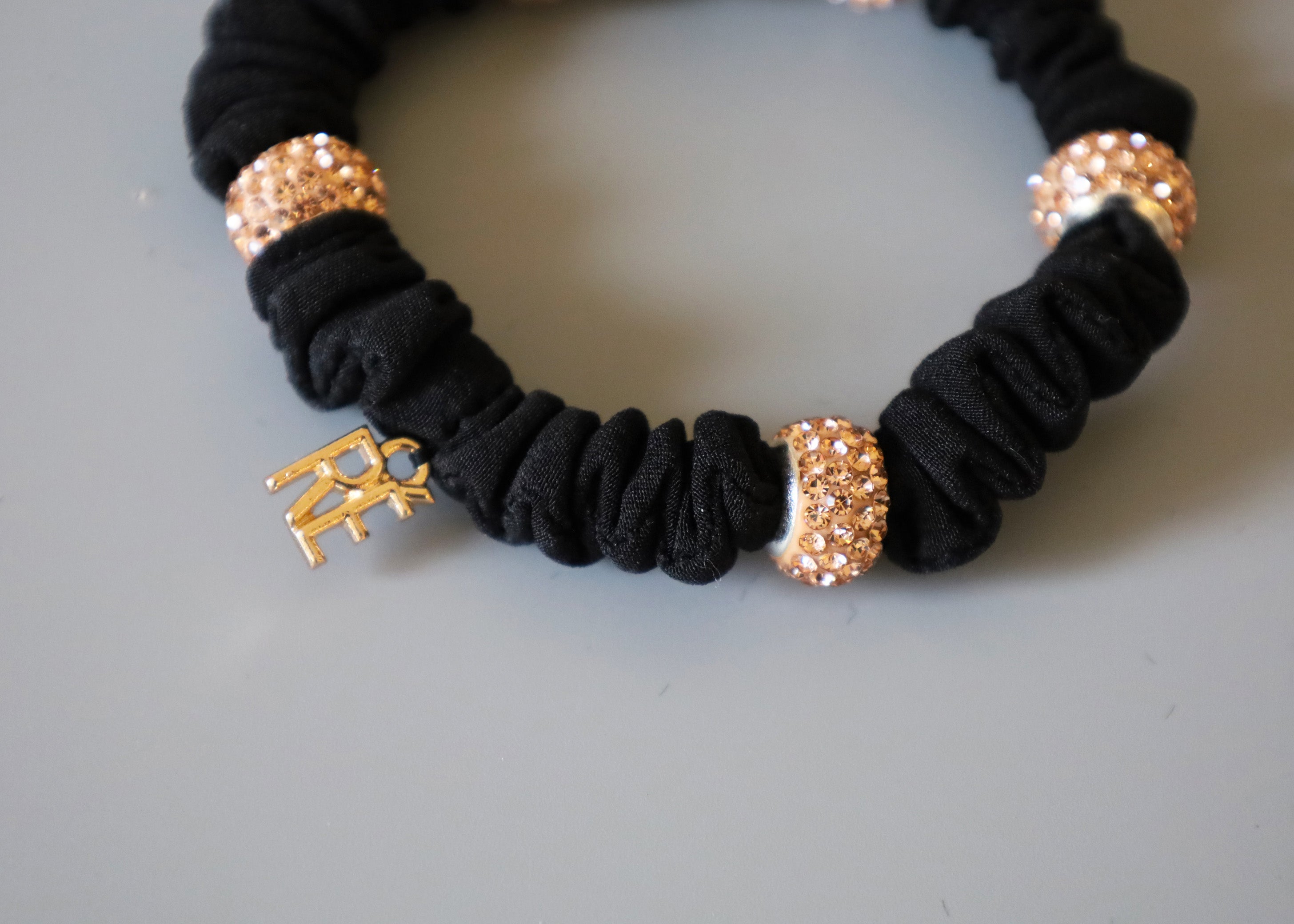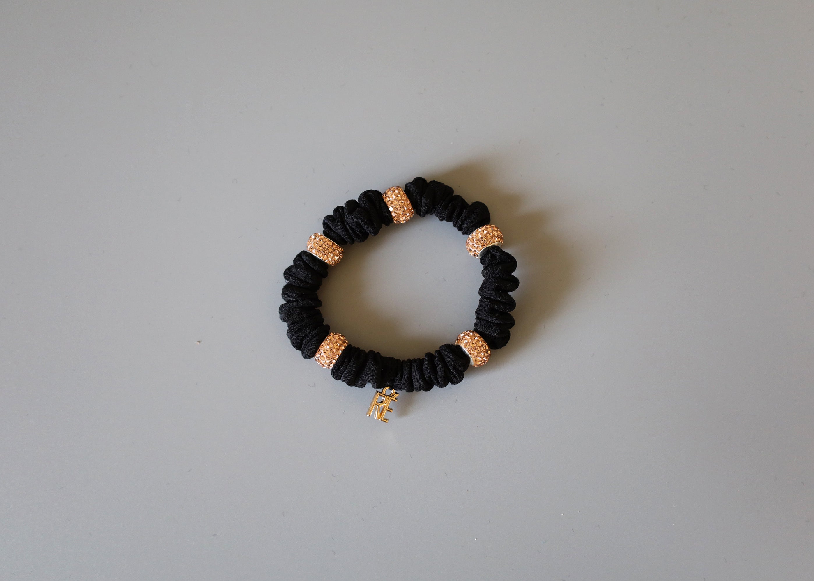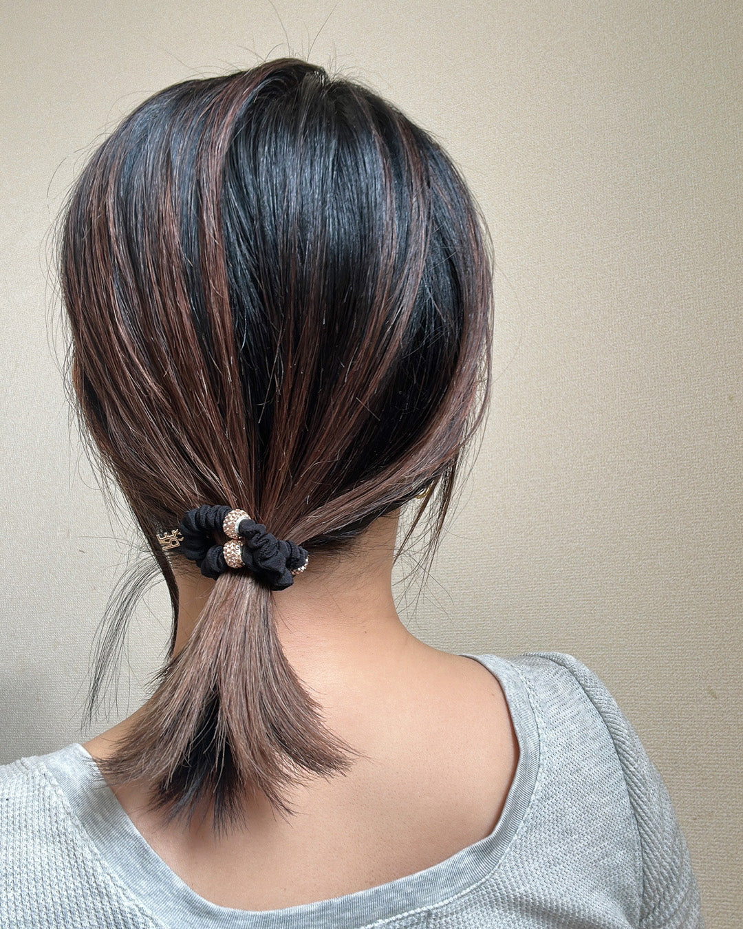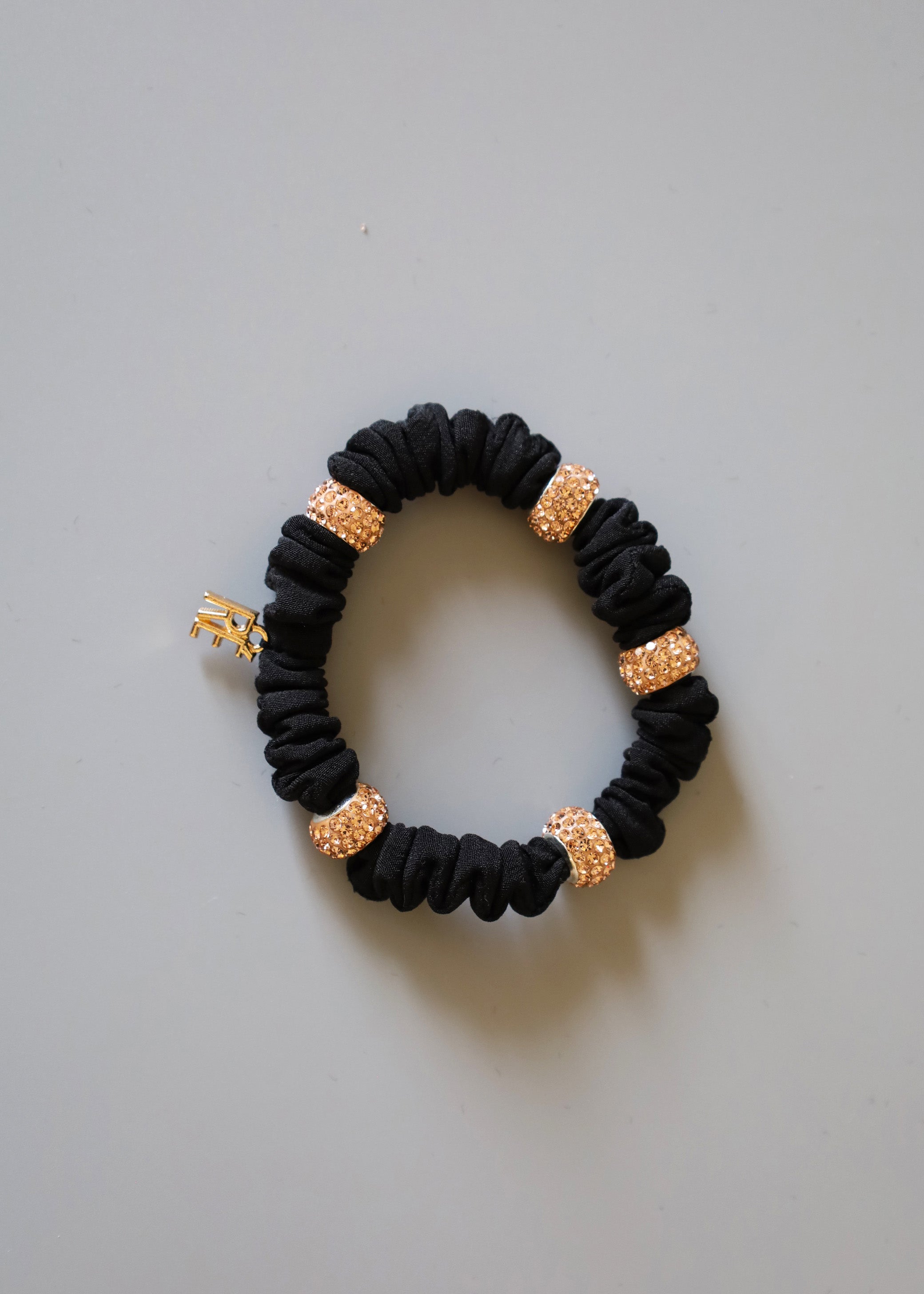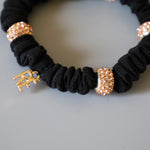 ブラック×シャンパンゴールドの色合いがリッチなミニシュシュ。