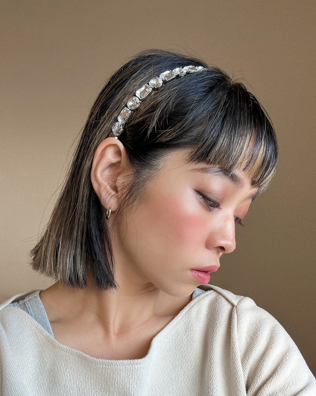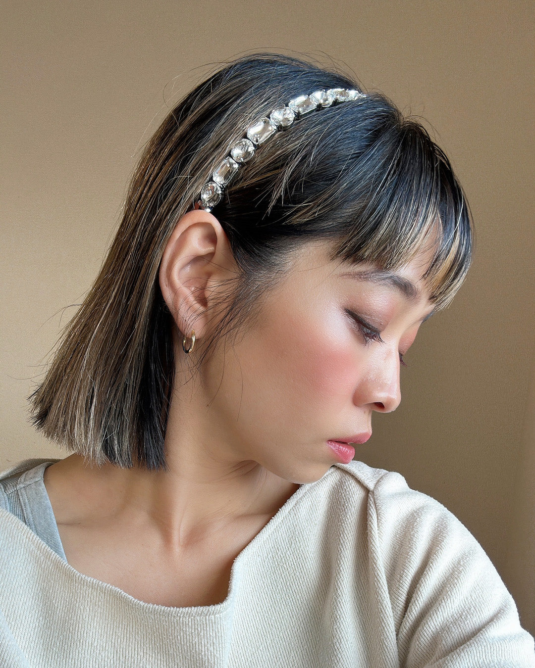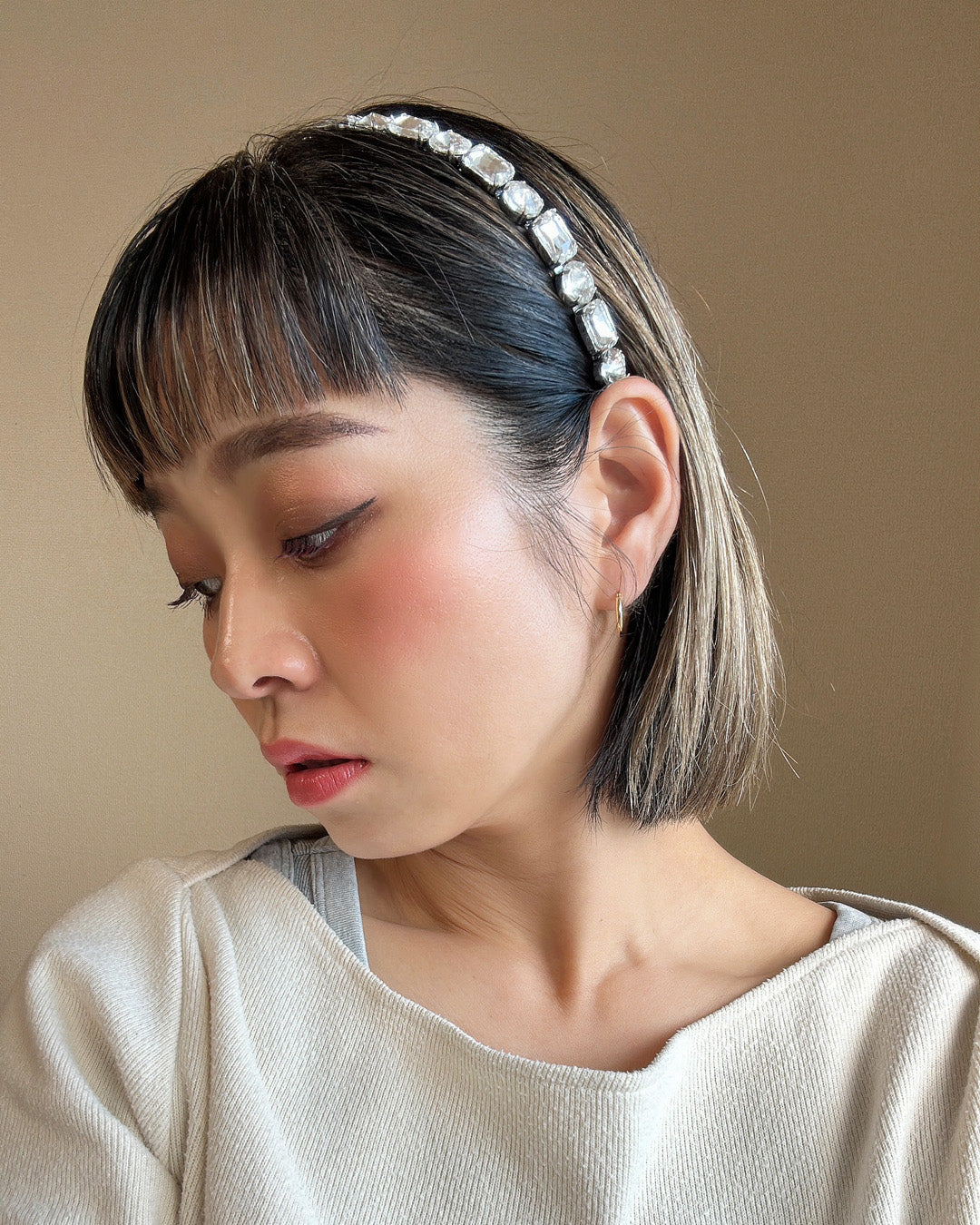 このカチューシャのきらめきは、がんばりすぎないヘアスタイルとの相性抜群。