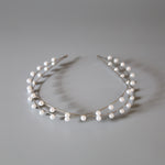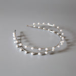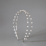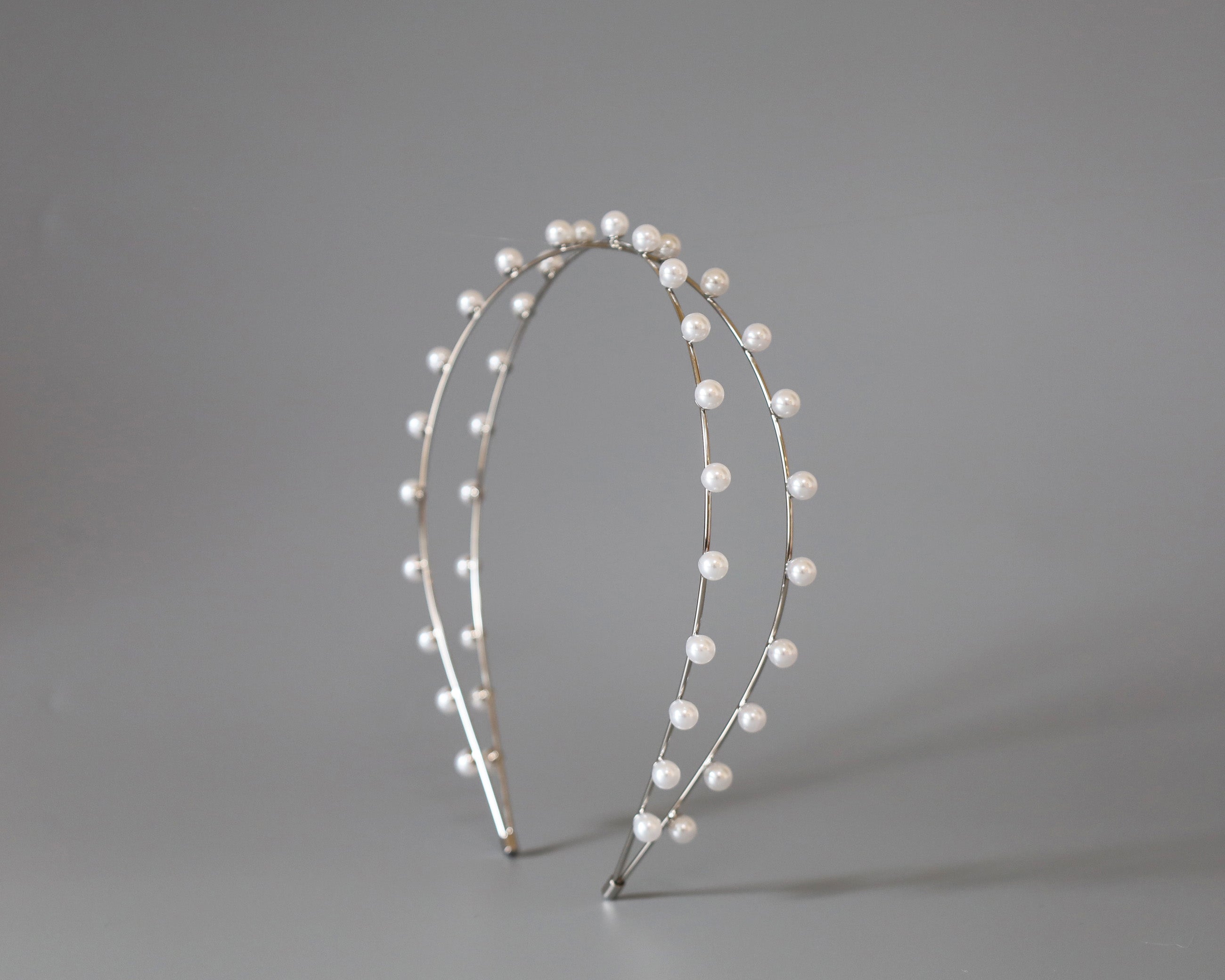 華奢なワイヤーをクロスさせた、重ねづけ風メタルカチューシャ。