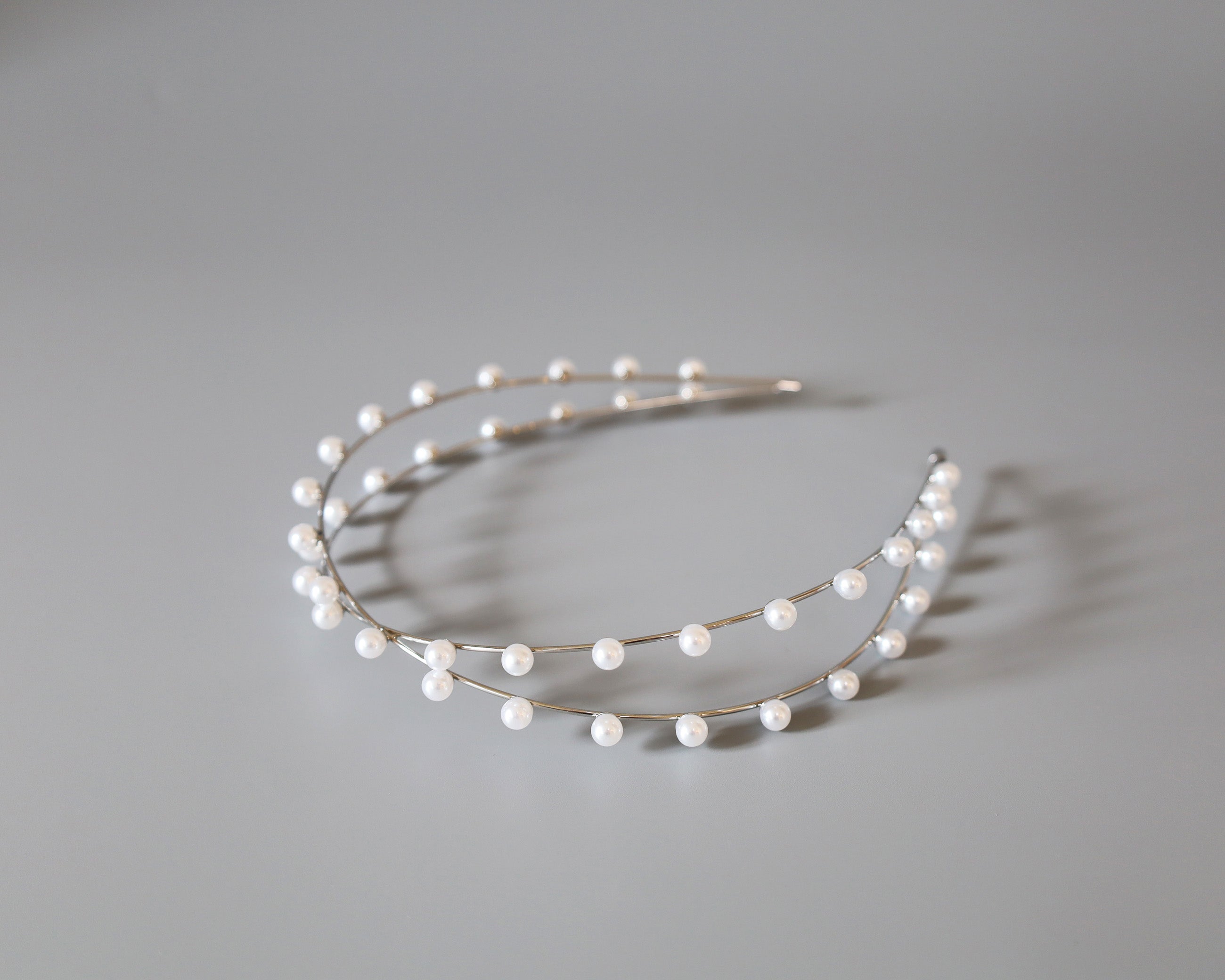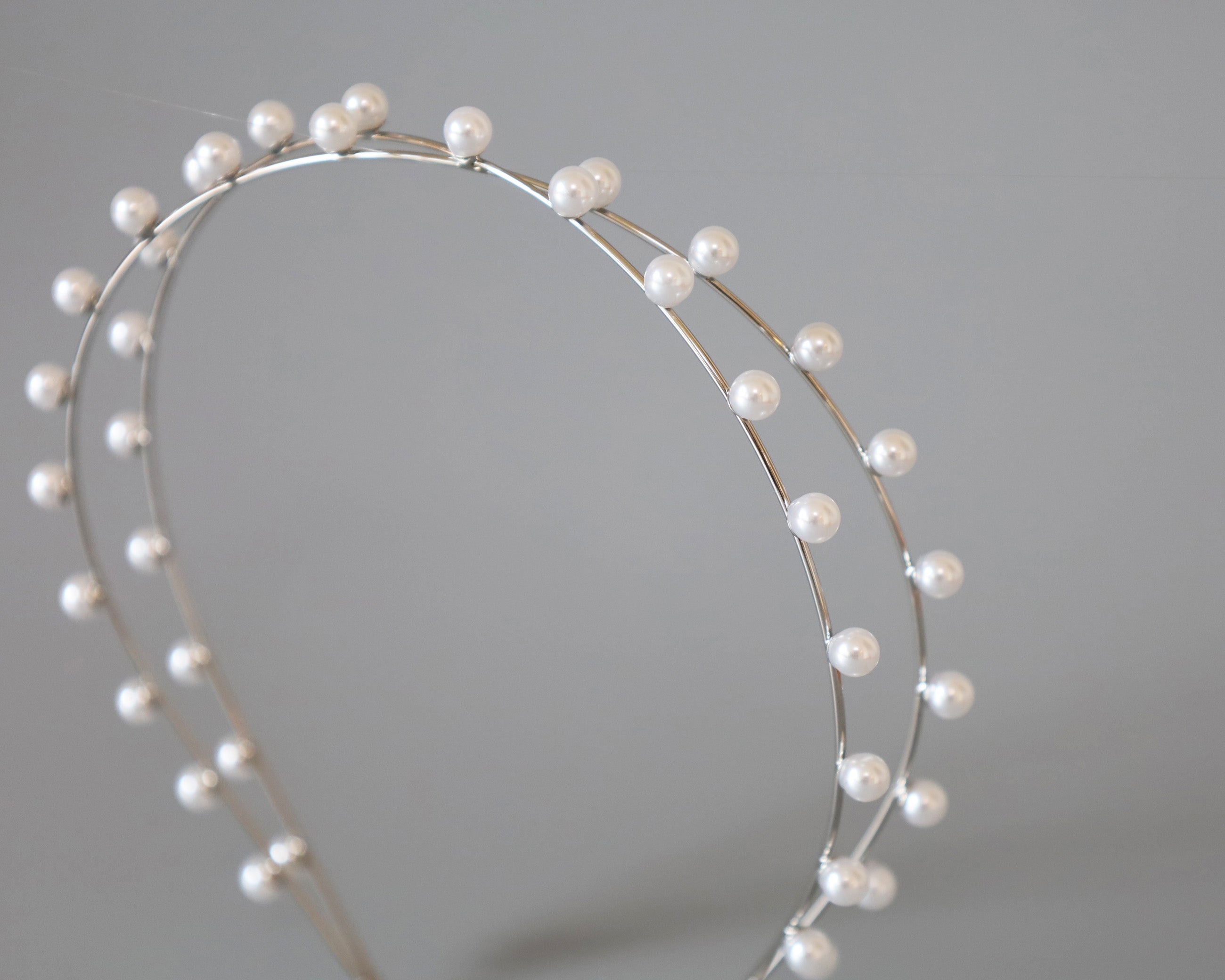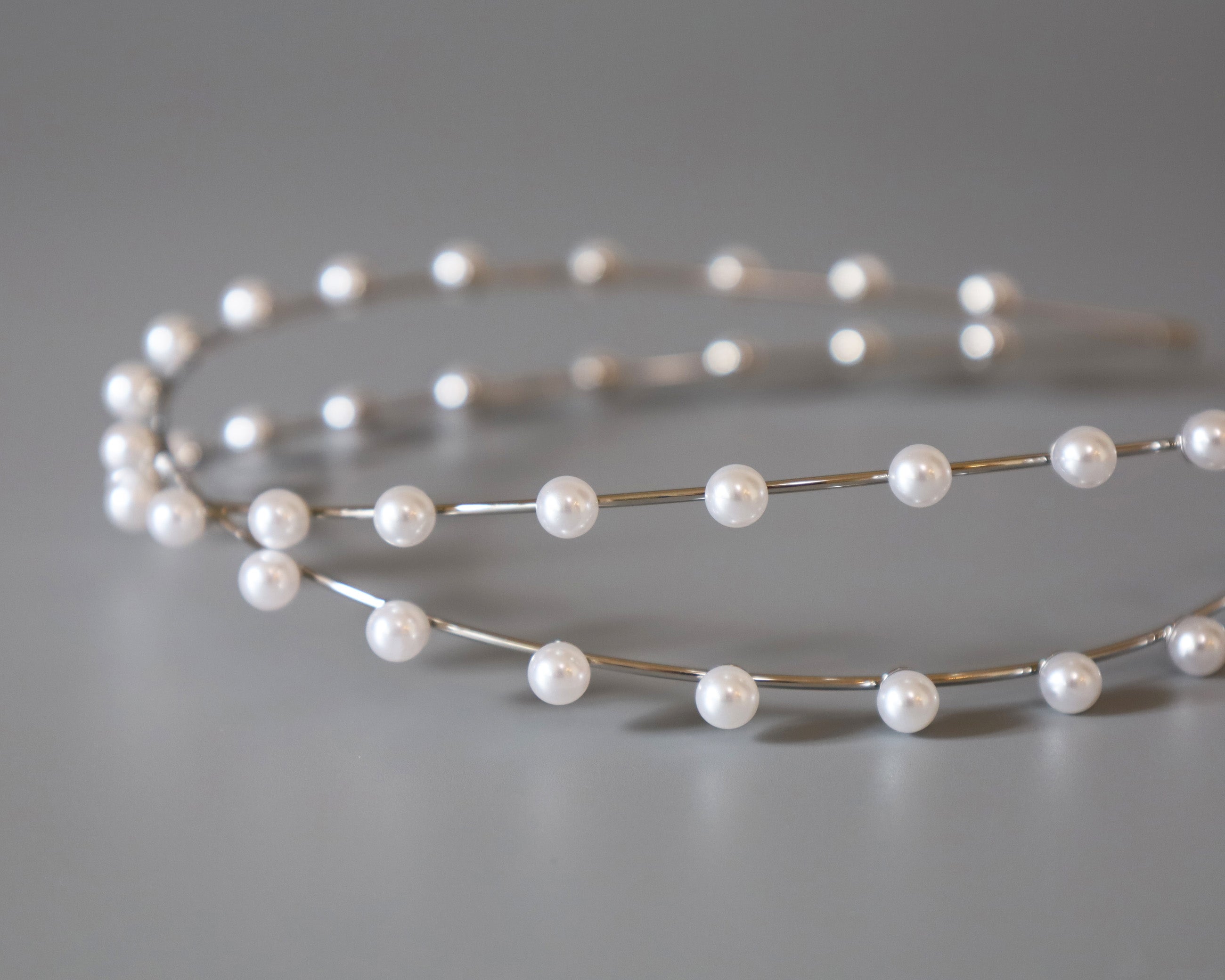 等間隔に並べたパールがティアラのような儚さでプリンセス気分を高めます。