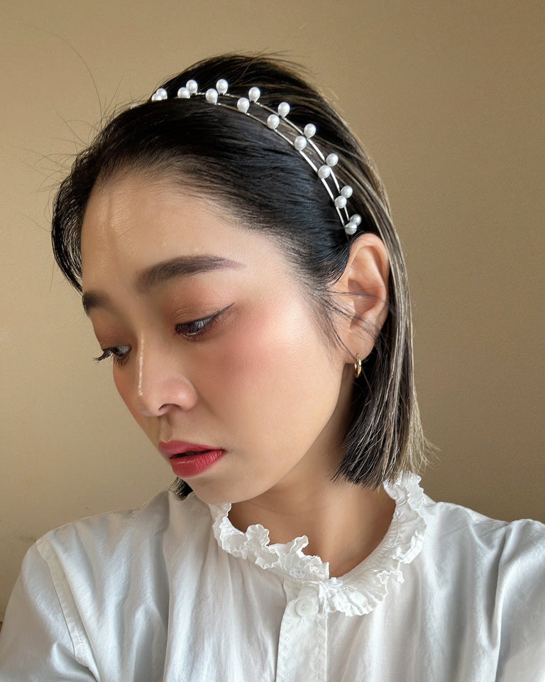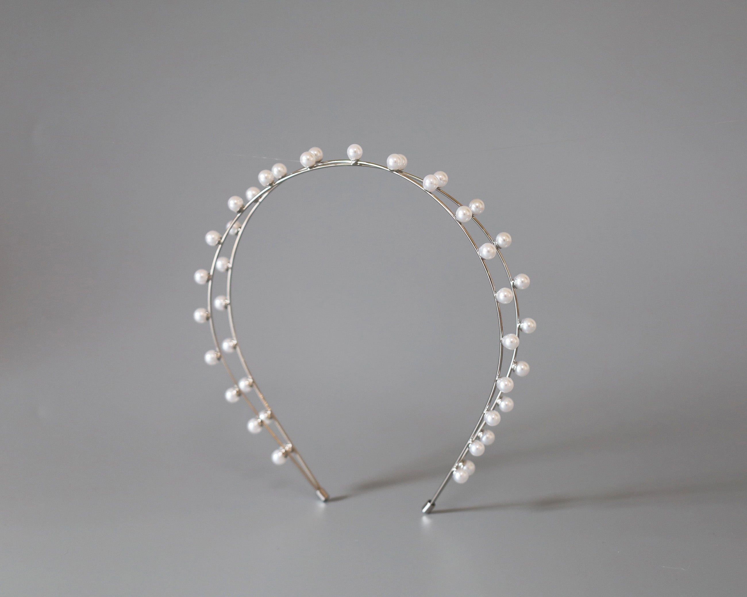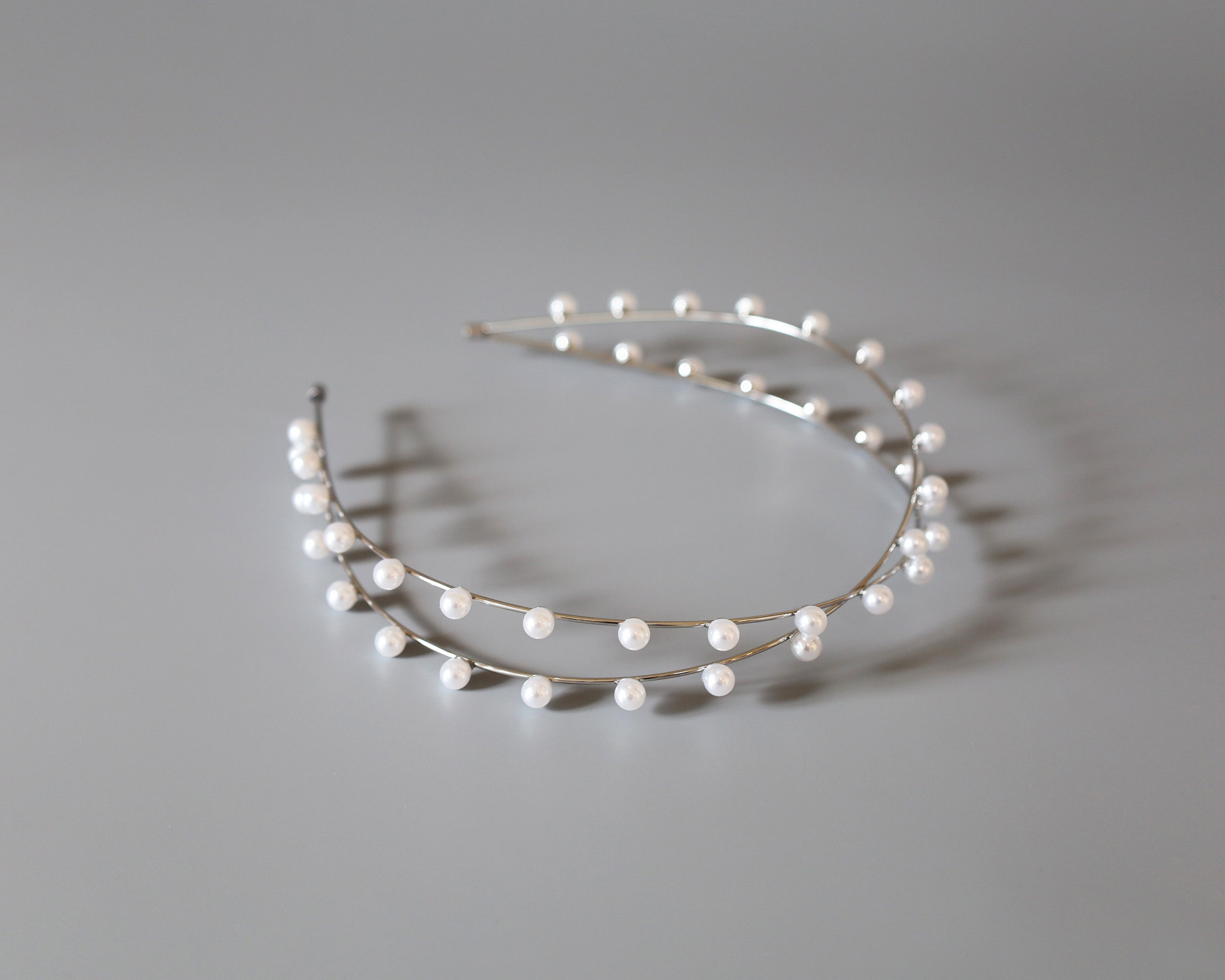 等間隔に並べたパールがティアラのような儚さでプリンセス気分を高めます。