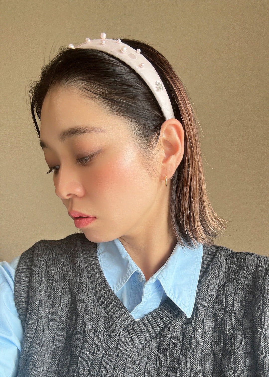淡い桜色が上品なピンク色のカチューシャ。