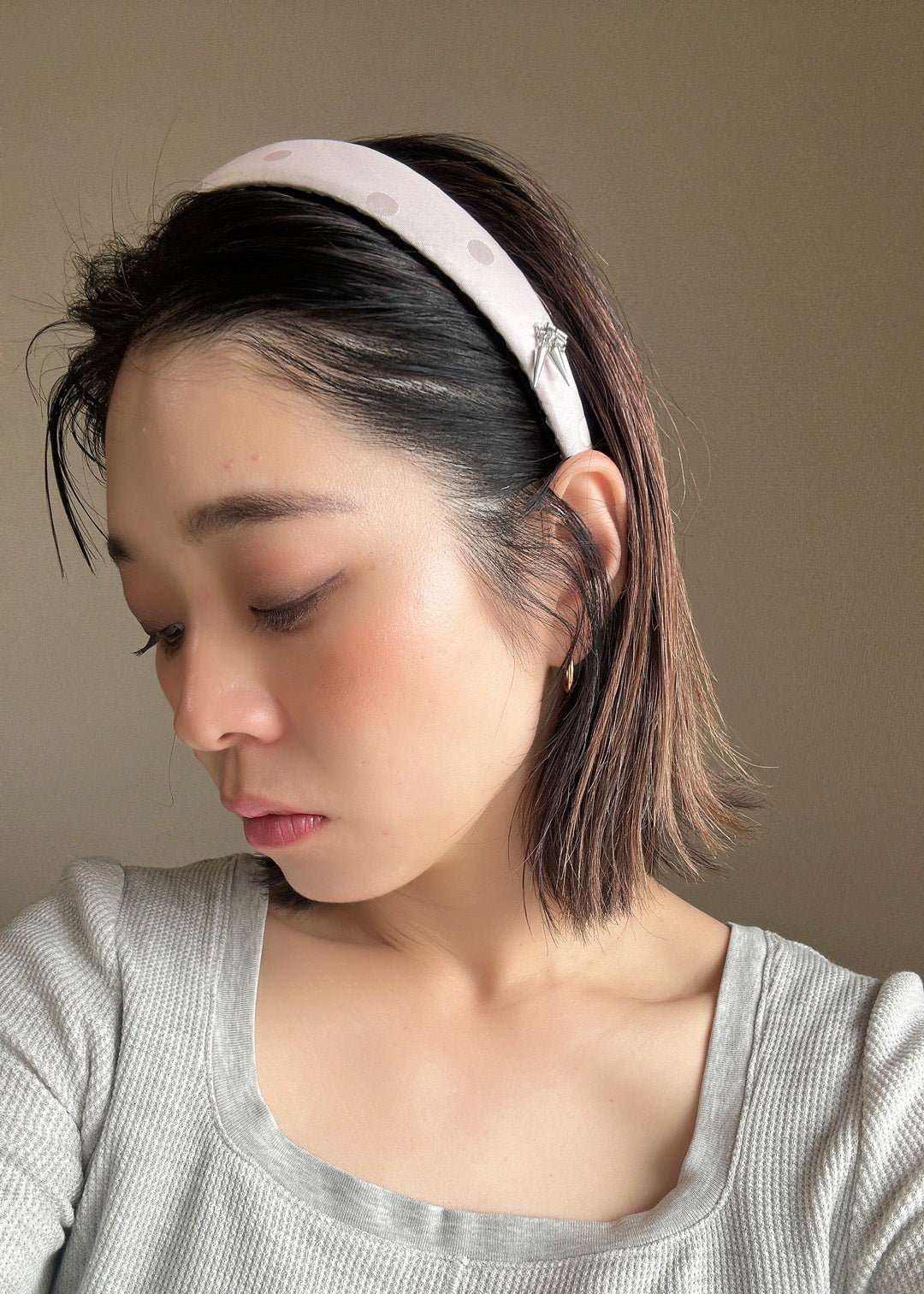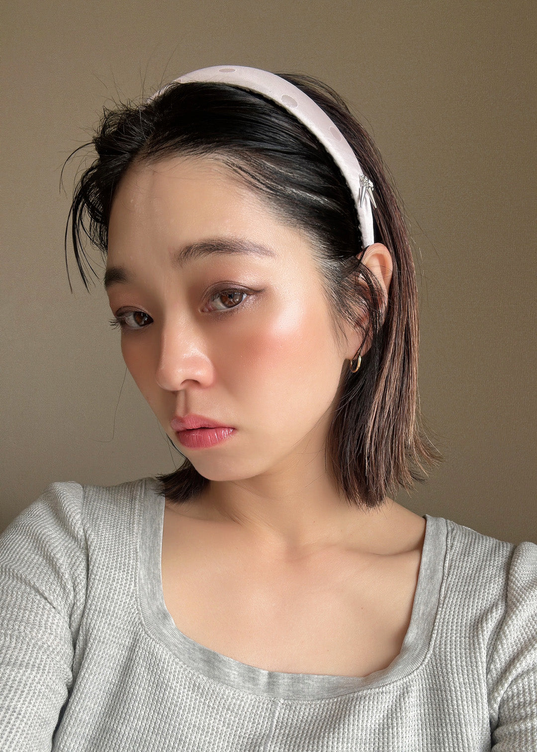 桜のようなやわらかなピンク色のカチューシャ。