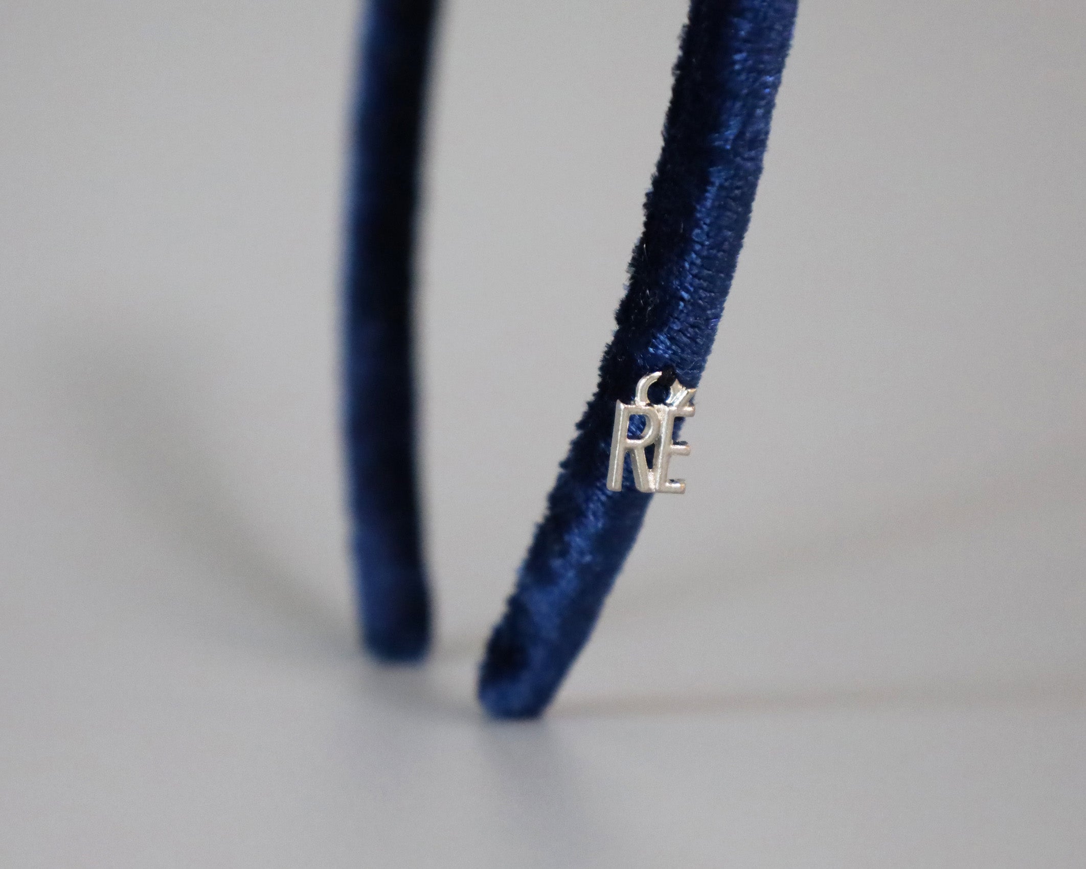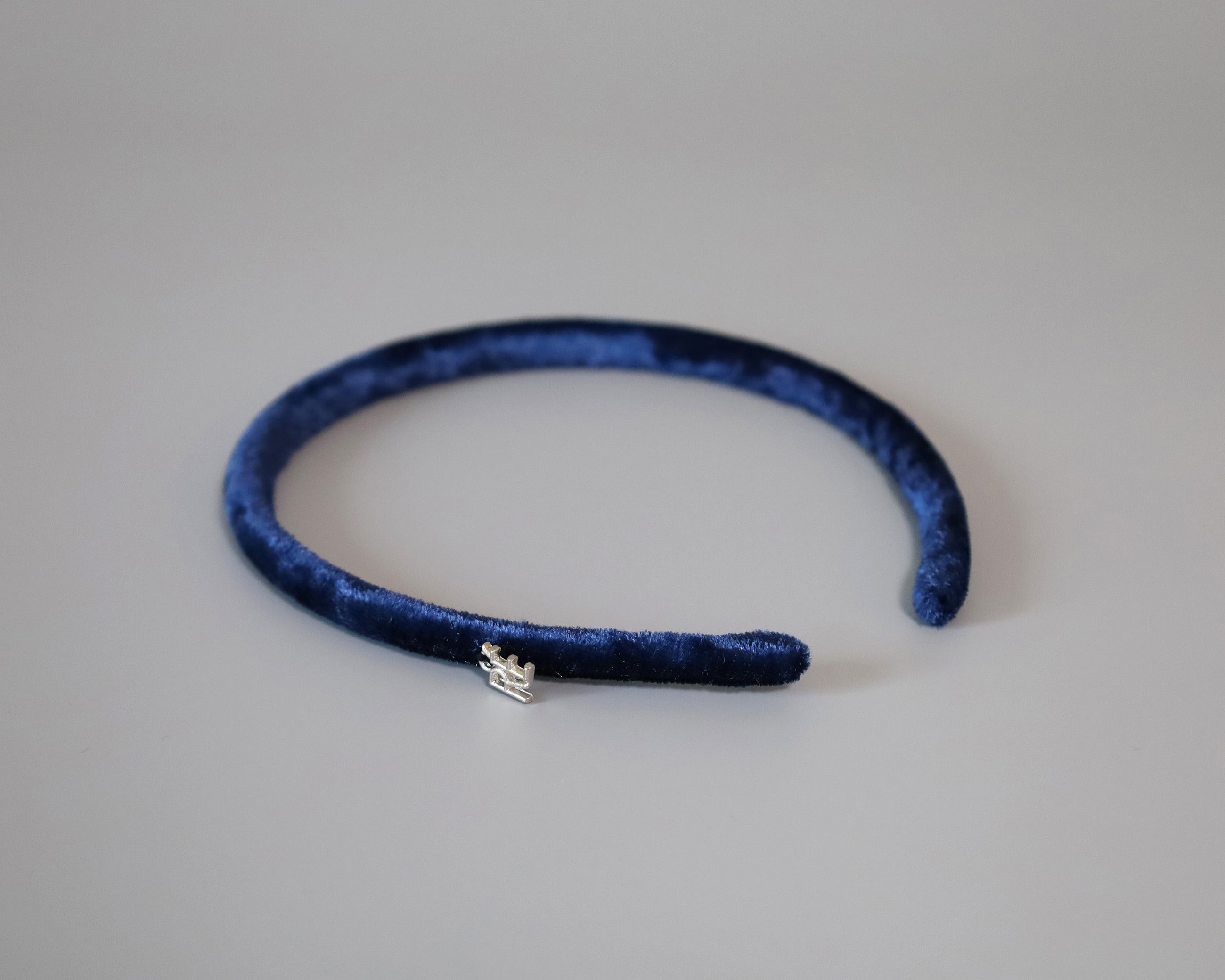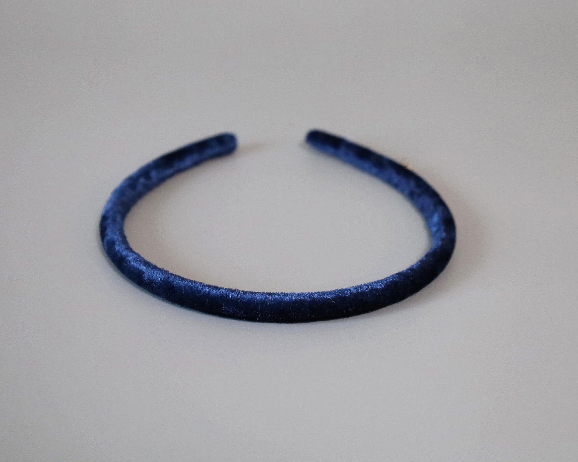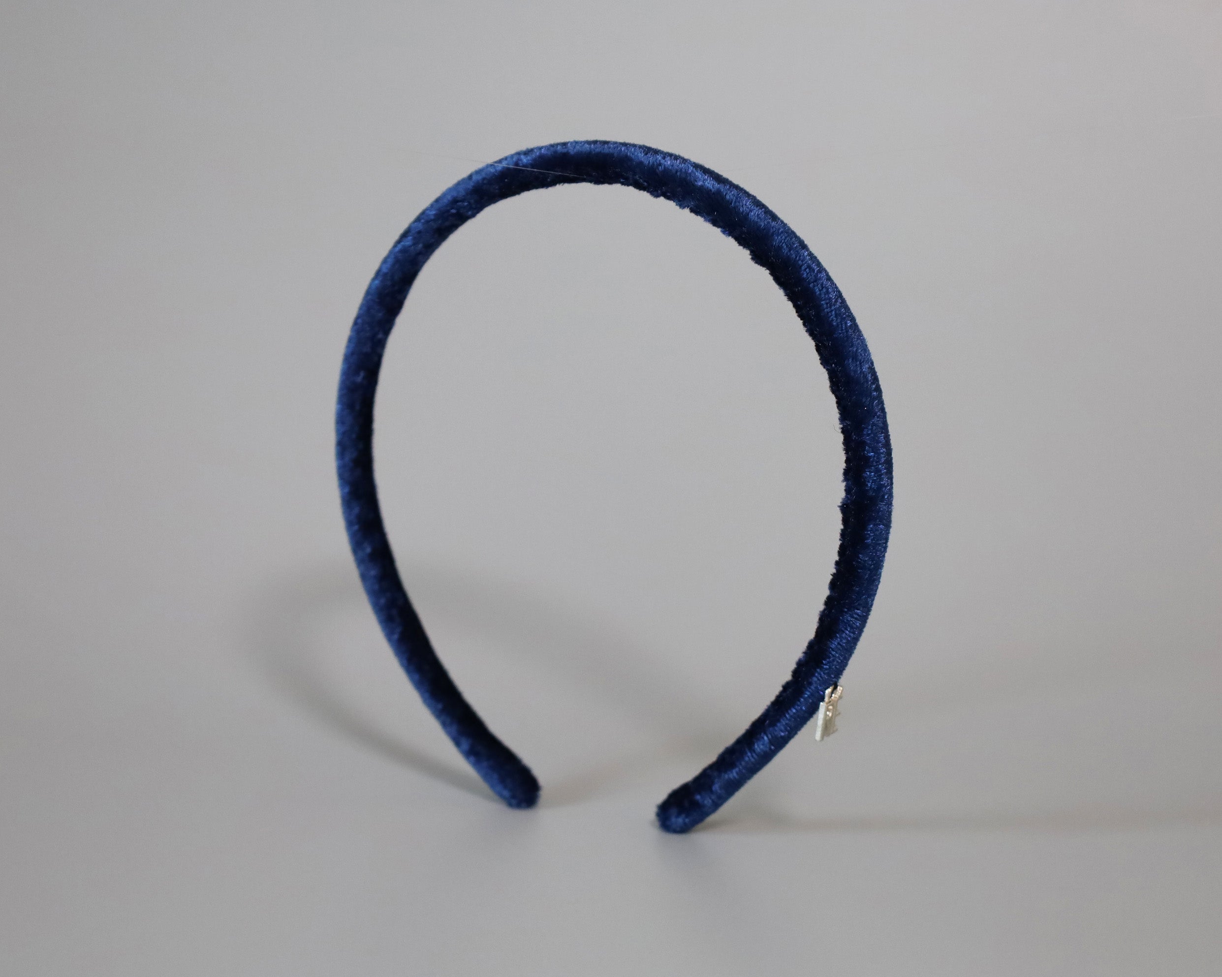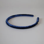 光沢感がリッチなネイビーのベロアカチューシャ。