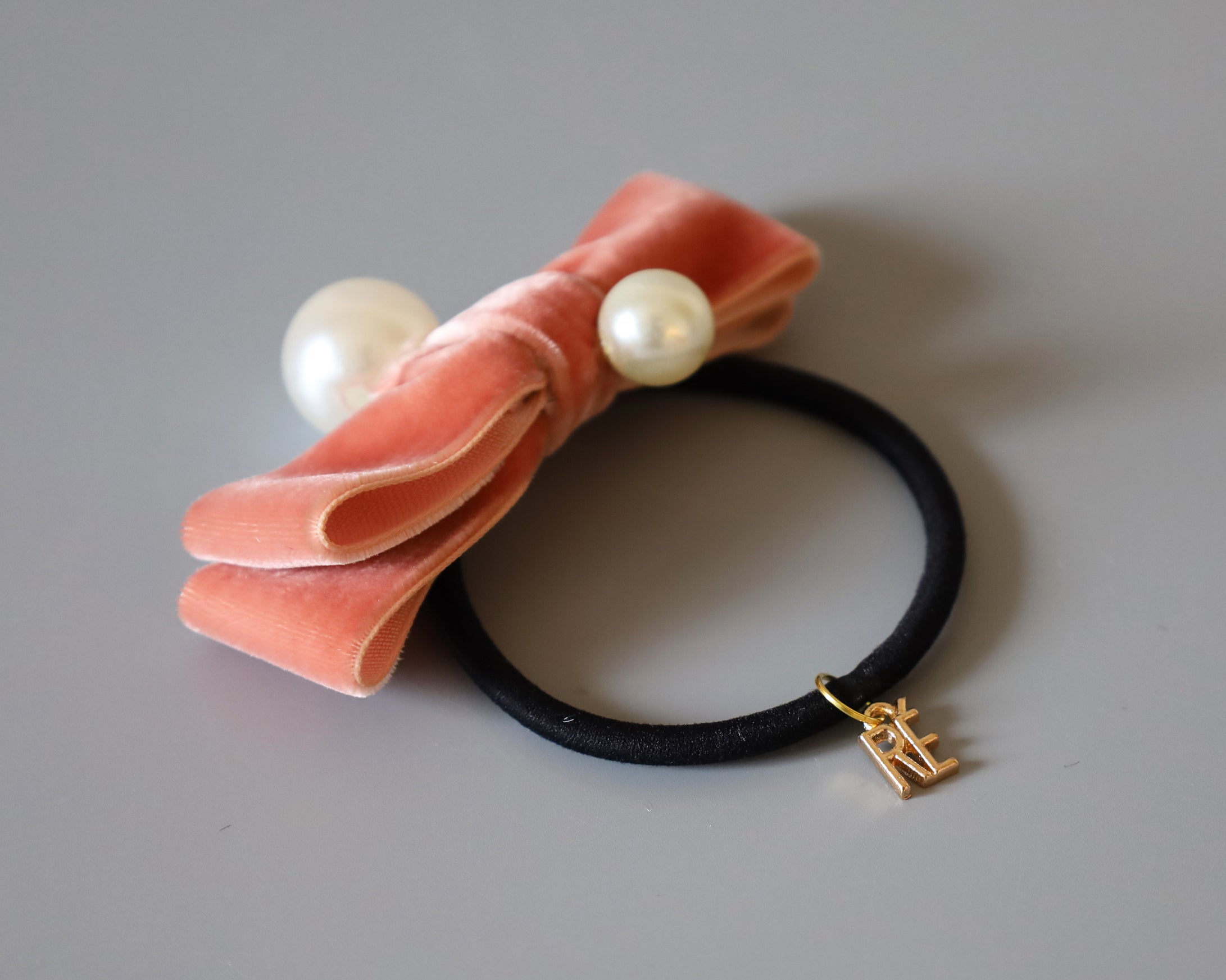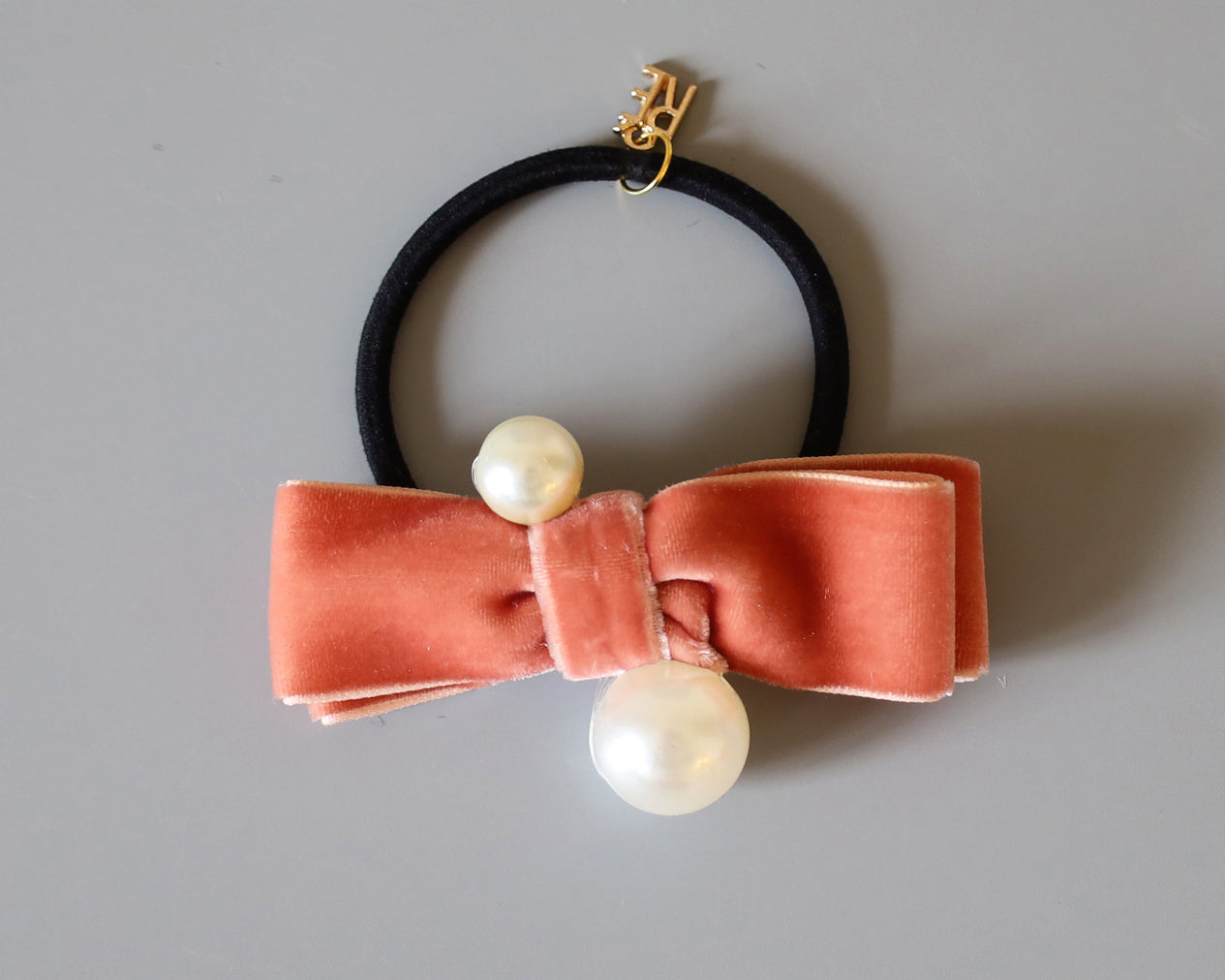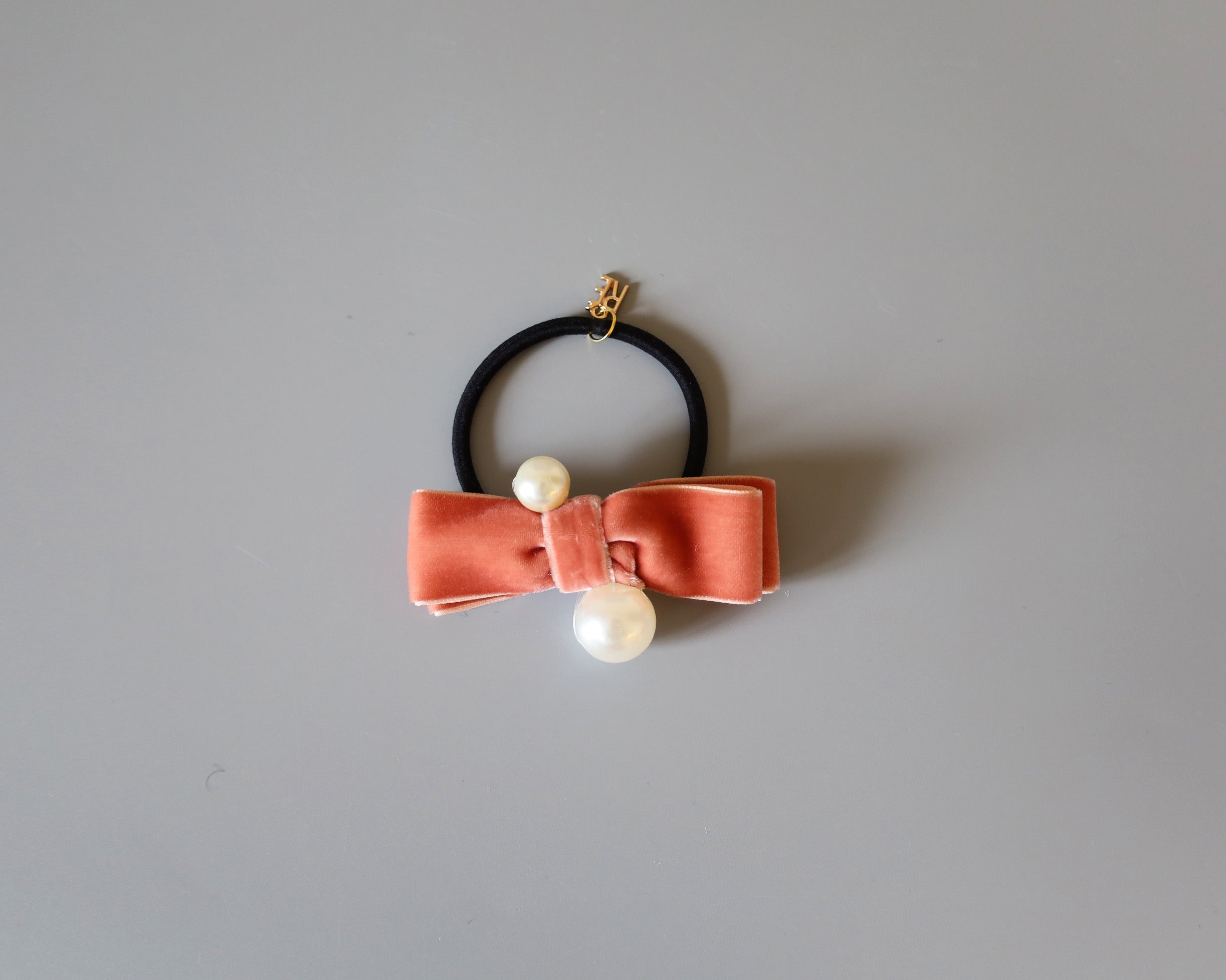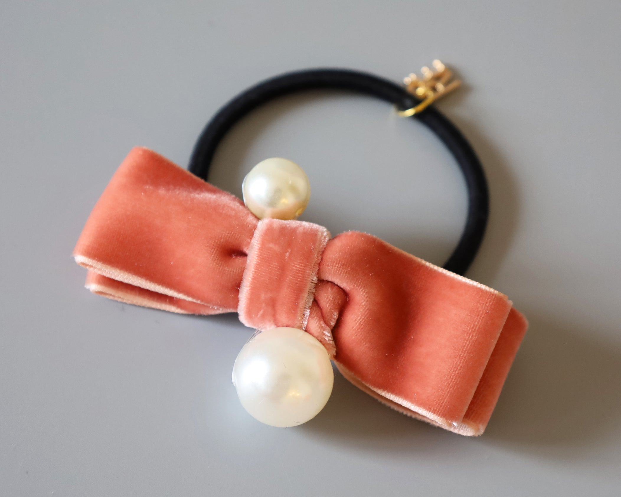 Velvet Ribbon Pink Pearl Hair Pony