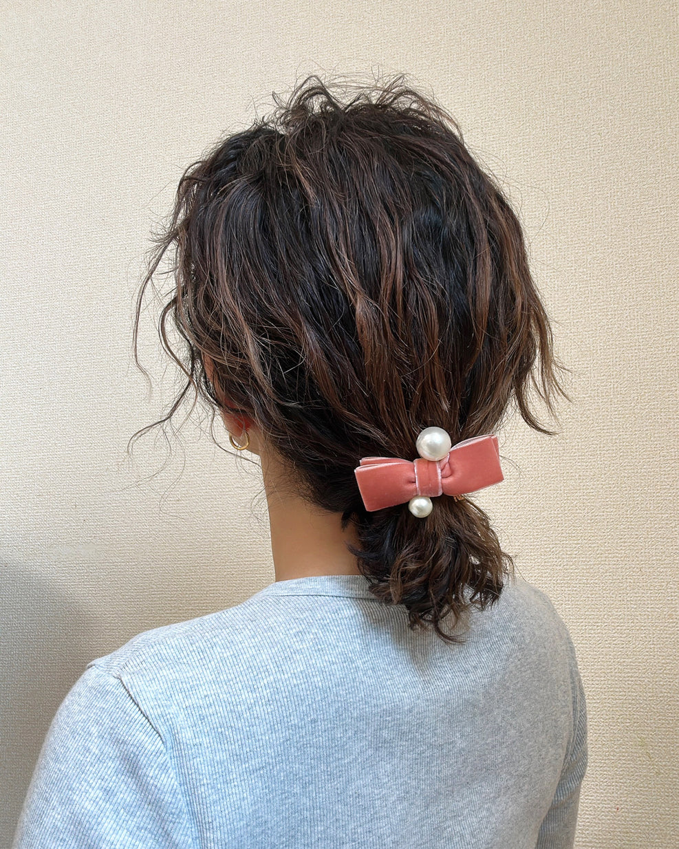 大粒のパールを2粒飾り、エレガントな大人かわいいスタイルに。
