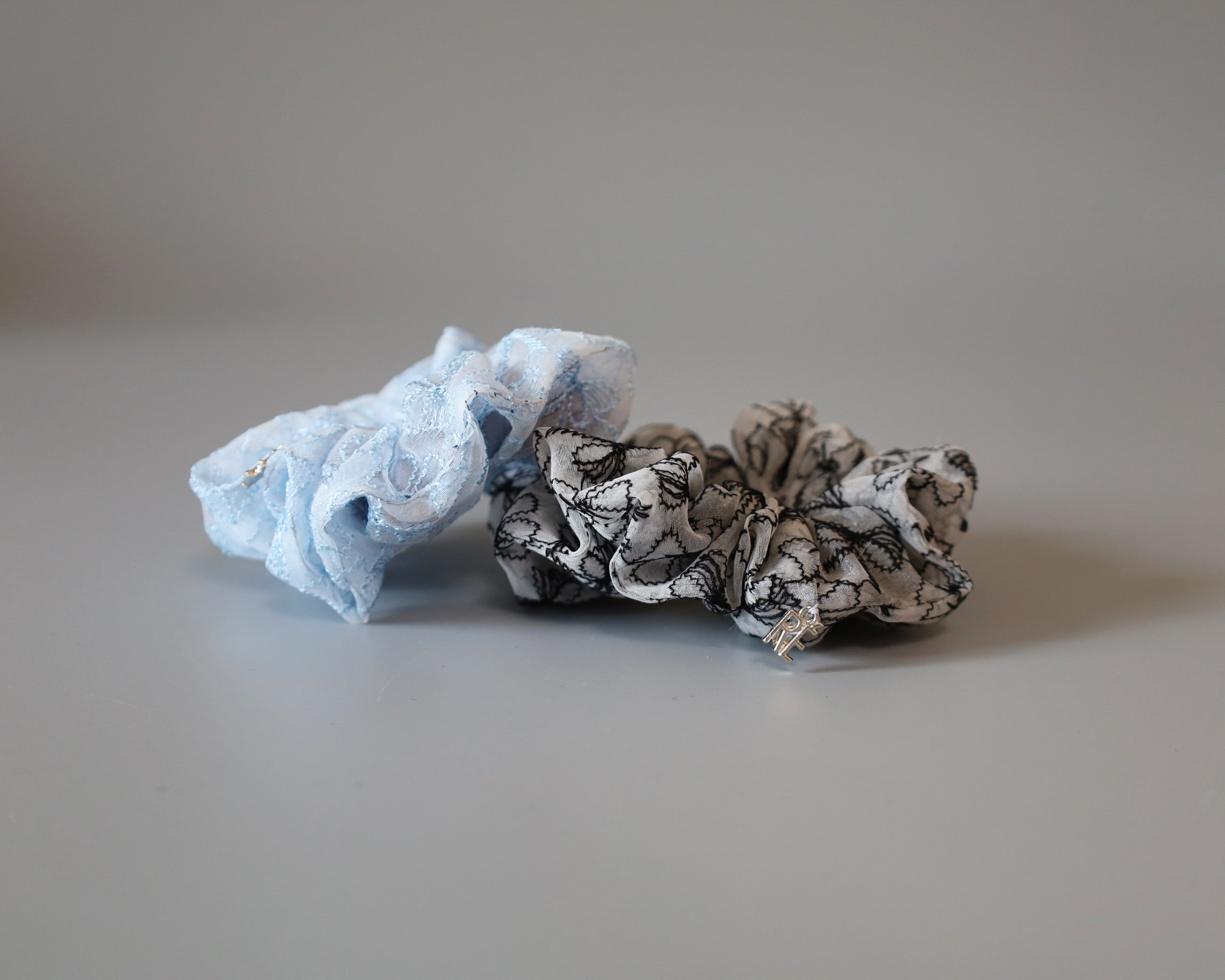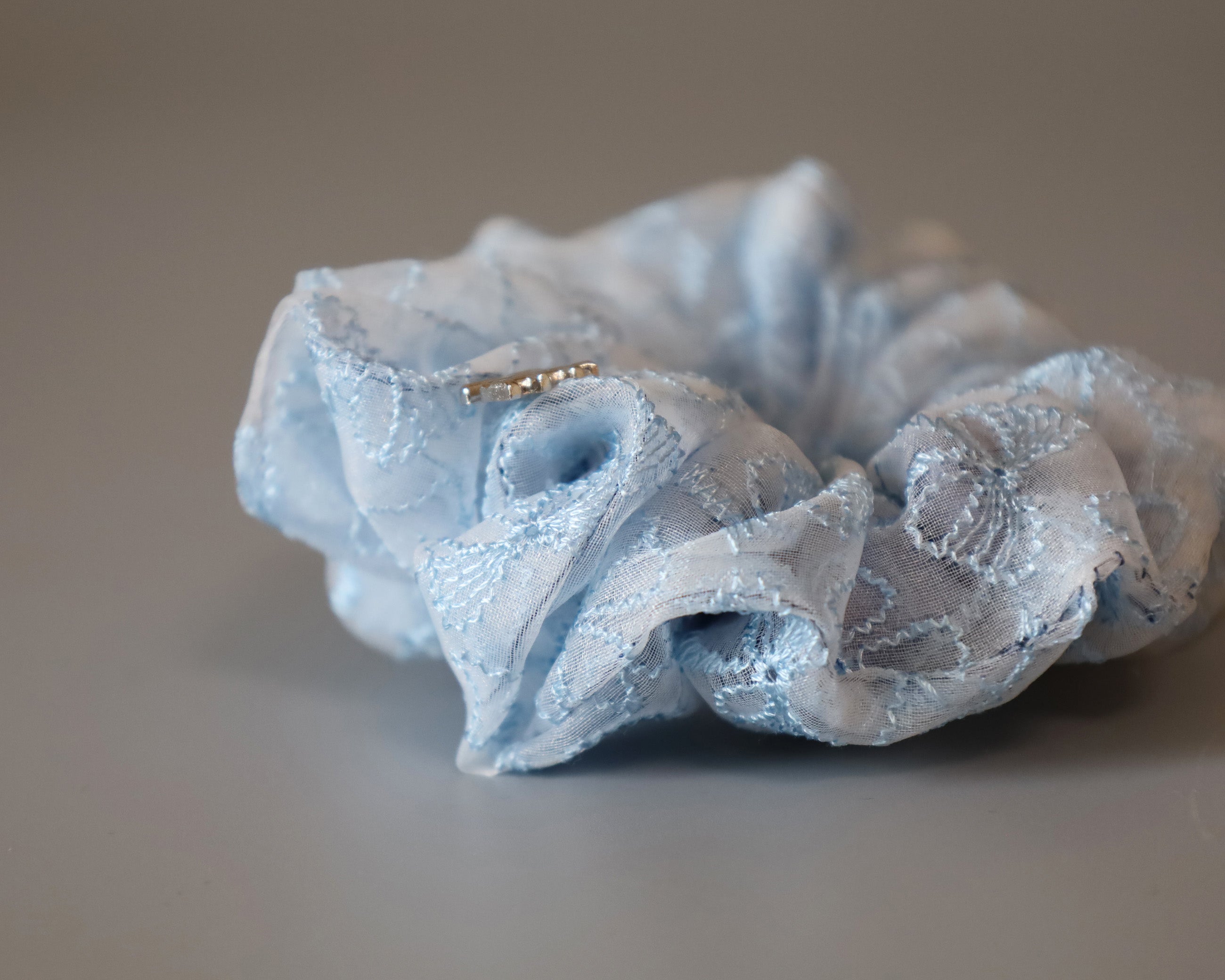White Blue Ribbon Mini Scrunchie