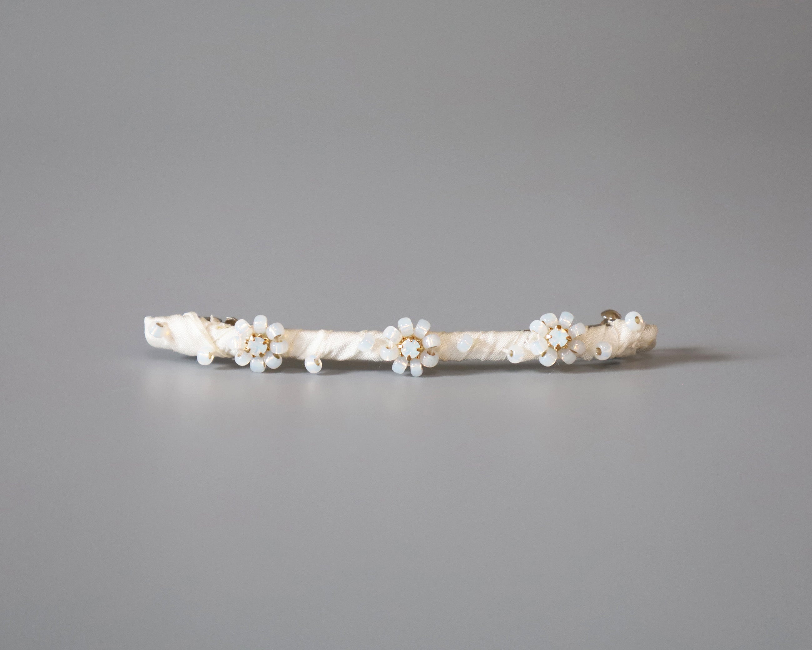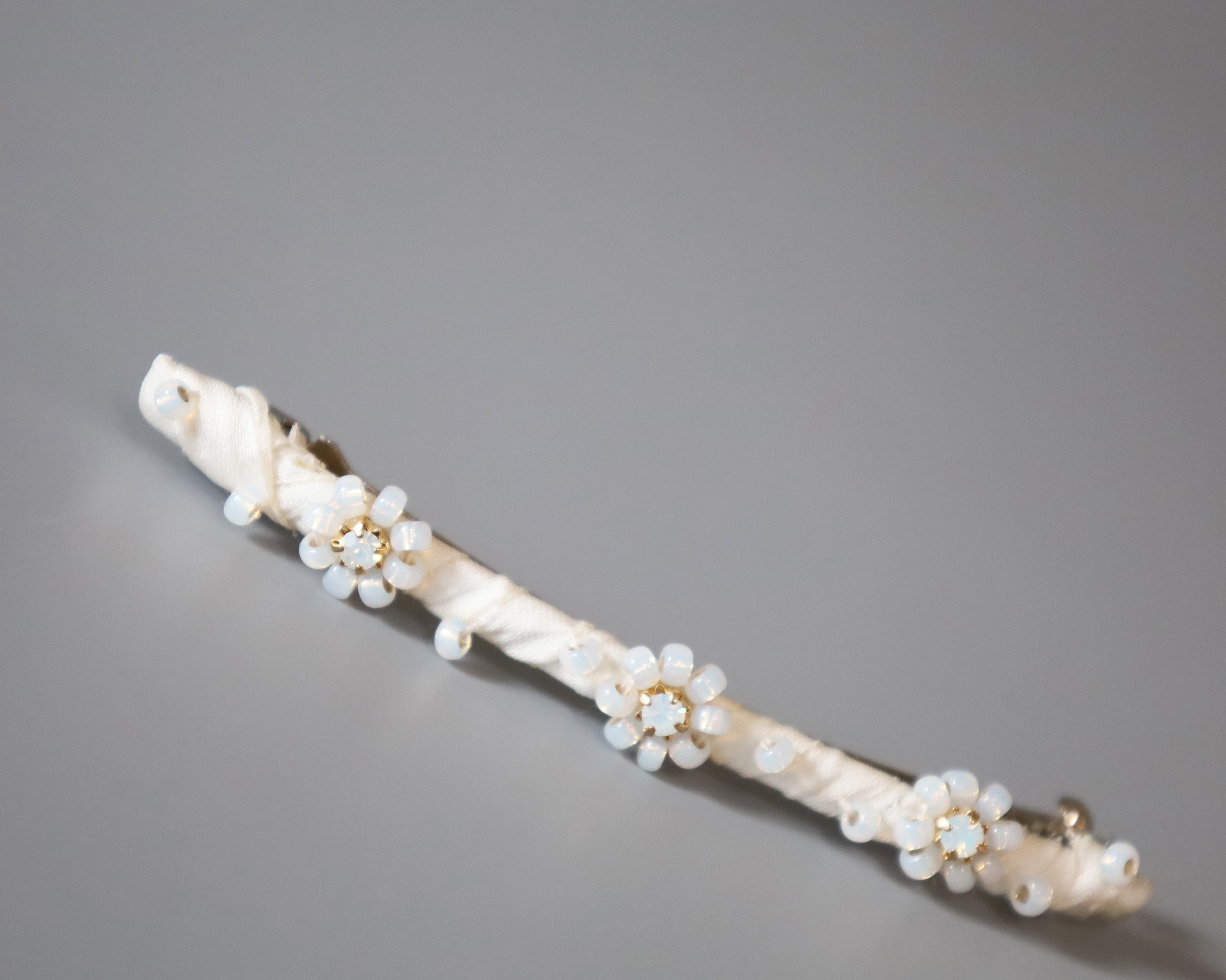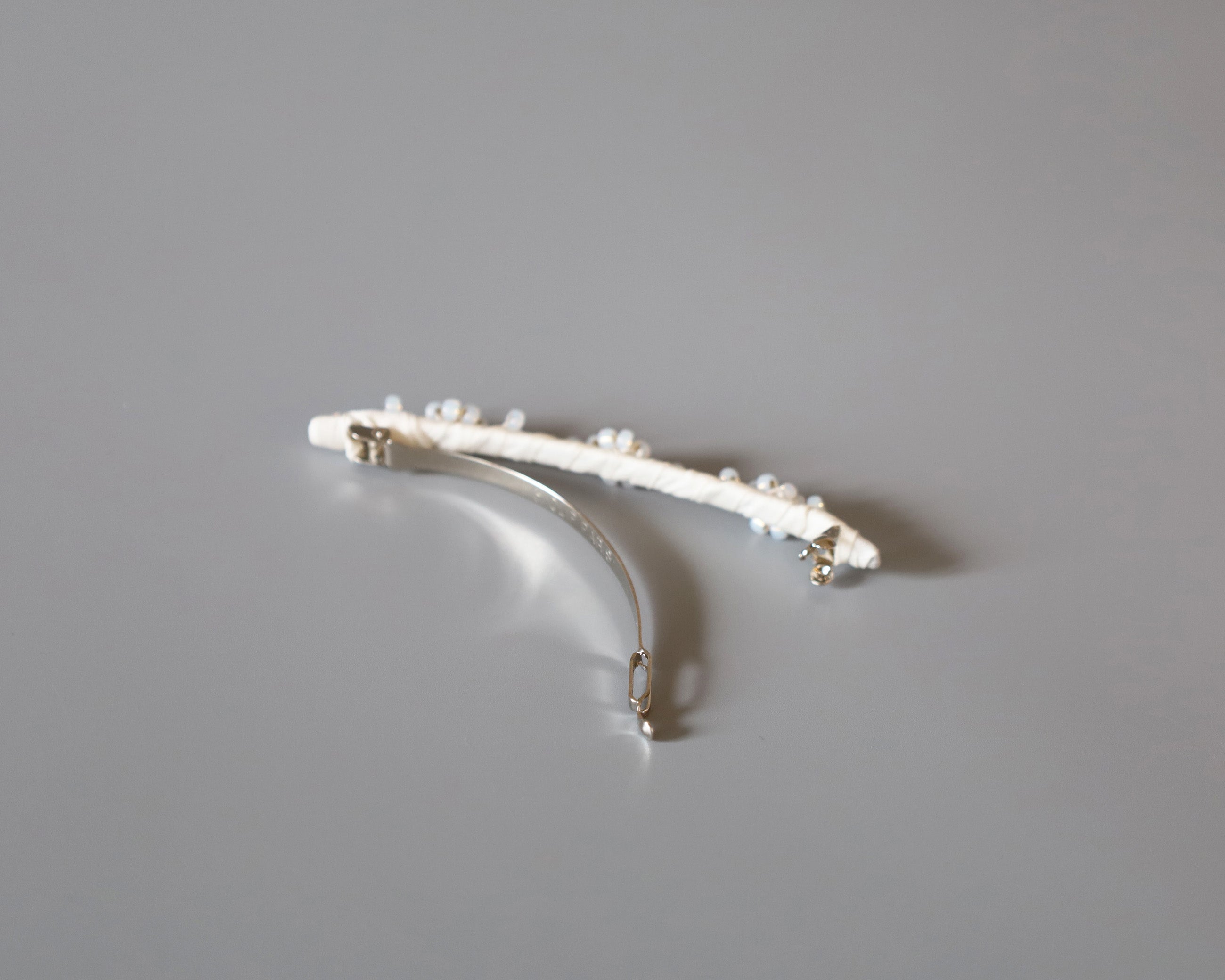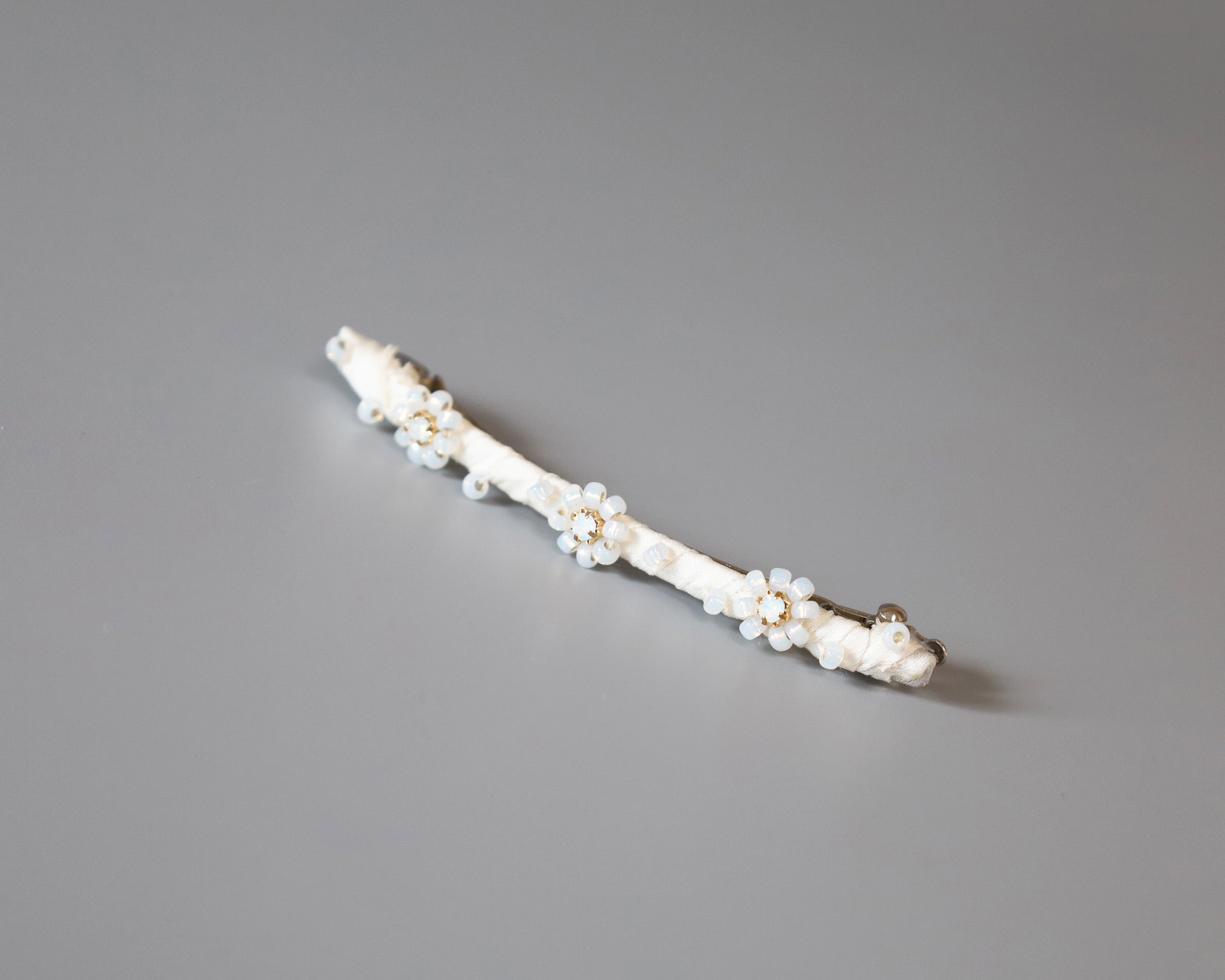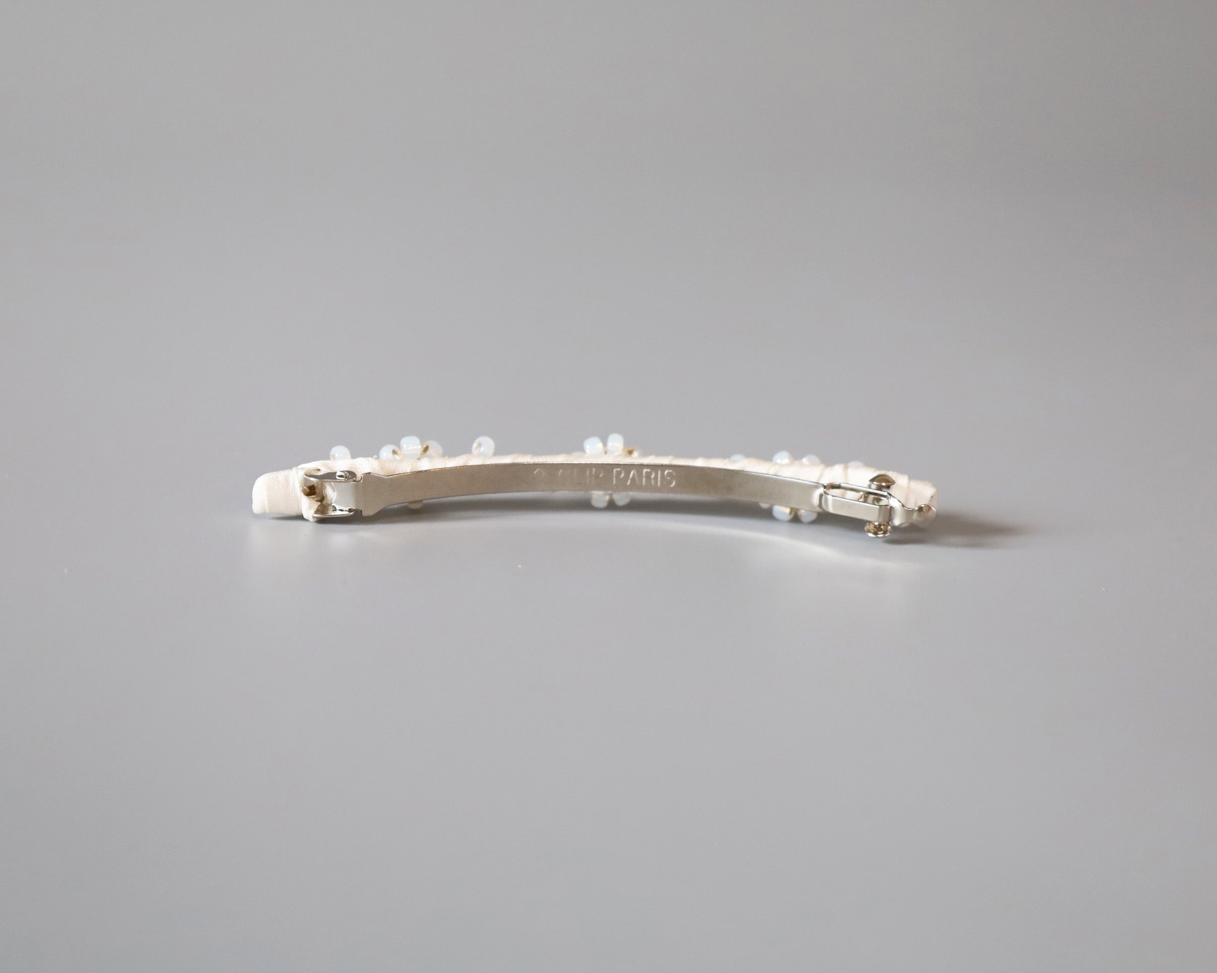 ホワイト系をベースにビーズで作った小花が咲くバレッタ。
