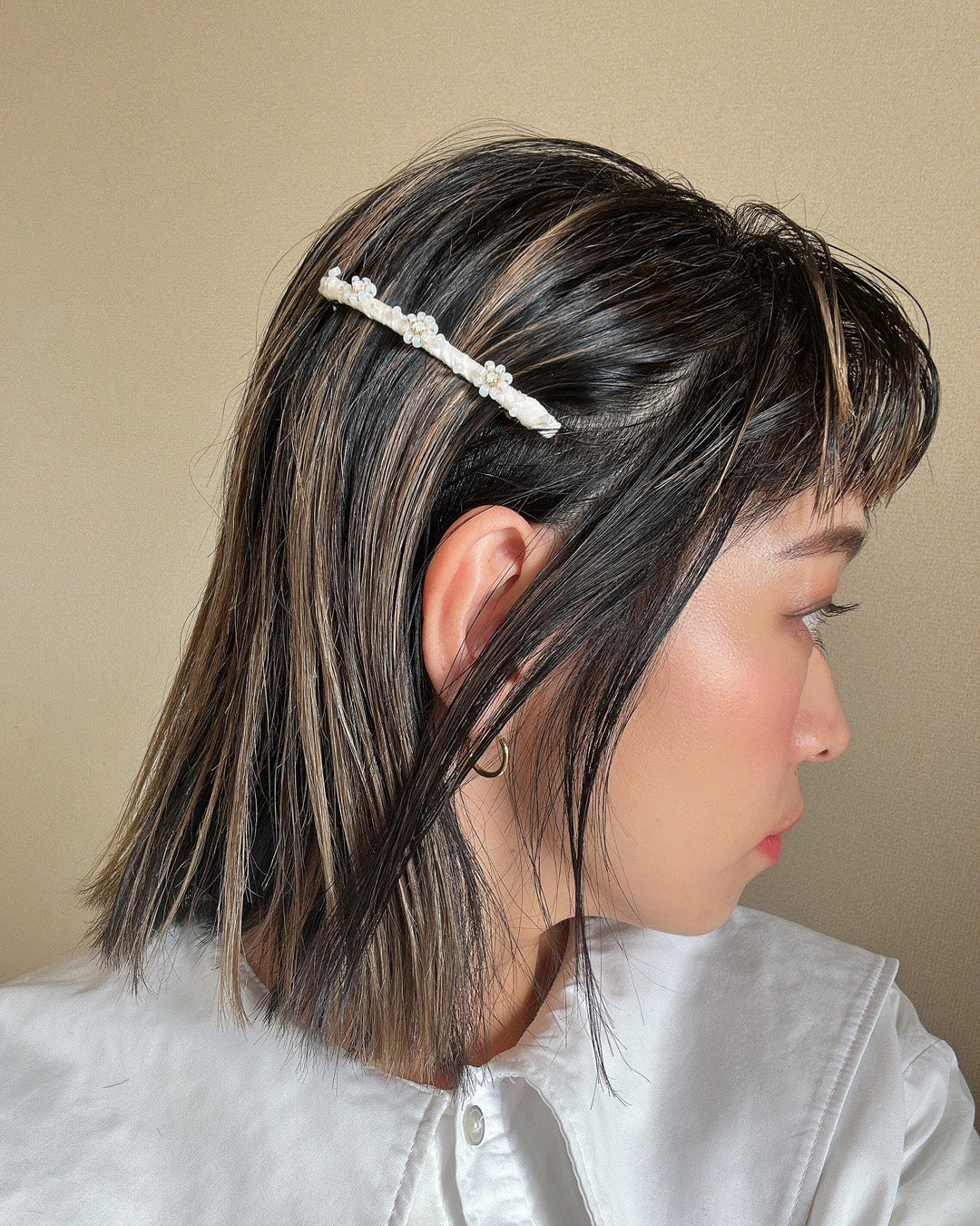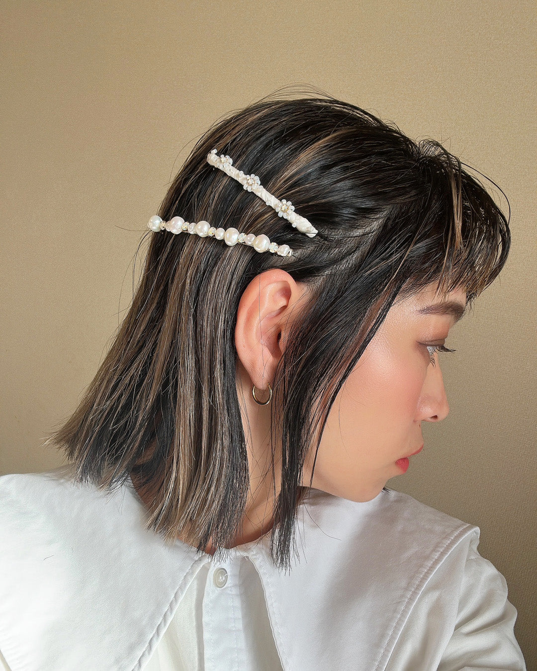 ローポニーやハーフアップ、シニヨンのアクセントに。