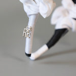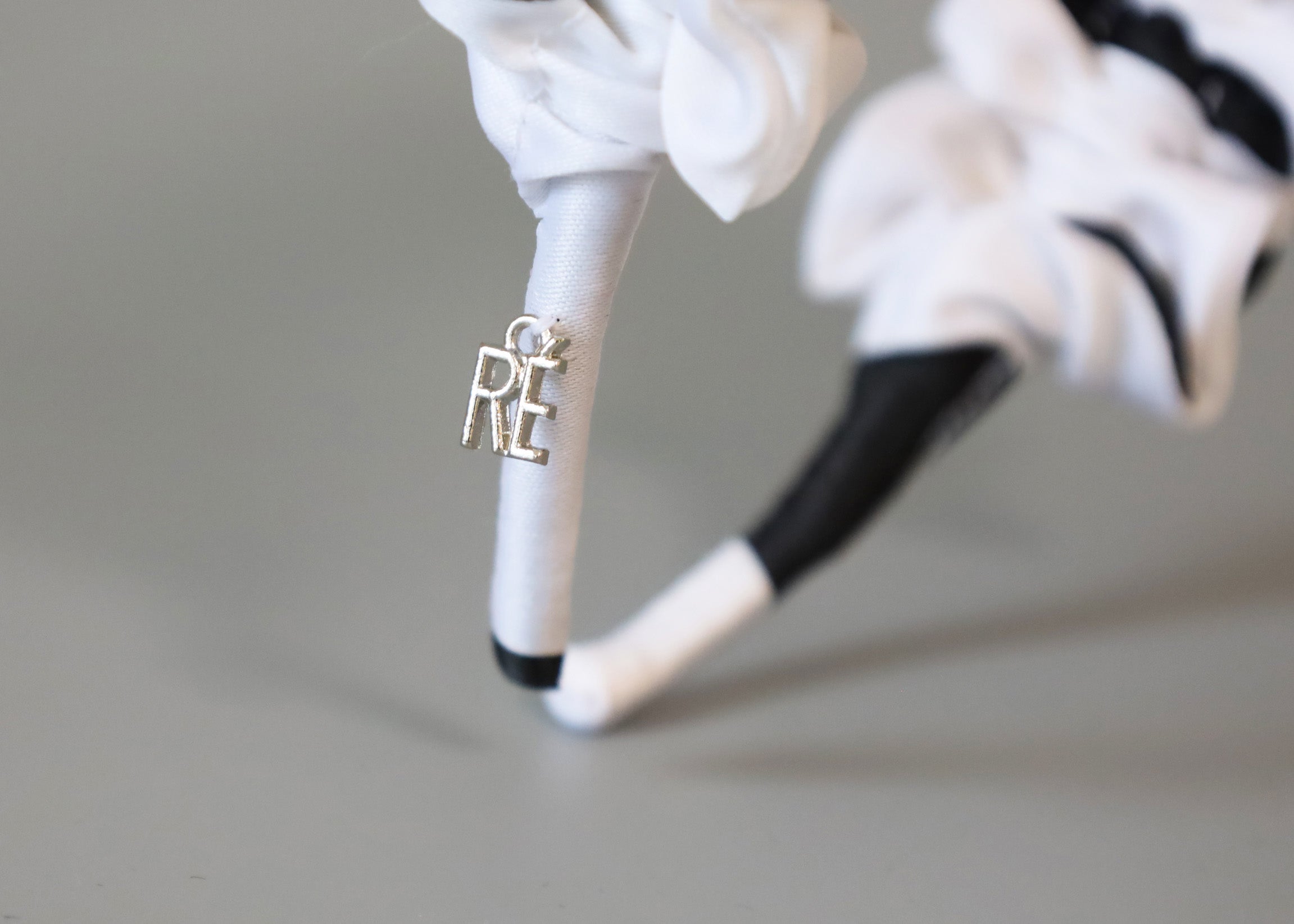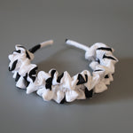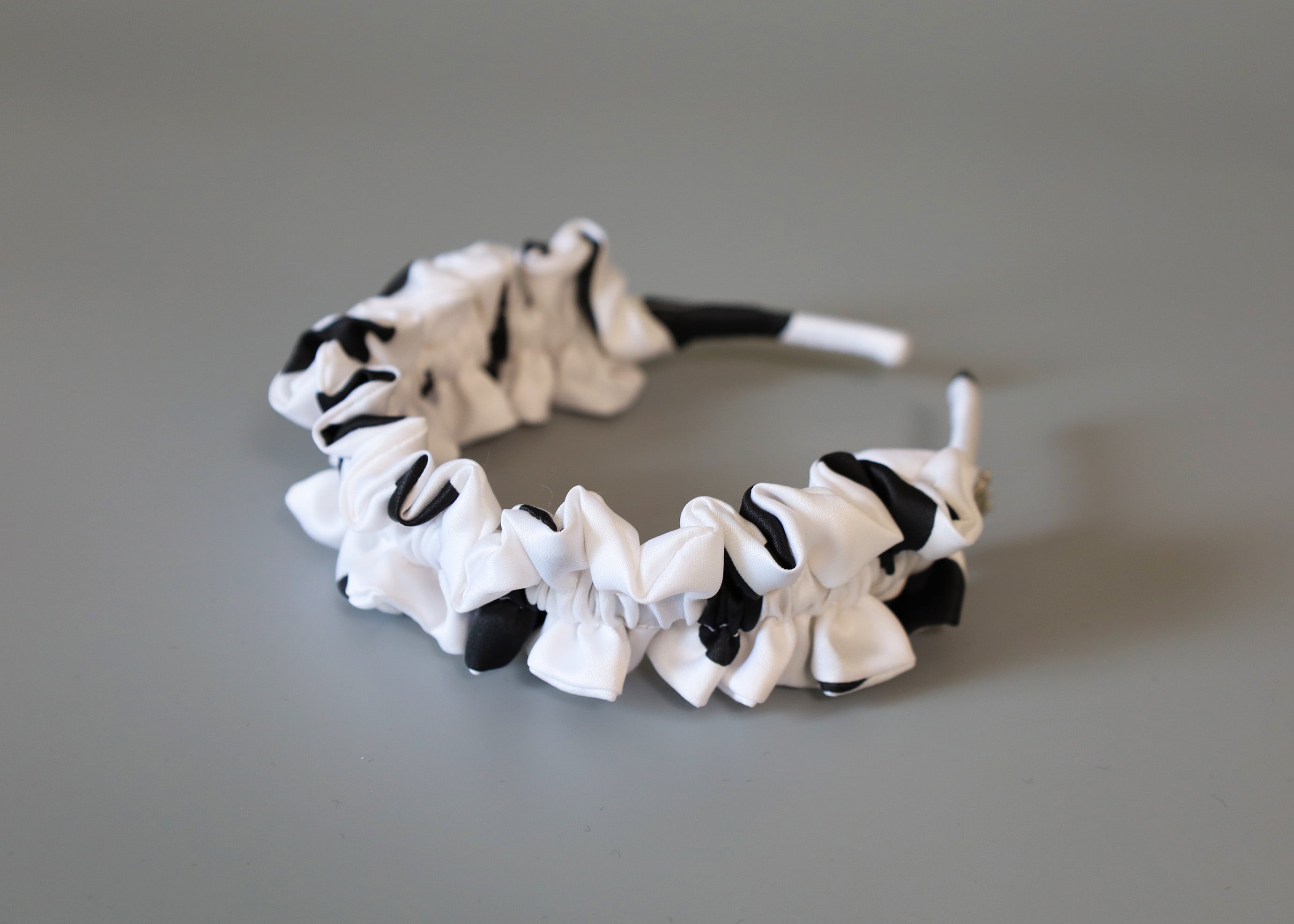 フリルのような華やかさの幅広ギャザーのカチューシャ。